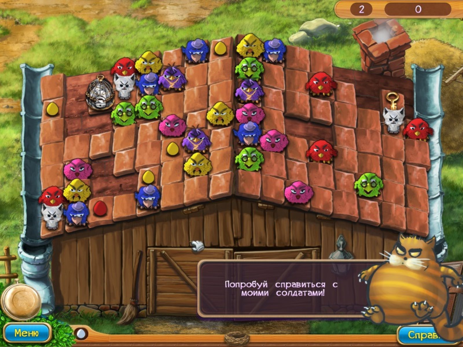 Стая разноцветных веселых птичек была подвержена нападению подлых котов. Они выкрали маленьких птенцов и заперли их в клетки под замок. Вам придется помочь птичкам освободить малышей. Собирайте группы из пернатых одного цвета, чтобы освободить проход к клеткам с птенцами, избавляйтесь от коварных котов и наслаждайтесь увлекательной игрой!