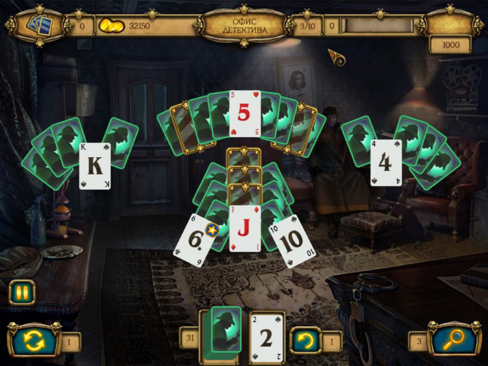 Кто сможет освободить город от нависшей над ним угрозы? Кто разгадает зашифрованные подсказки злодея? Шерлок Холмс? Вовсе нет! Пришло время лучших детективов в городе! Играйте в карточный пасьянс и расследуйте преступления. Соберите цепочку карт на 12 локациях, используйте бонусы и получайте награды. Всех азартных игроков ждут специальные задания и трофеи. Мистические приключения уже начинаются!