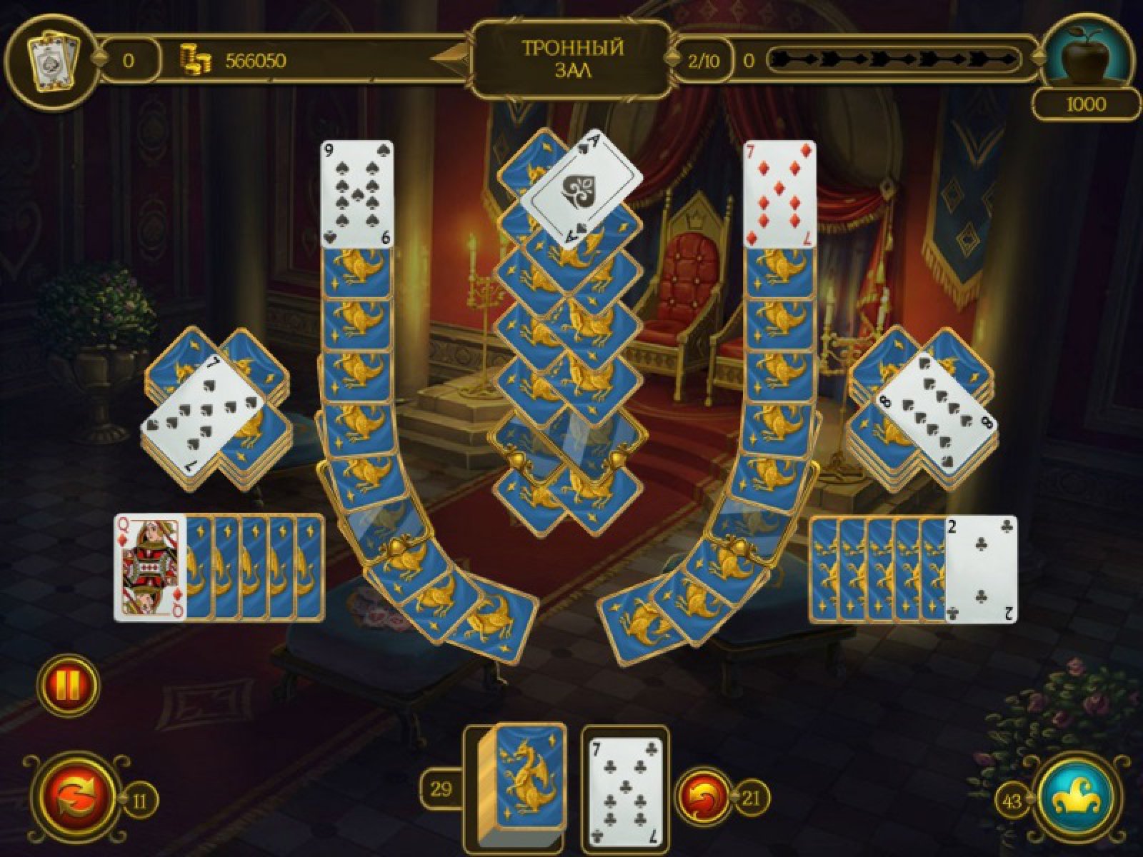 Кто отважиться спасти принцессу из заточения в темной башне? Принц на белом коне? Вовсе нет! Чтобы открыть двери заколдованного замка, достаточно пройти все уровни нового пасьянса! Вам уже приходилось однажды выигрывать рыцарский турнир и оказывать победу в поединке с настоящим драконом. В третьей части игры Вас ждет не менее увлекательное приключение! Откройте все 12 локаций старого замка, собирайте цепочки карт, используйте магические бонусы, делайте комбо и выигрывайте дополнительные награды!