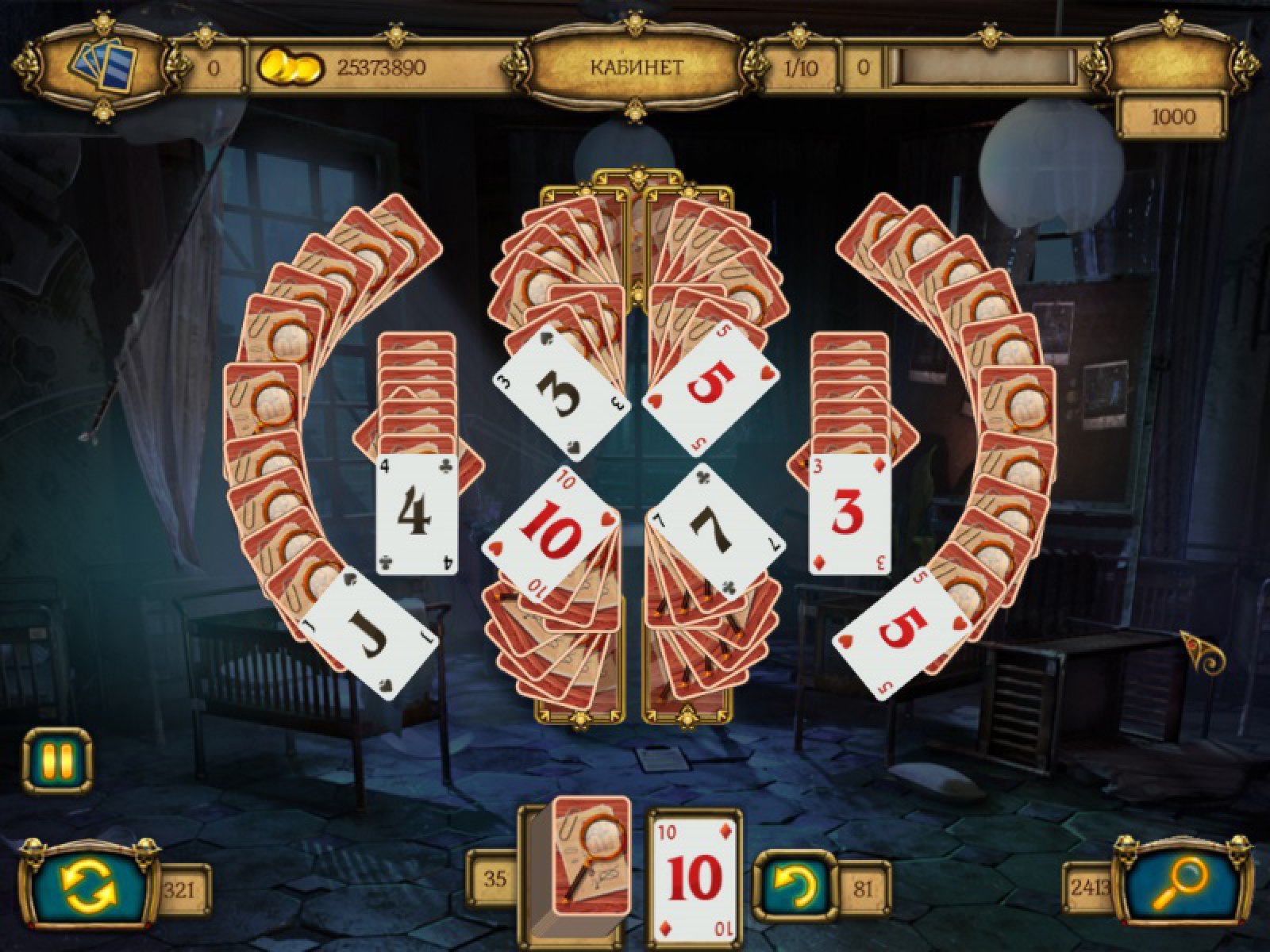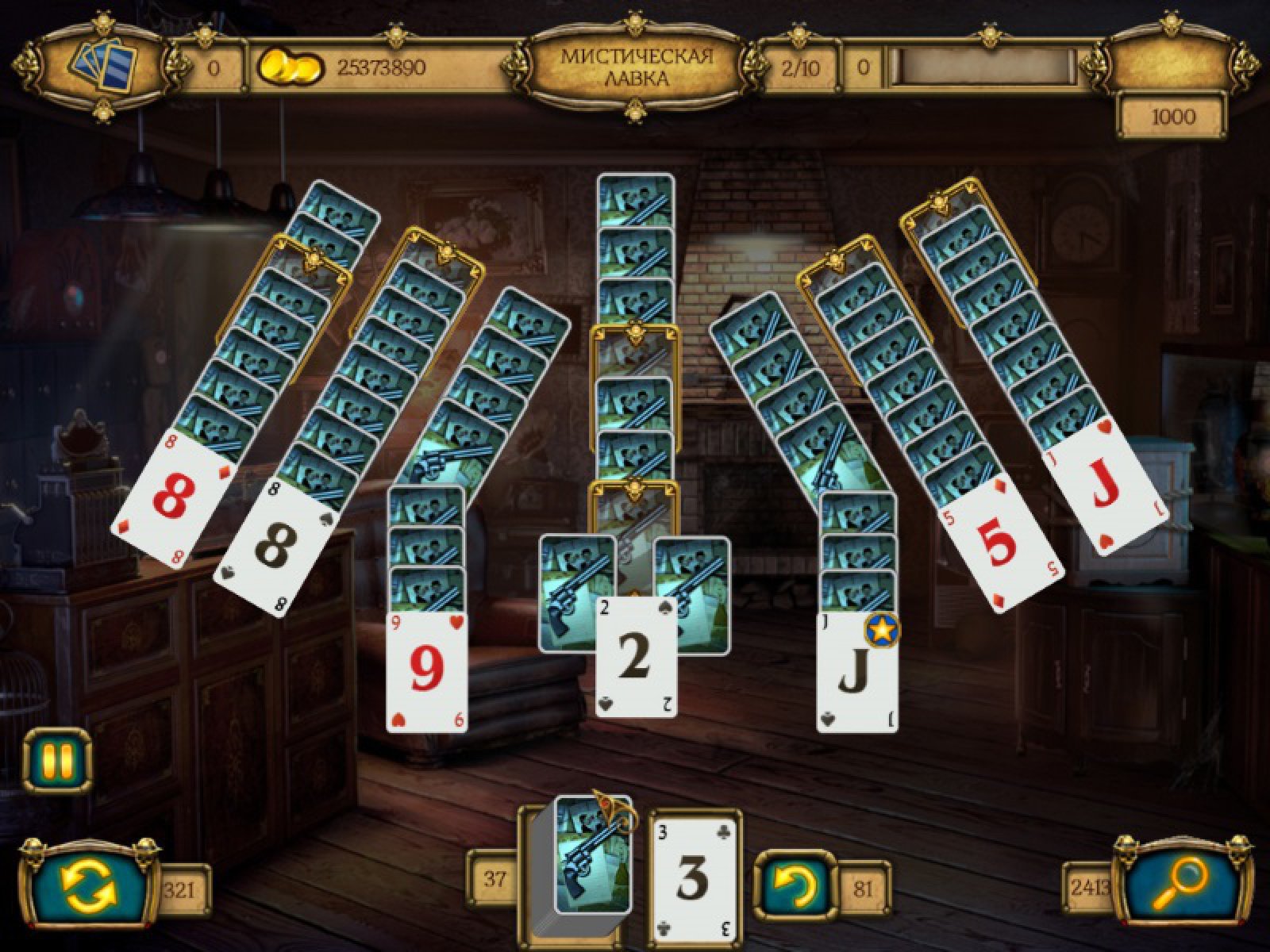 Настоящий детектив всегда готов расследовать необычное преступление! Такому невероятному делу позавидовал бы сам Шерлок Холмс! Таинственные приключения продолжаются! Криминальный мир никогда не дремлет: опасный преступник ограбил банк и украл все золото. Полагаясь на дедукцию, расследуйте это дело и докажите, что Вы настоящий профессионал. На этот раз Вас ожидает более 120 уникальных карточных раскладок и 12 локаций таинственного туманного города. Найдите украденное золото, собирайте цепочки карт и получите огромный гонорар! Используйте специальные бонусы: джокер, перемешивание, муллиган и получите еще больше монет.