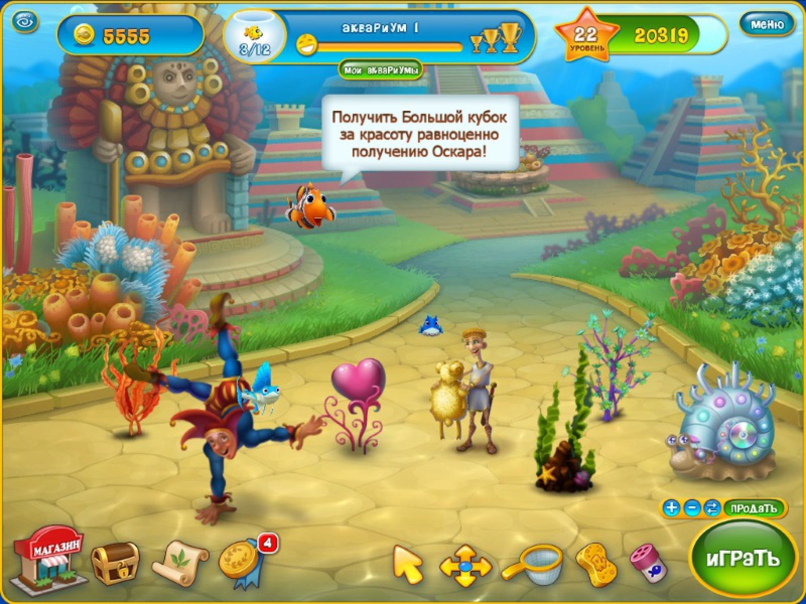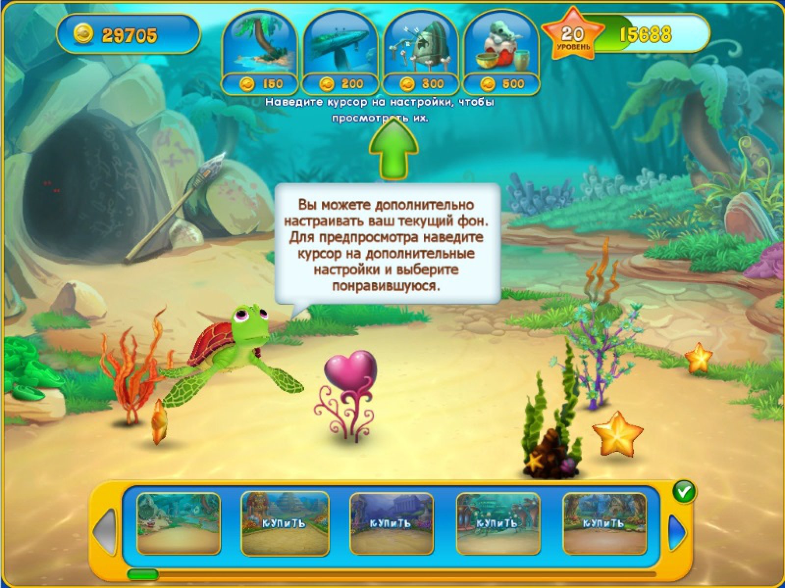 В новой игре из легендарной серии Fishdom Вас ждет удивительное подводное путешествие . Погрузитесь на самое дно в морские глубины в веселой компании забавных рыбок. Наблюдайте за их играми, путешествуйте по разным эпохам и заботьтесь о Ваших питомцах. Создавайте уникальные аквариумы на Ваш вкус: в Вашем распоряжении более 150 предметов декора, а также 8 красочных фонов. Пройдите все 250 матч-3 уровней и подружитесь с морскими обитателями!
