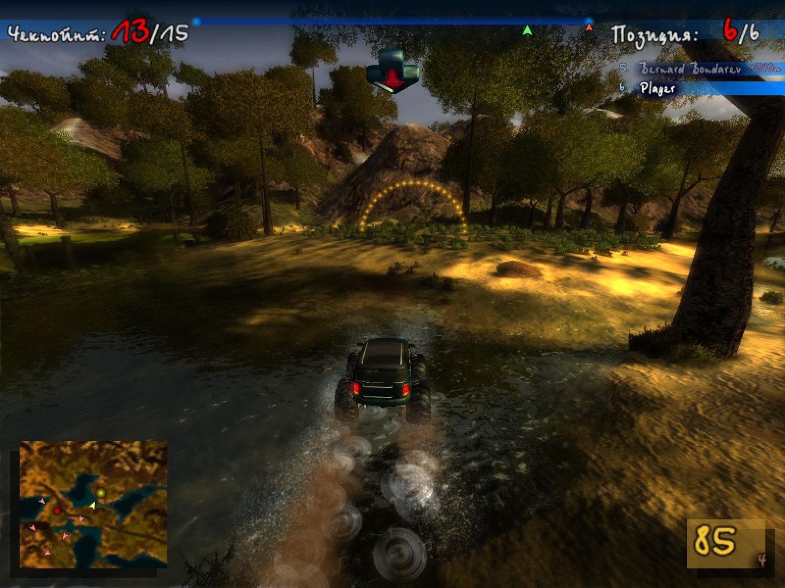 Попробуйте себя в роли водителя мощного "Бигфута"! Вас ждут опасные гонки по пересеченной местности . Здесь нет ни дорог, ни дорожных знаков! Куда ехать - решать вам! От Вашего выбора зависит половина успеха! Ваше приключение Не обойдется без столкновений, переворотов, головокружительных прыжков, но победа того стоит! Особенности игры: Два типа соревнований: «Спринт» и «Захвати Флаг» Отличная 3D графика на самом современном уровне Реалистичная физика Тематическое звуковое оформление