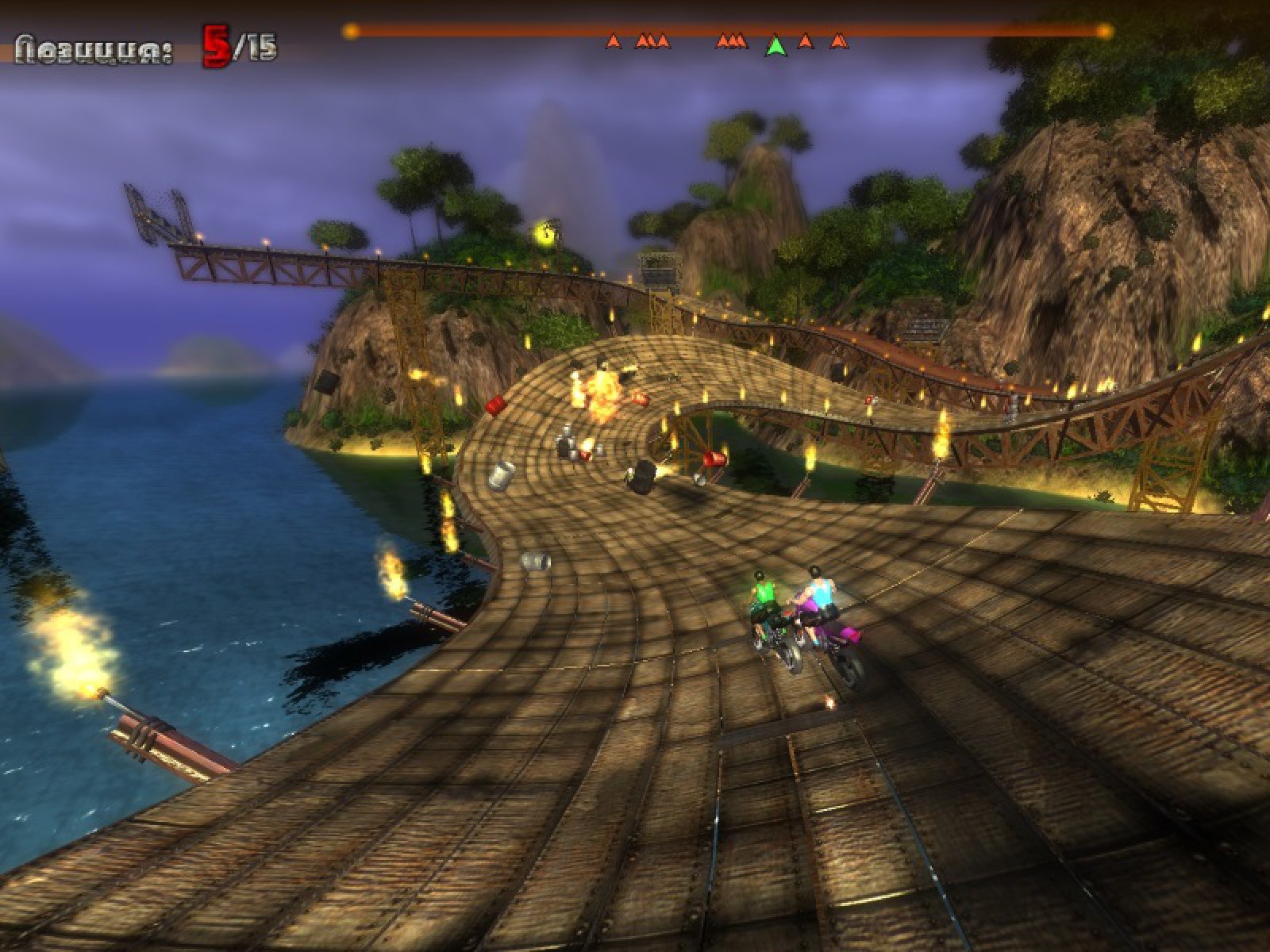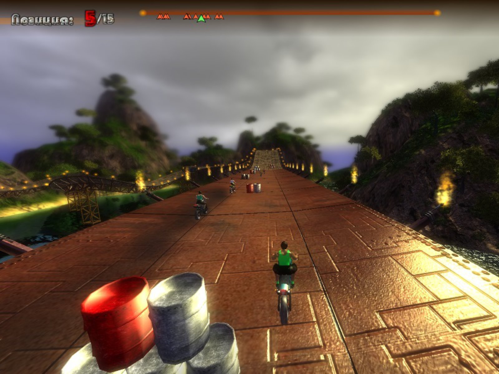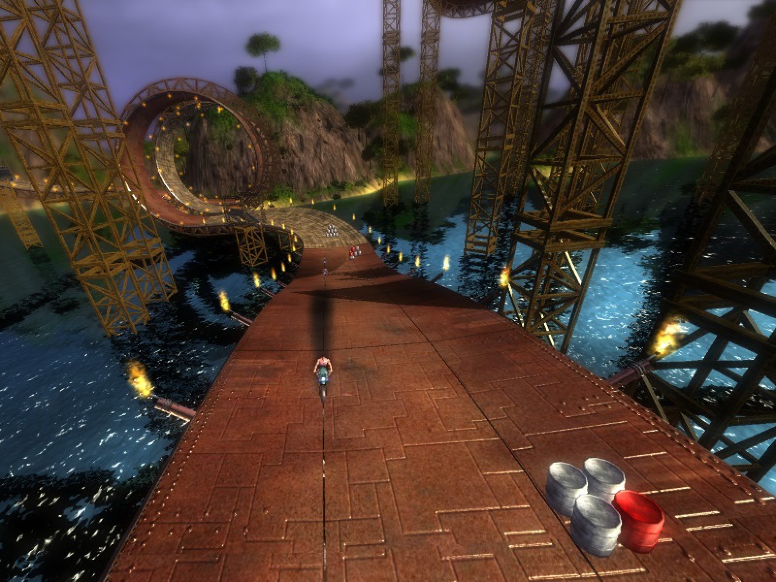 Примите участие в настоящих гонках на мотоциклах по извилистым трассам "американских горок"! Опытные соперники и невероятно сложные препятствия! Докажите всем, что Вы способны на многое. Вперед, к призовым местам! Особенности игры: Отличная 3D графика на самом современном уровне Реалистичная физика Тематическое звуковое оформление