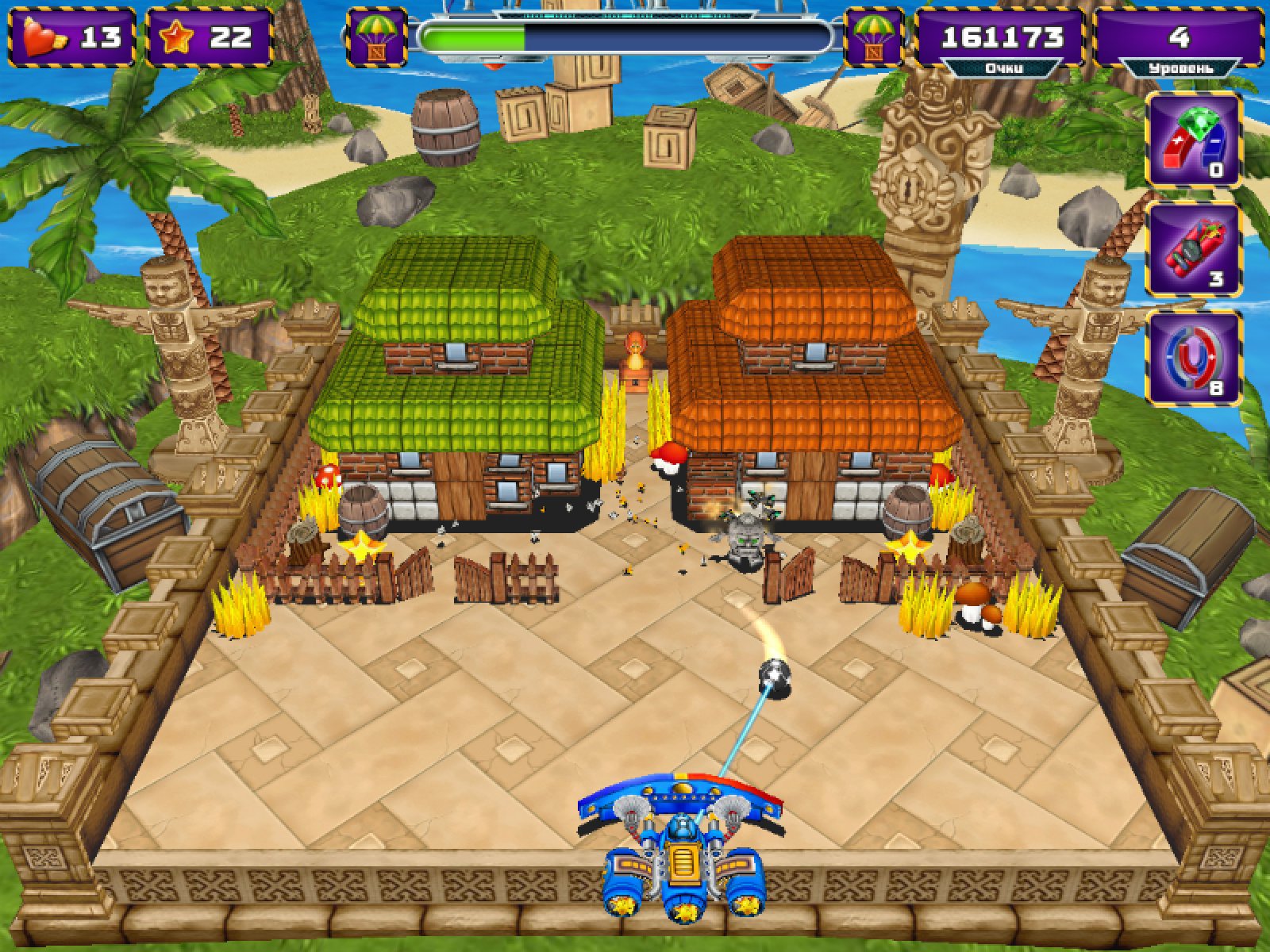 Космический парк развлечений ждёт вас в новой увлекательной арканоидной игре Крушители. Робот Робби наводит порядок и избавляет парк от устаревших аттракционов. А космическая пиратка Арабелла крушит всё на своём пути, чтобы ограбить этот парк и унести с собой солидный куш. Выбирайте, на чьей вы стороне, и пройдите все уровни, чтобы открыть новых героев. Набирая очков и собирая бонусы вы сможете получать новые виды оружия помимо мяча-разрушитель.
