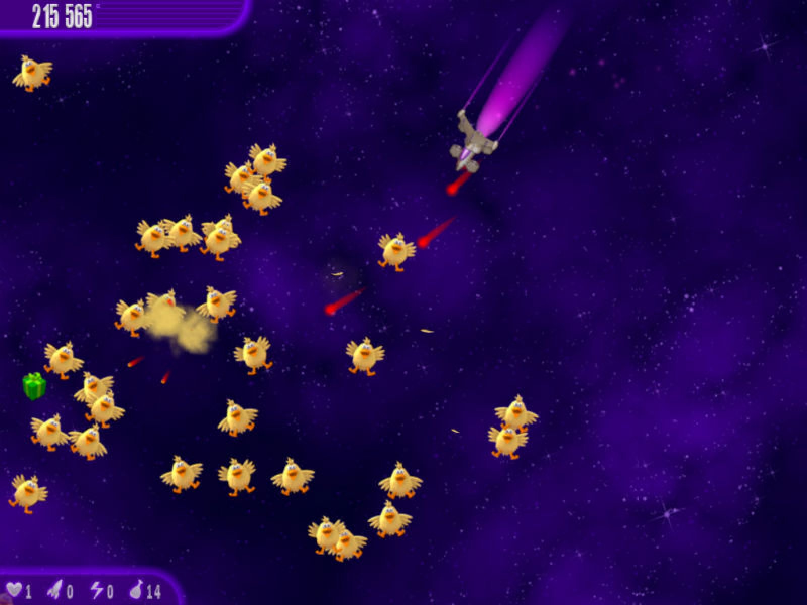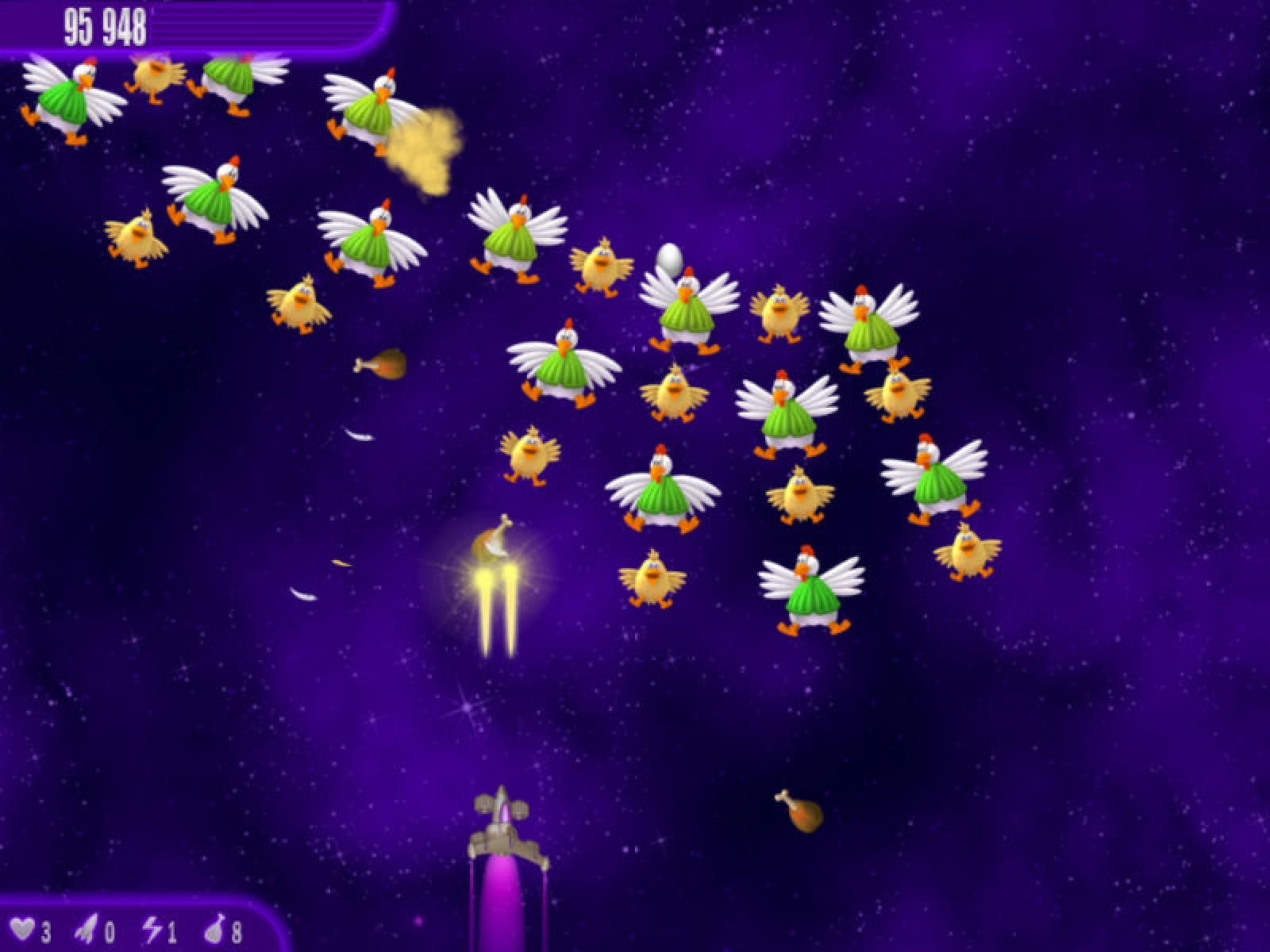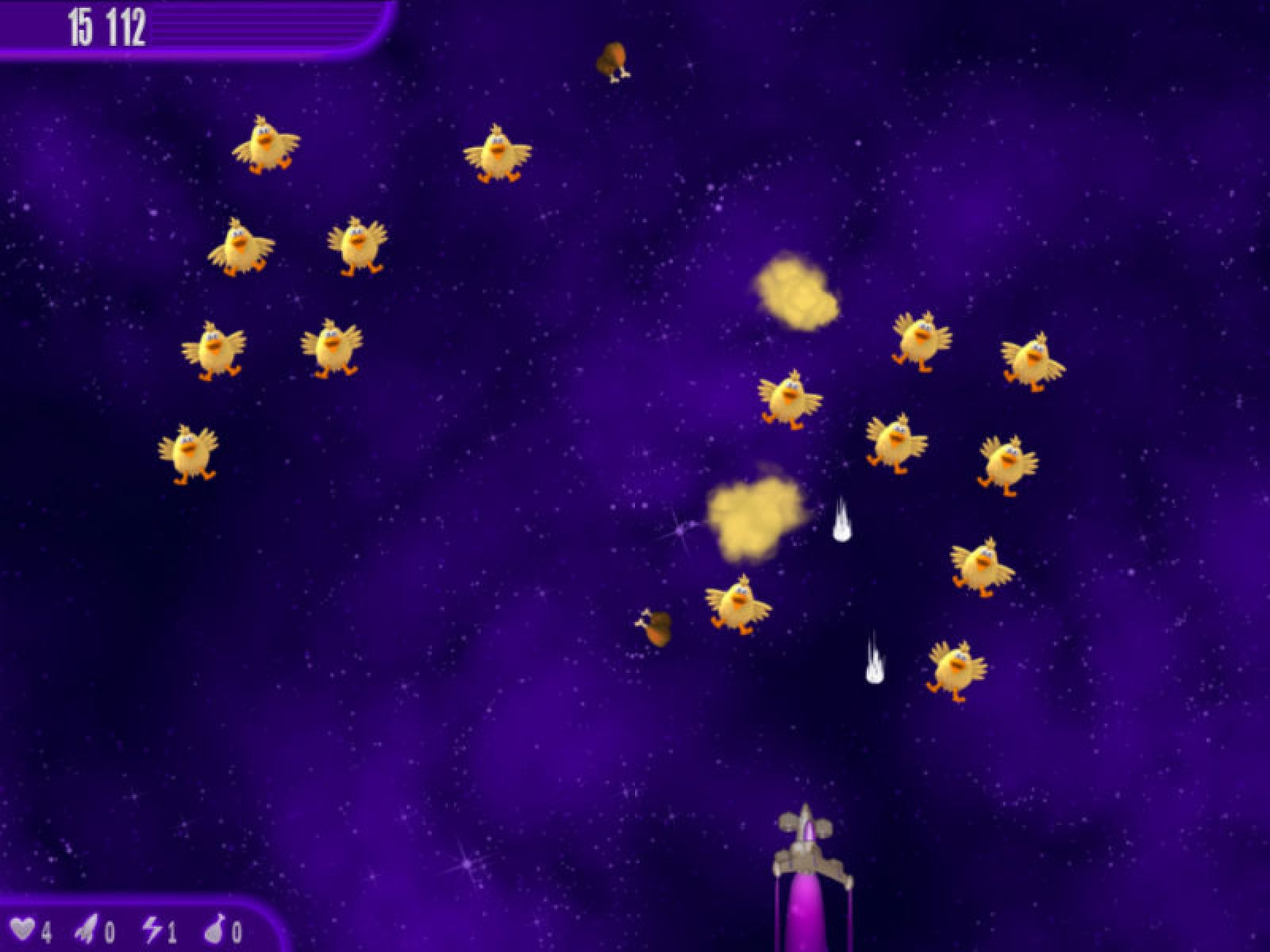 Спасите Землю от злобной Куроматки-мутанта, которая летит к нашей планете с намерением превратить ее в гигантский омлет. Пройдите 120 жестких уровней, полных яиц, омлетов и, конечно, цыплят, атакующих ваш истребитель. Докажите, что вы настоящий космический герой в новой игре «Вторжение кур. Полный омлет»!