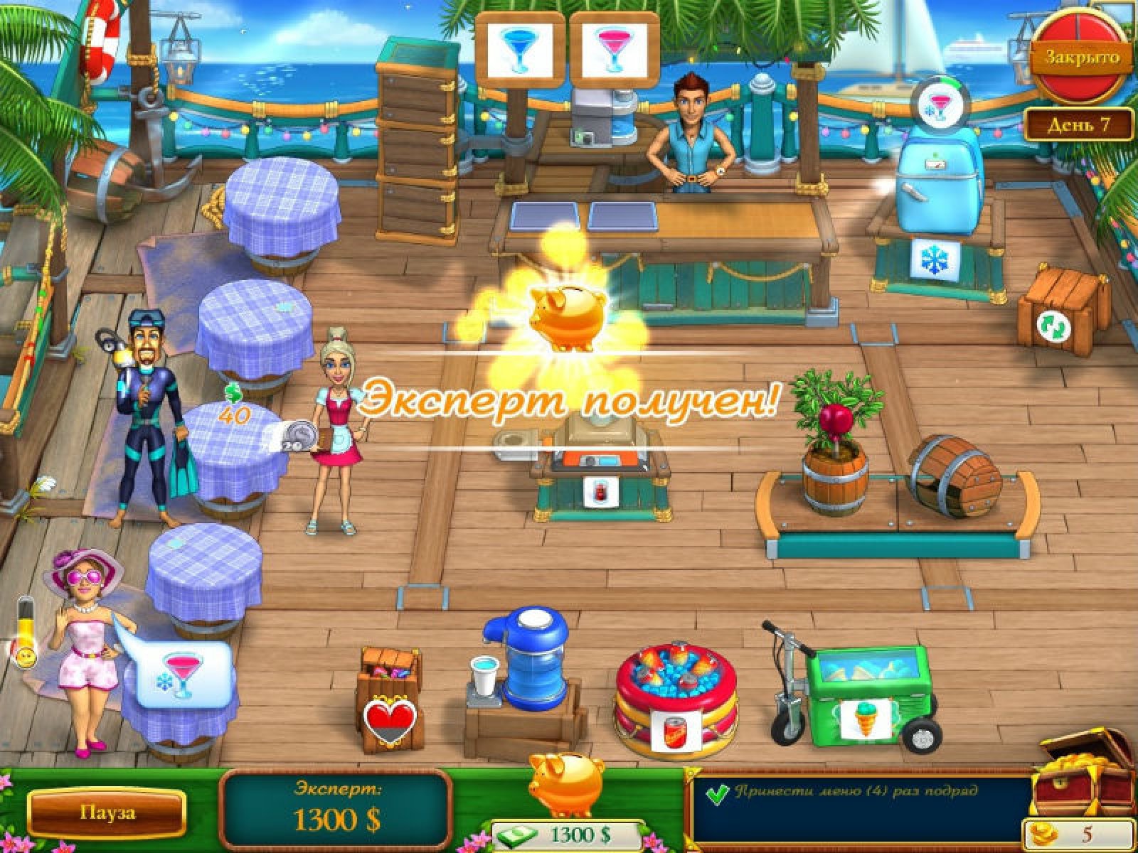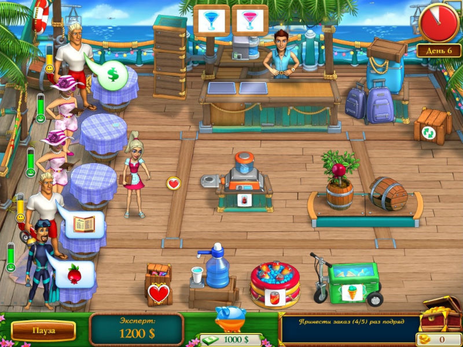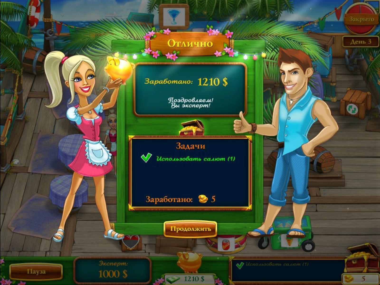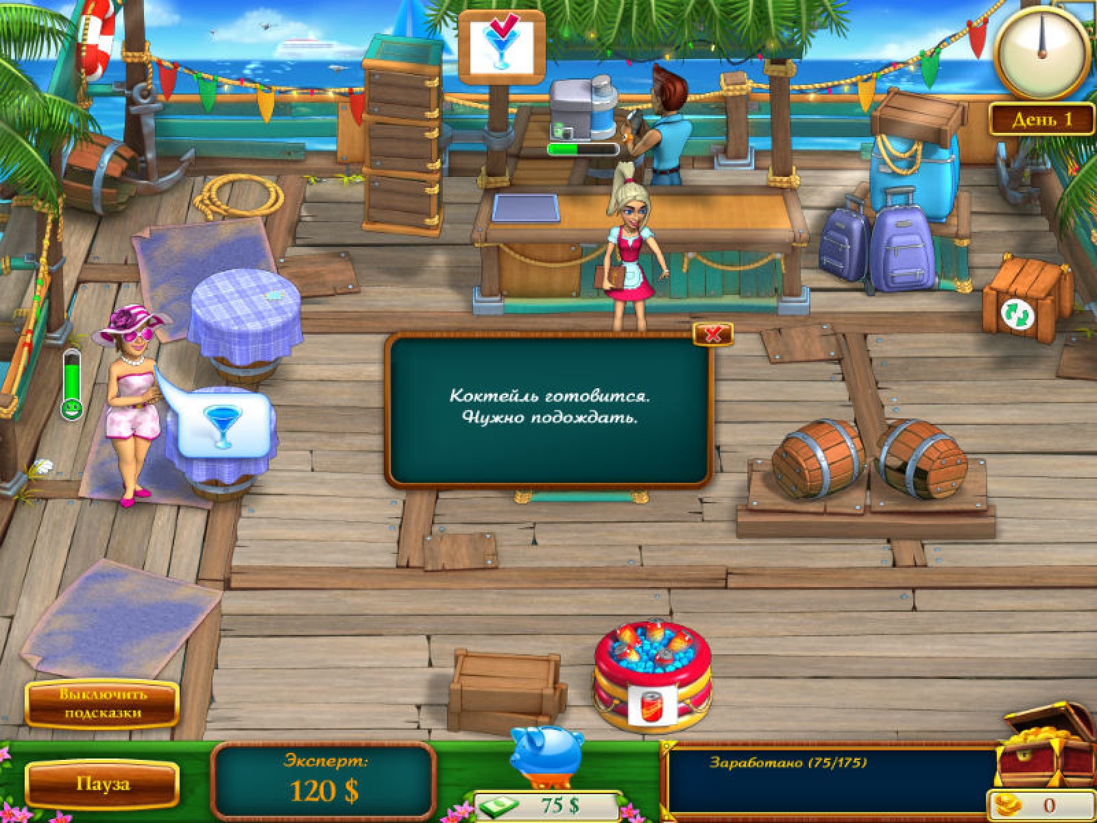 Помогите Кэти и Бобу в новой игре «Кэти и Боб. Вперед домой»! Вам предстоит управлять самым настоящим баром в тропиках. Готовьте разные коктейли, удивите посетителей прекрасным салютом, даже вырастите замечательные фрукты сами! Вступите в тропическую сказку – скачайте новую игру «Кэти и Боб. Вперед домой»! Управляйте тремя детально проработанными барами, помогайте пятнадцати уникальным посетителям! Узнайте, как Кэти и Боб оказались в этом волшебном месте и как им вернуться к себе домой.