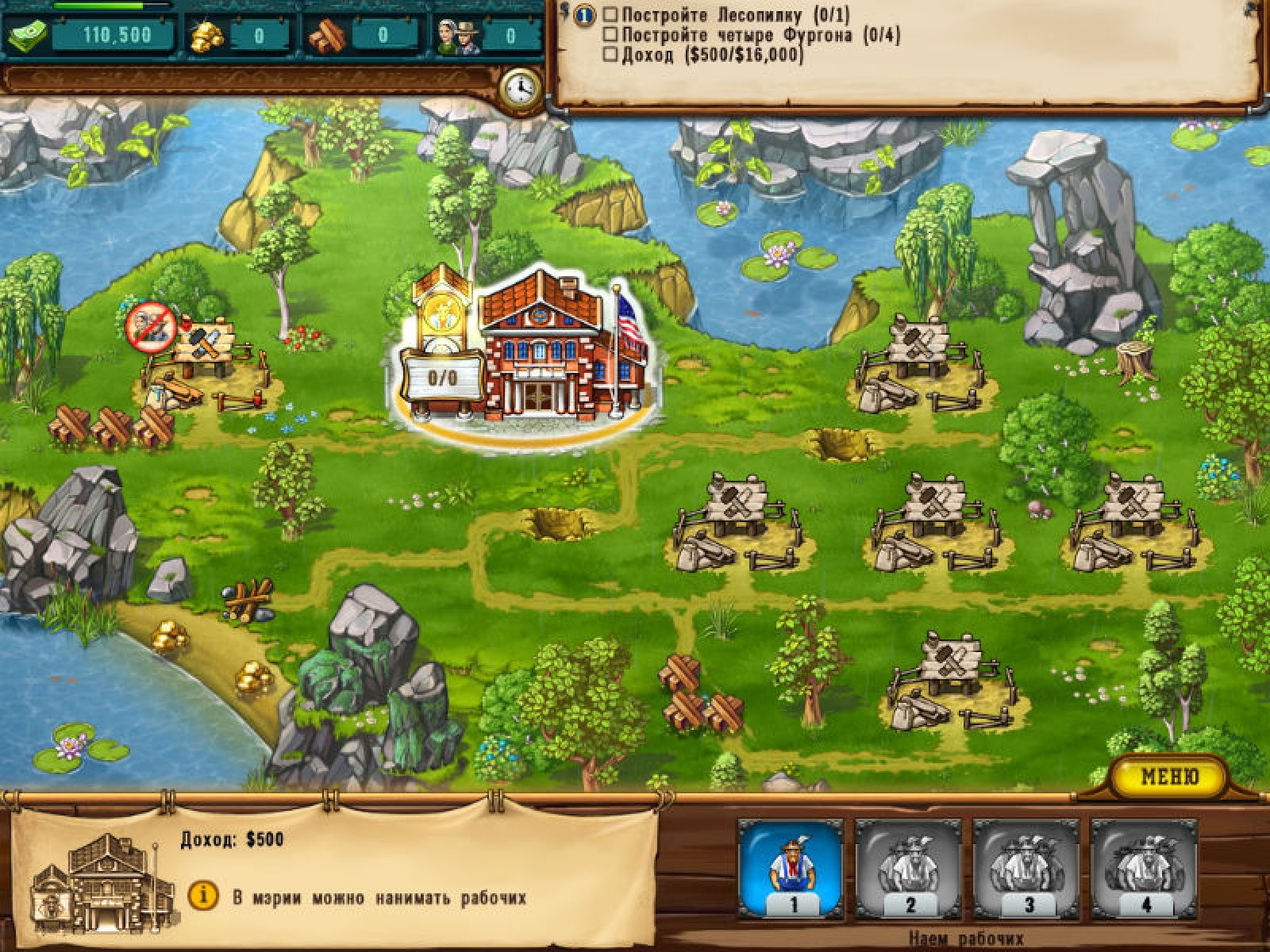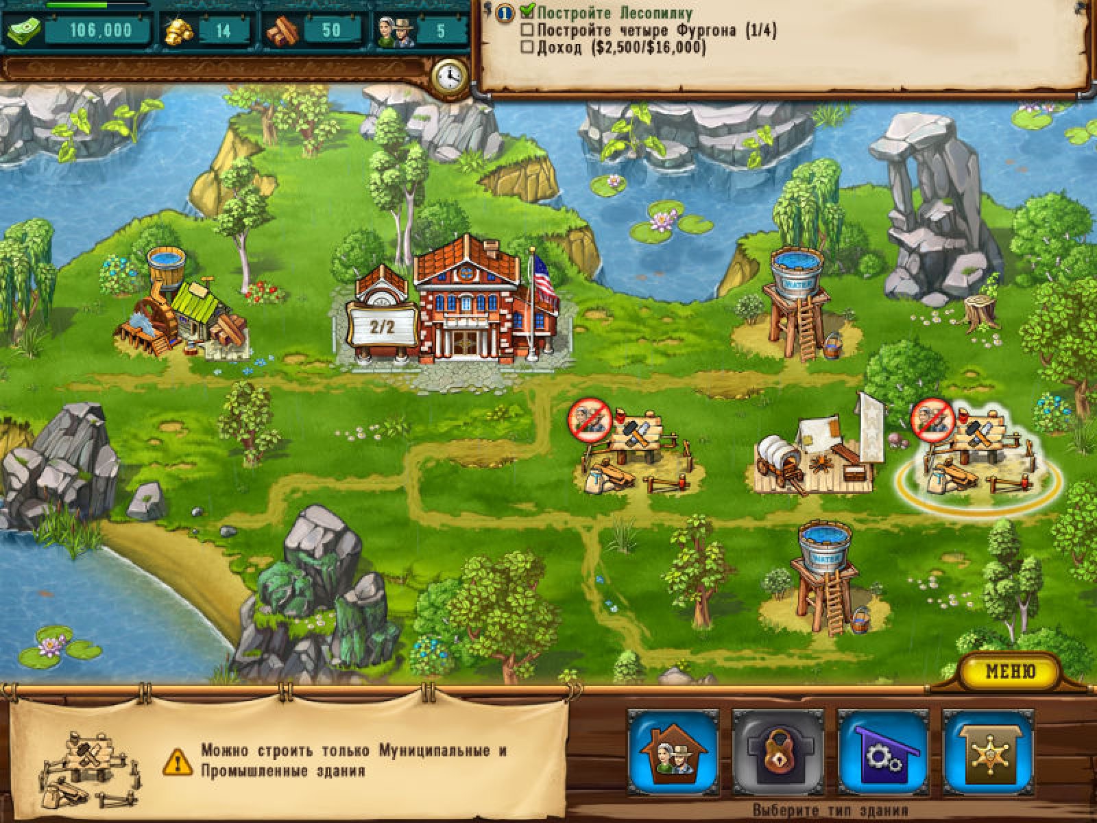 Вы отправляетесь в неведомые земли, чтобы осуществить свою мечту – стать крупнейшим золотодобытчиком на Диком Западе! Скачайте новую игру «Золотоискатели. Путь на Дикий Запад» и рискните стать американским магнатом. Впереди вас ждет множество испытаний – вам предстоит возводить на пустом месте целые поселения, восстанавливать и вновь создавать фермы, мэрию, водонапорные башни и другие муниципальные здания. Чем дальше вы будете продвигаться к своему богатству, тем охотнее ваши жители будут платить вам ренту. Но не забывайте: если у людей нет воды или других жизненно важных ресурсов, поток вашей прибыли может иссякнуть! Покажите, на что вы способны, в новой игре «Золотоискатели. Путь на Дикий Запад»!