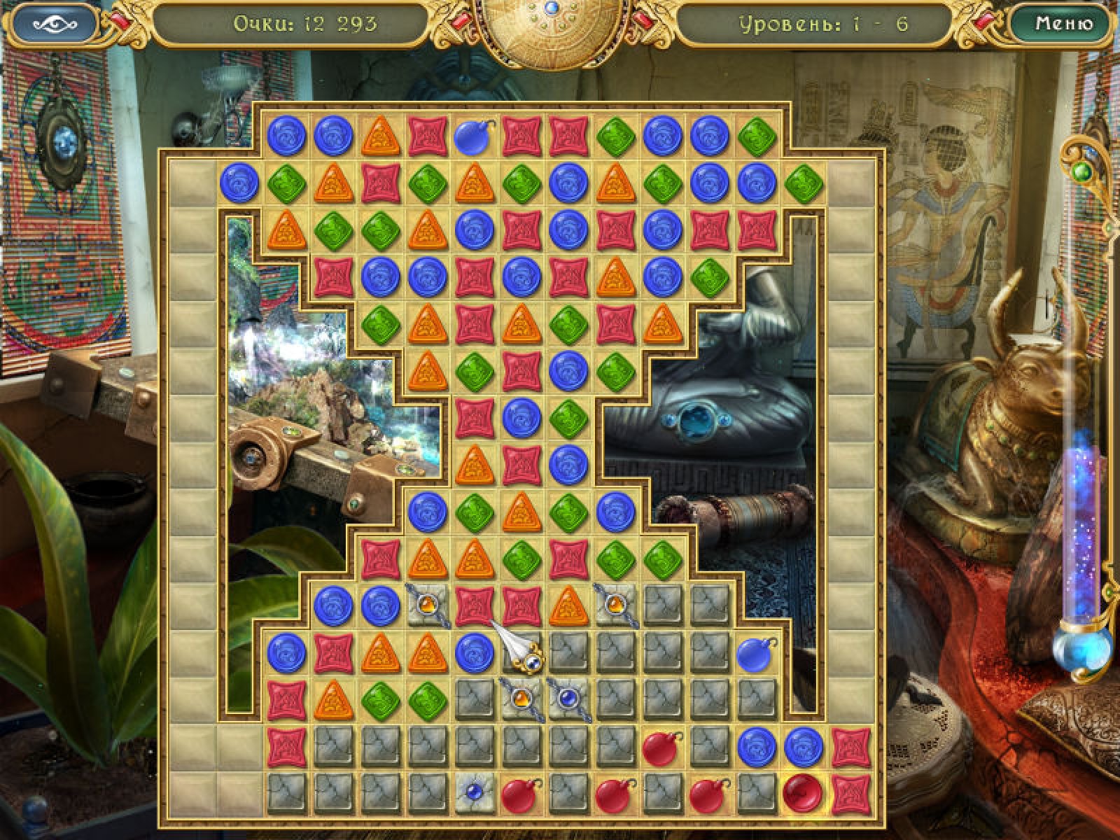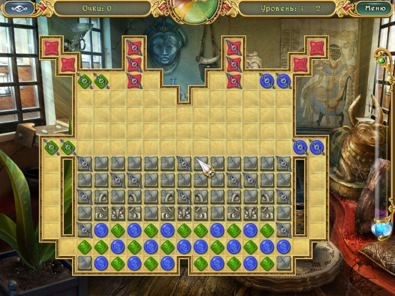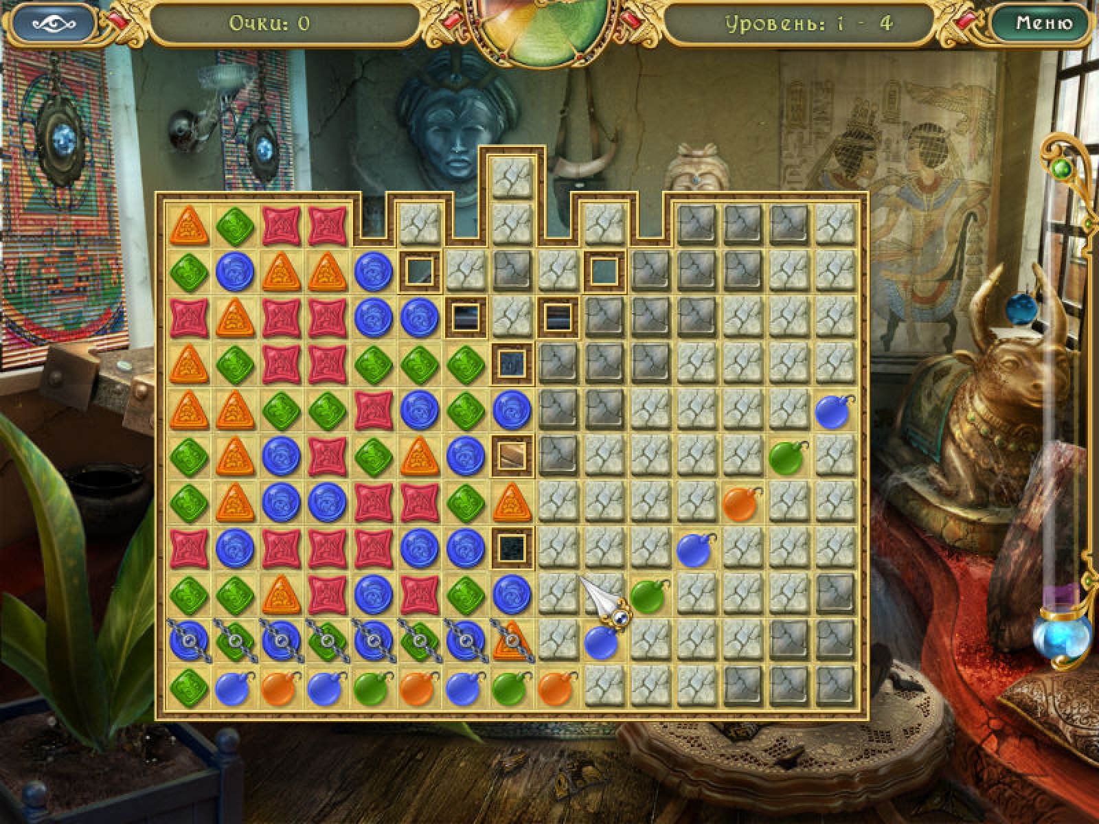 Обойдите все препятствия на пути к вашей желанной цели – найдите древнее сокровище! Путь вам предстоит долгий и очень трудный. Разбивайте разноцветные фишки, убирайте каменные препятствия и даже продвигайтесь вперед при свете факела. А кто говорил, что сокровища даются легко? Играйте, как соревнуясь со счетчиком времени, так и в расслабленном режиме. Но и тогда вам непросто будет преодолеть все препятствия! После каждого уровня смотрите анимированные заставки, которые приближают вас к цели. Скачайте новую игру и откройте тайну древней пещеры!