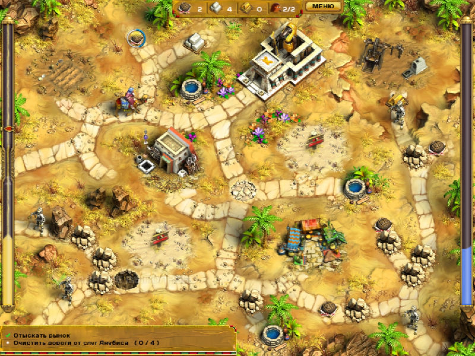 Помогите освободить Египет от злых богов, которые не дают царству процветать, а народу – жить спокойно и счастливо! Вам предстоит помочь девушке Хатшепсут карту за картой освобождать земли Египта от зла и восстанавливать правосудие. Заручитесь согласием добрых богов, соберите все артефакты, которые даруют вам невероятную мощь и способность окончательно прогнать зло из Египетских земель! Скачайте новую игру «Египет. Тайна пяти богов» и окунитесь в невероятный, приключенческий мир, где вам предстоит восстанавливать древние храмы, строить дороги, собирать урожай, обменивать излишки продукции на золото и побеждать приспешников Сета – разбойников, мумий! Во время прохождения игры вам даже удастся прогнать скарабеев, которые мешают вам выполнить ваши задачи. Помогите египтянам вернуть солнечный и радостный мир и добрым богам - победить!