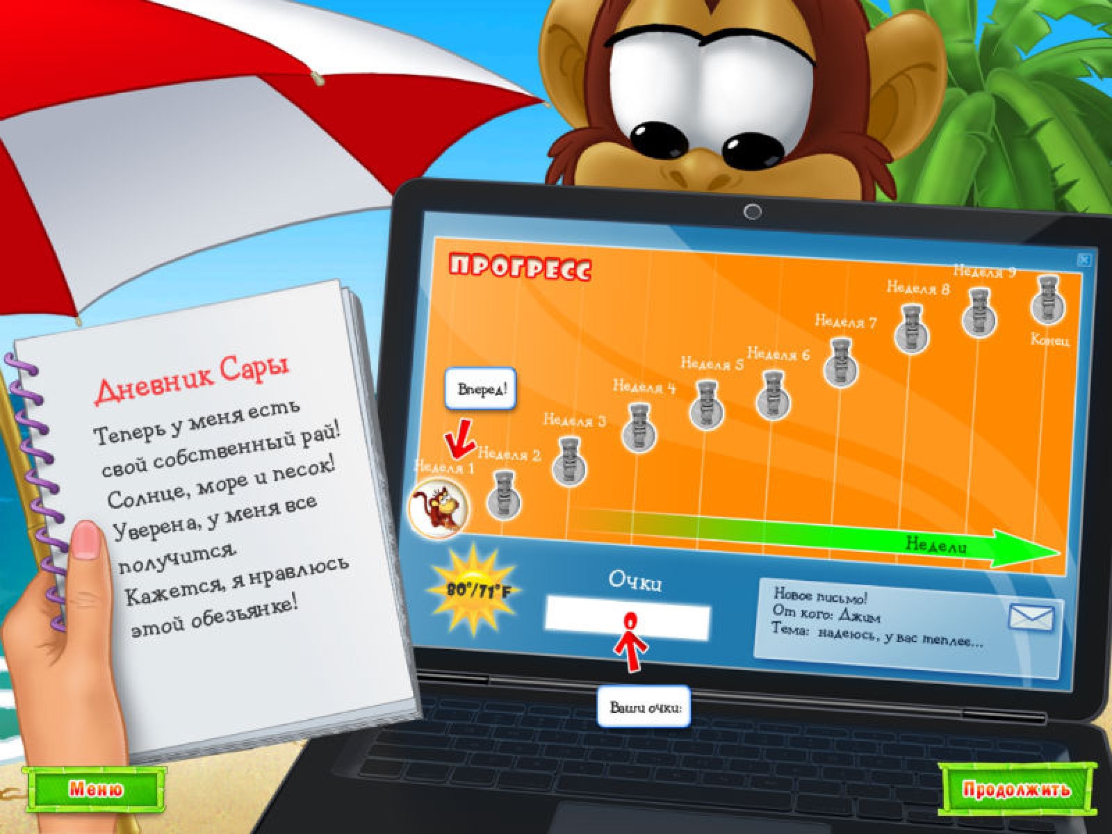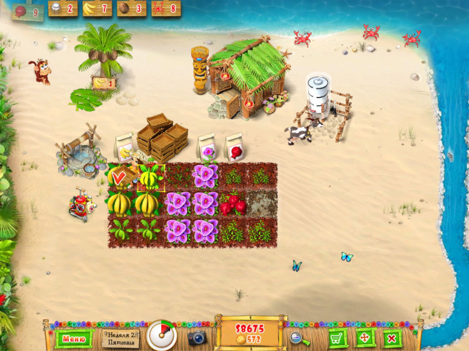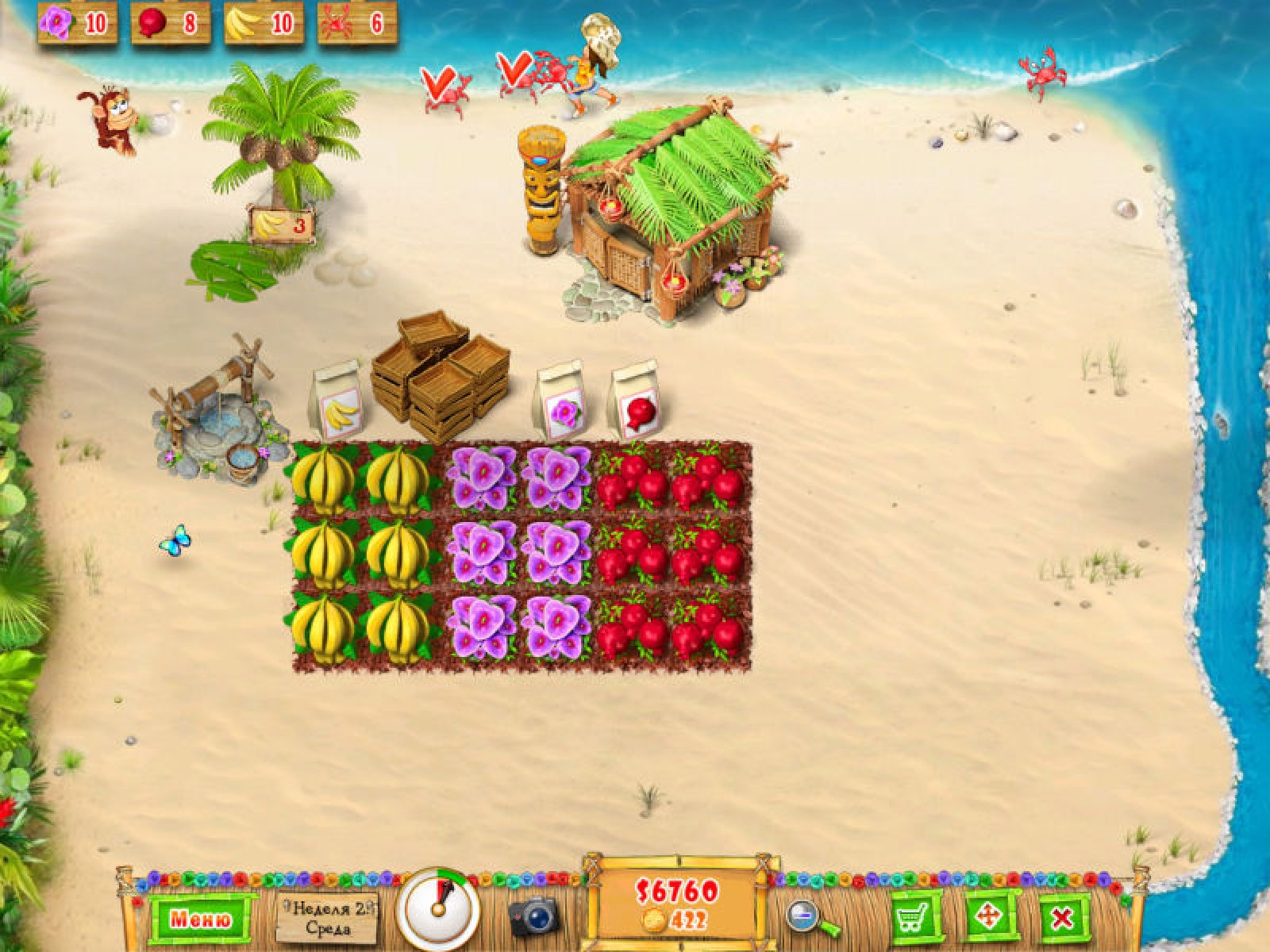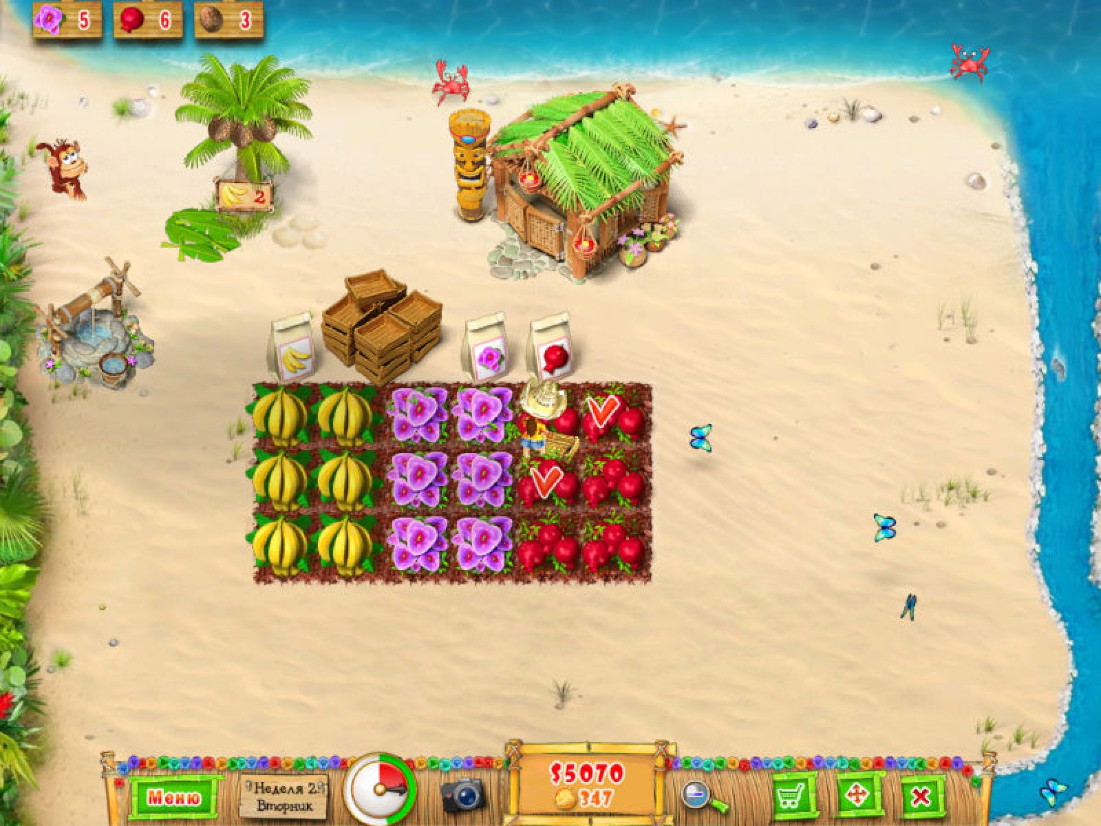 Помогите Саре построить прекрасное ранчо на тропическом острове! Девушка наконец решила поехать отдохнуть, но даже на берегу теплого моря она не может сидеть сложа руки. Вам предстоит выращивать фрукты, ловить крабов, кормить маленькую обезьянку, которая будет приносить вам кокосы. У вас появится много новых друзей и необычные заказы! Помогите Саре ликвидировать несправедливость – ведь на прекрасном острове нет ни одной фермы! А по воскресеньям вас ждет настоящая рыбалка, которая прекрасно разнообразит геймплей. Скачайте новую игру «Переполох на ранчо 2» и наслаждайтесь тропическим изобилием!