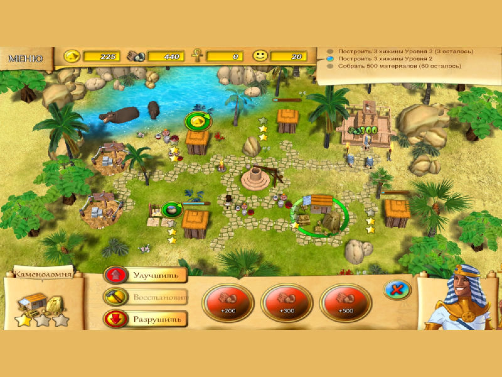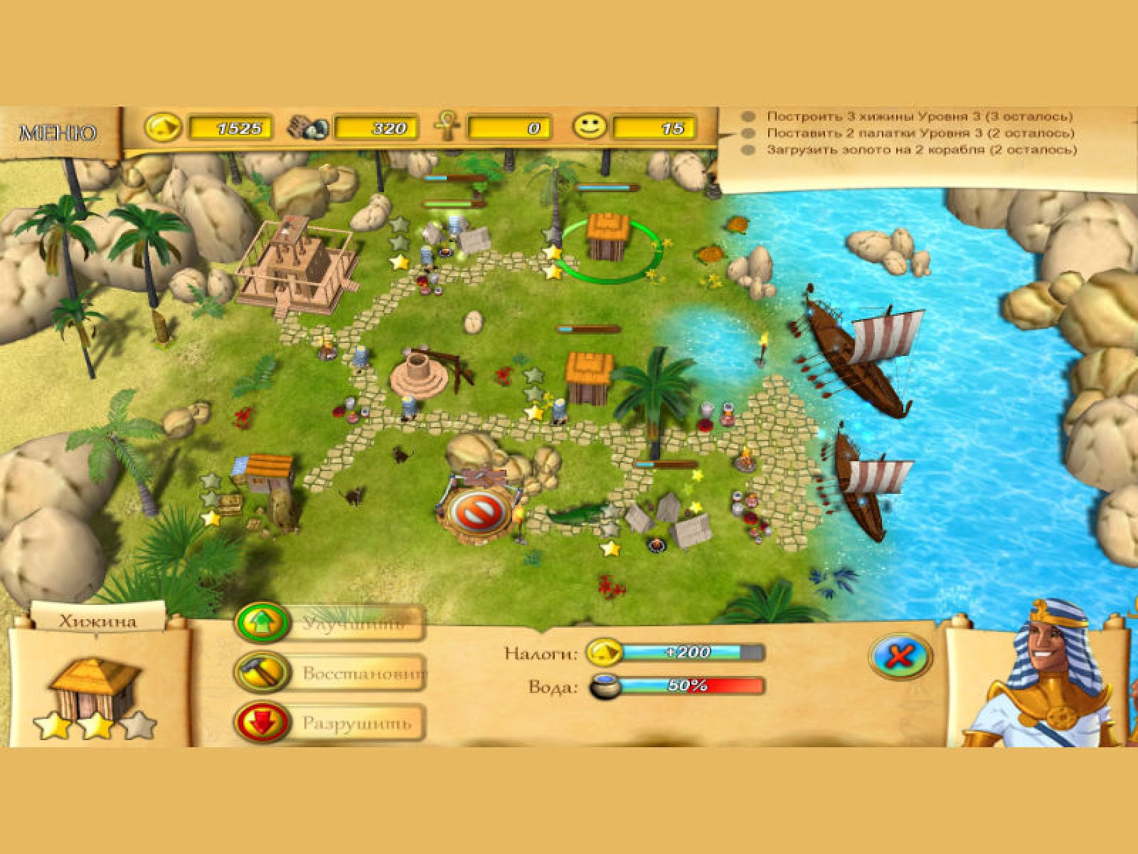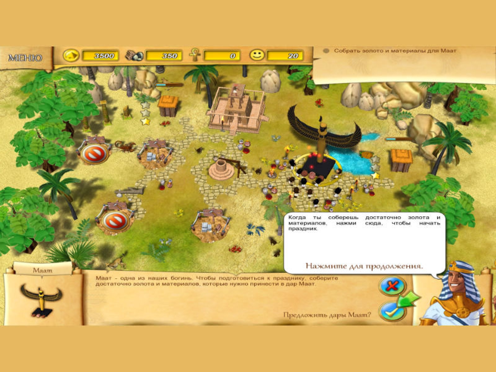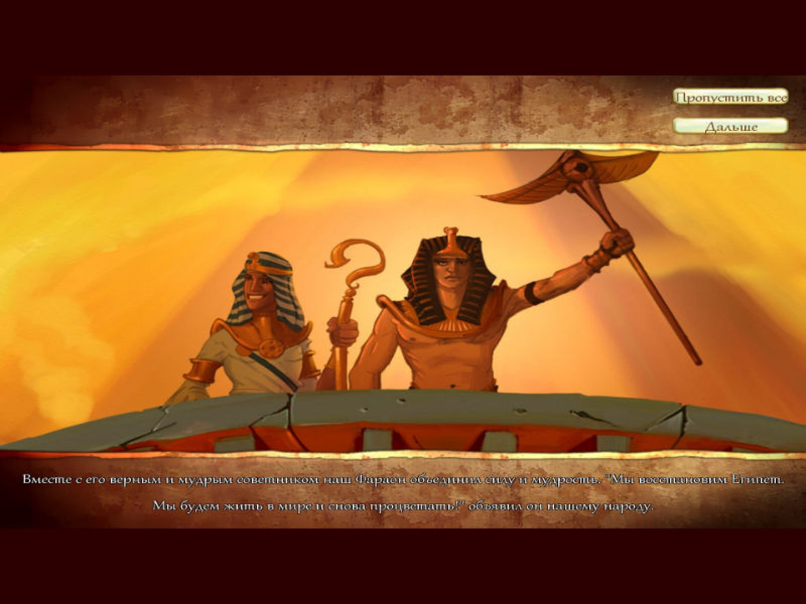 Перед вами – древнее египетское царство после набегов коварных врагов. Города разрушены, жители испуганы, а то, что еще находилось в целости и сохранности, поглотила пустыня. Пора воскресить царство, вернуть ему былое величие! Вы, советник Фараона, должны вернуть Египет на путь богатства и процветания. Вам достаются чертежи из ниоткуда… Кто ваш таинственный благодетель? Благодаря кому вы сможете построить Великую Пирамиду, создать могучего Сфинкса? Об этом вы узнаете, скачав новую игру «Судьба Фараона». Стройте дома, восстанавливайте базары, поднимайте из пепелища гордый, непобедимый Египет. Сражайтесь со стихией, с дикими животными и ядовитыми существами – змеями, скорпионами, и докажите таинственным богам, на что вы способны!