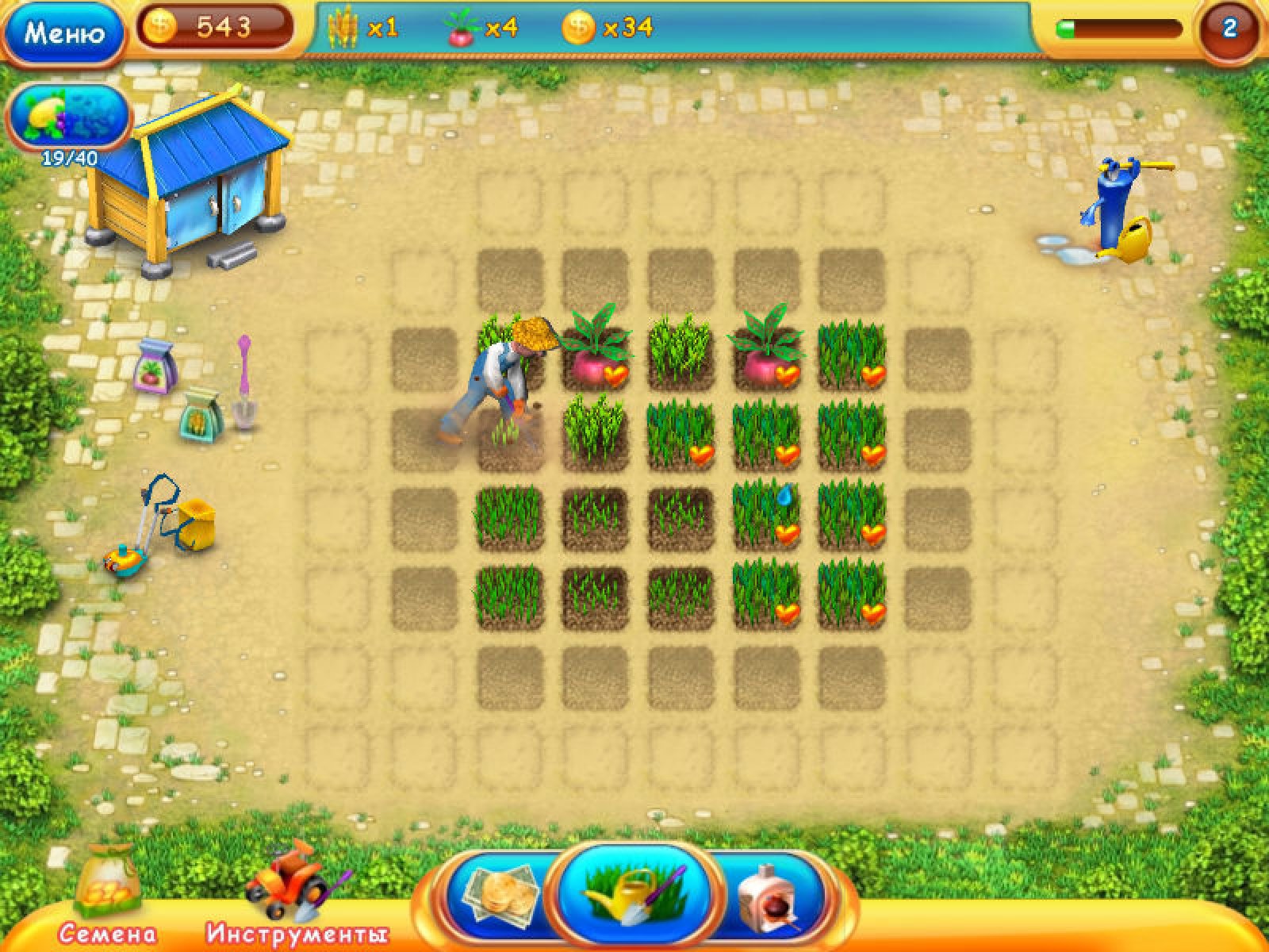 Вести фермерское хозяйство? Стать крупным промышленником? Начать собственное дело? Почему бы и нет! Это и предлагает нам новая игра «Чудо ферма 2». Вы начинаете свое хозяйство буквально с нуля – с продажи сена. Постепенно, выполняя крупные заказы, вы сможете покупать различные сельхозкультуры, разнообразить то, что вы выставляете на продажу и даже разводить домашних животных. Переключение между фермой, огородом и рынком не даст вам заскучать, а сцены встречи с покупателями вносят приятное разнообразие в прохождение игры. Следите за поведением покупателей! На что спрос – то и производите. Предпочтения клиентов часто меняются, и если вы сможете вовремя обновлять ассортимент на прилавке, то будьте уверены - вы скоро разбогатеете! В общем, все как в жизни. Попробуйте, у вас точно получится!