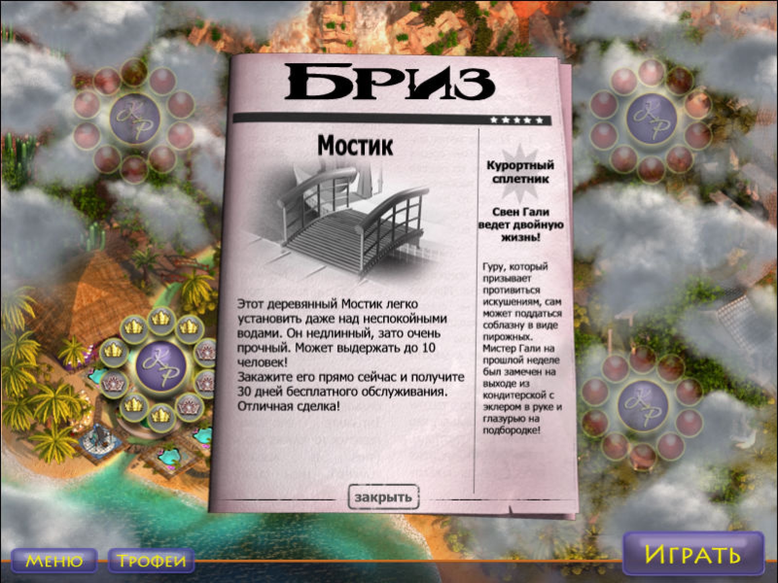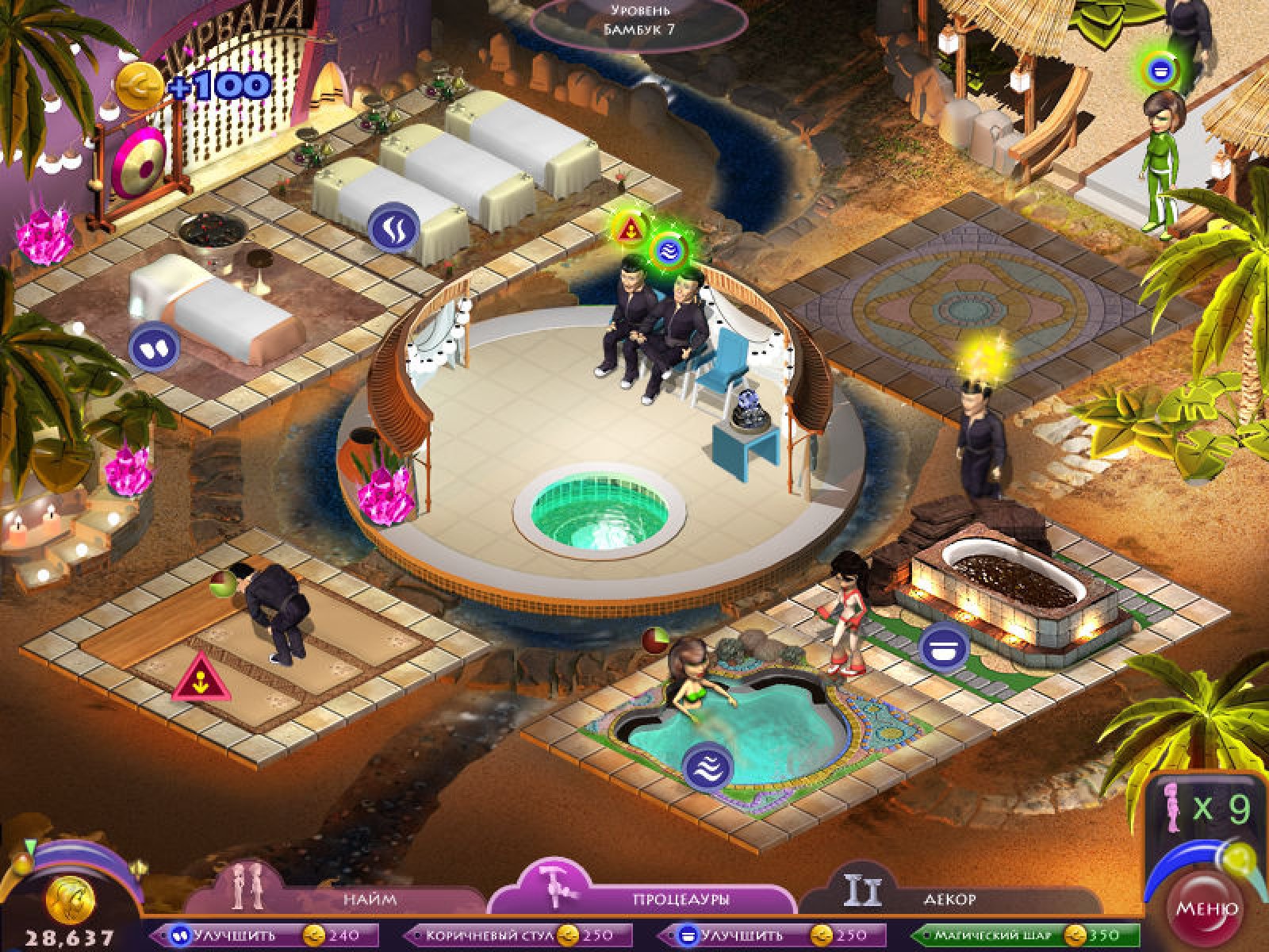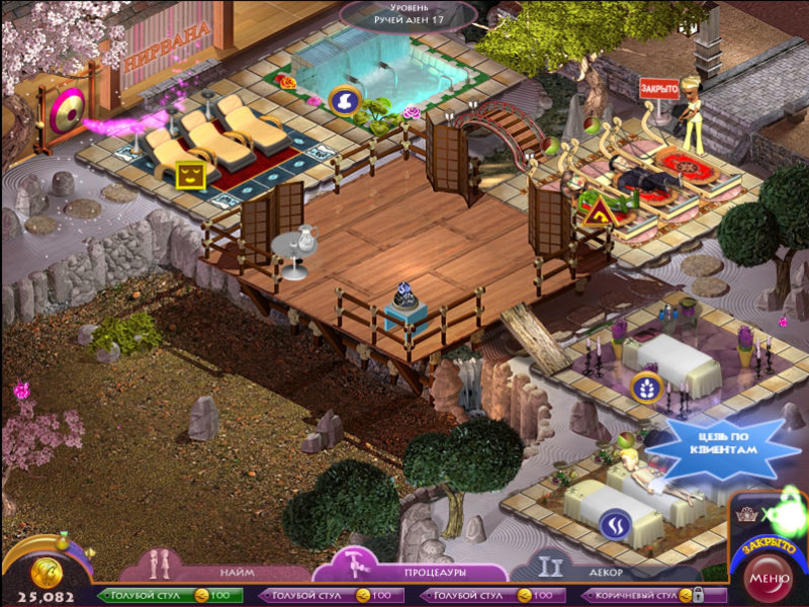 Скачайте игру «Курорт Рэйчел» - новый симулятор, тайм-менеджмент. Вам предстоит новое для вас приключение - стать управляющим spa-салона – сначала одного, а потом – целой сети. За вашими нововведениями будет следить пресса, а ваших клиентов будет вдохновлять непревзойденный гений йоги – Свен Гали. Все клиенты вашего курорта очень капризны – заставить их переменить свои предпочтения можно только с помощью волшебного шара, они постоянно теряют терпение и не в состоянии подождать несколько мгновений, прежде чем предыдущий клиент покинет нужную им процедуру. Более того – ваша конечная цель – клиент должен достичь нирваны. Следите за тем, чтобы в комнате медитаций каждый сидел рядом с тем, с кем ему хочется. Тогда ваши шансы заполучить лояльных потребителей увеличатся! Все это и многое другое ждет вас в новой игре – «Курорт Рэйчел».