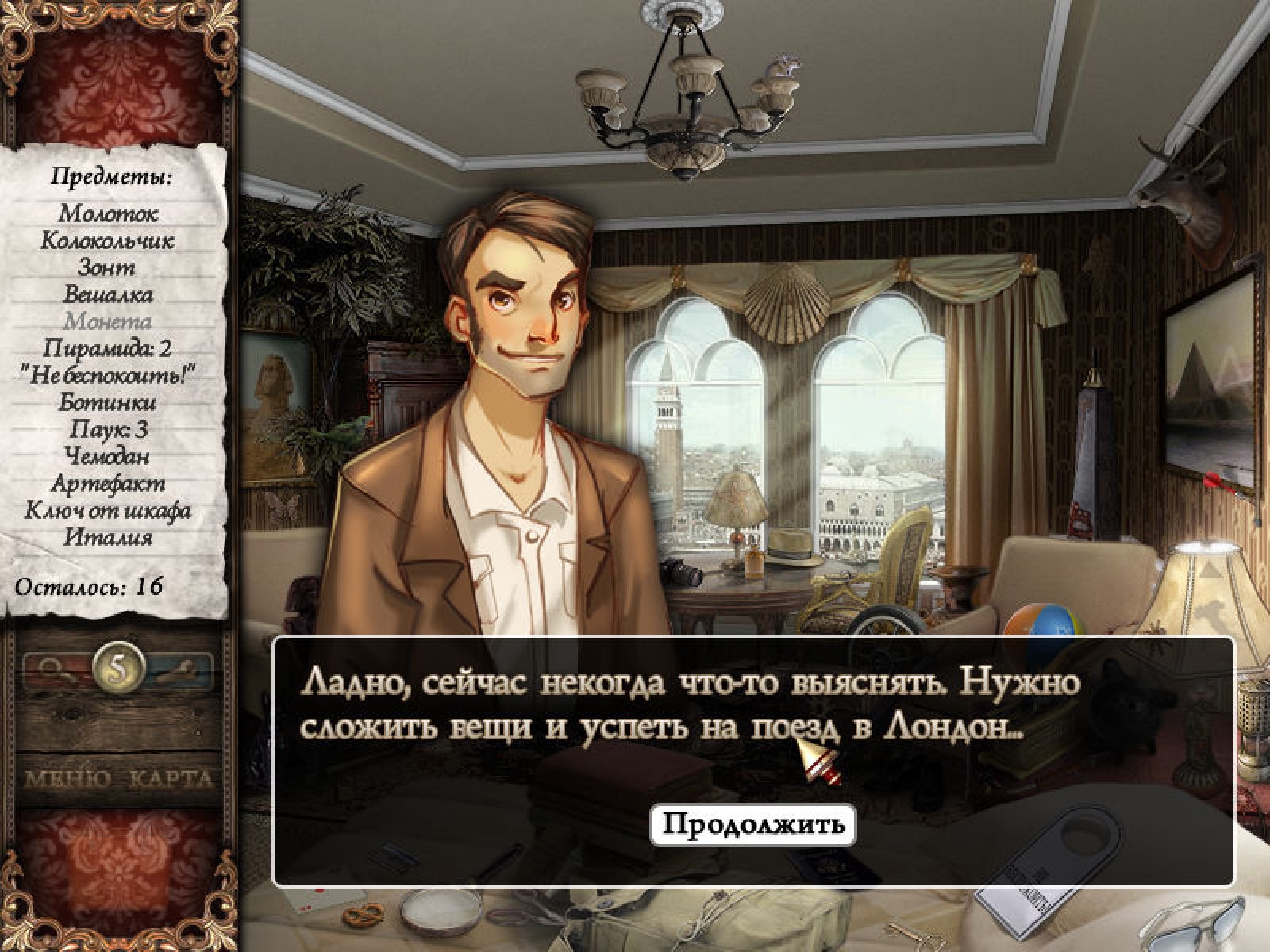Дедушка главного героя всю свою жизнь искал бесценный артефакт – Змея Исиды, который был похищен из Египетского музея в Каире в начале XX века. Много лет прошло с того момента, и вот загадка снова появляется – но уже перед внуком, а не перед дедом. Вам под дверь кладут письмо, в котором говорится о том, кто может иметь Змея Исиды и где его найти. Единственное решение – проверить наводку, ведь еще ваш дед так дорожил любой информацией об этом экспонате. Вы садитесь на Мон-Палу экспресс и начинаете распутывать клубок, ведущий к долгожданной цели – Змею Исиды. «Змей Исиды» - это игра жанра «Я ищу». Все места, где вы побываете, буквально завалены разнообразными предметами, и найти что-то конкретное будет очень и очень нелегко. Помните, что количество подсказок ограничено, поэтому прохождение игры – сложный, но интересный процесс. И потом – вас ждет долгожданная награда! Скачайте новую игру - «Змей Исиды».