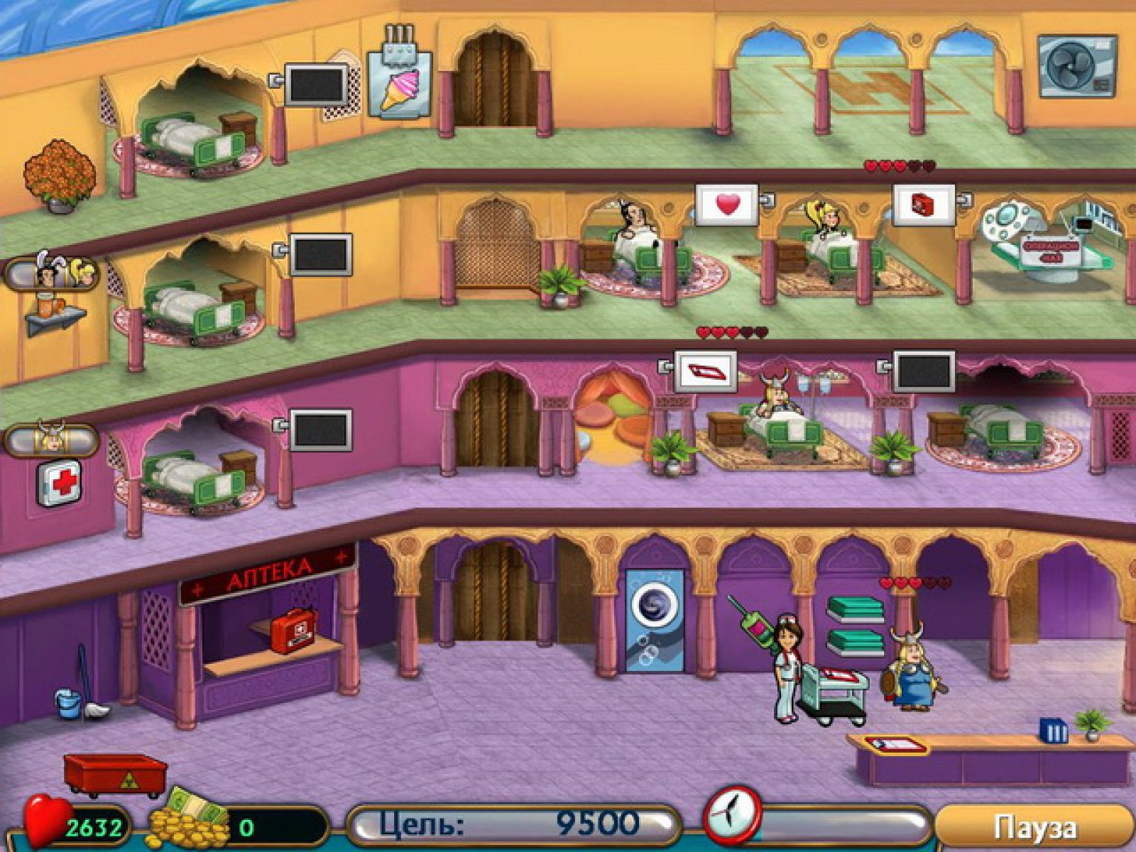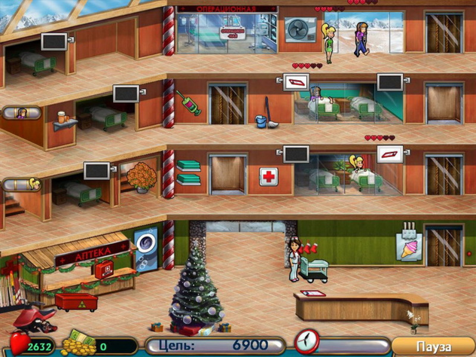 Чтобы открыть частную лечебницу, недостаточно только стать дипломированным врачом. Надо еще быть настоящим знатоком своего дела и иметь нужные медицинские сертификаты. Помогите Салли получить такие документы и осуществить свою мечту. Для получения всех сертификатов вам необходимо пройти практику в пяти лучших клиниках мира. Вместе с Салли вам предстоит научиться всем премудростям врачебного дела: важно не только вовремя оформить больных и поместить их в чистые и уютные палаты, но и следить за настроением пациентов. На каждом уровне вам требуется набрать определенное количество очков. Но достичь цели вы сможете, только если будете все делать быстро и правильно. За довольных и поправившихся пациентов вы получите неплохое вознаграждение. Рекомендуем направить эти деньги на покупку нового оборудования для клиники и повышение зарплаты врачей.