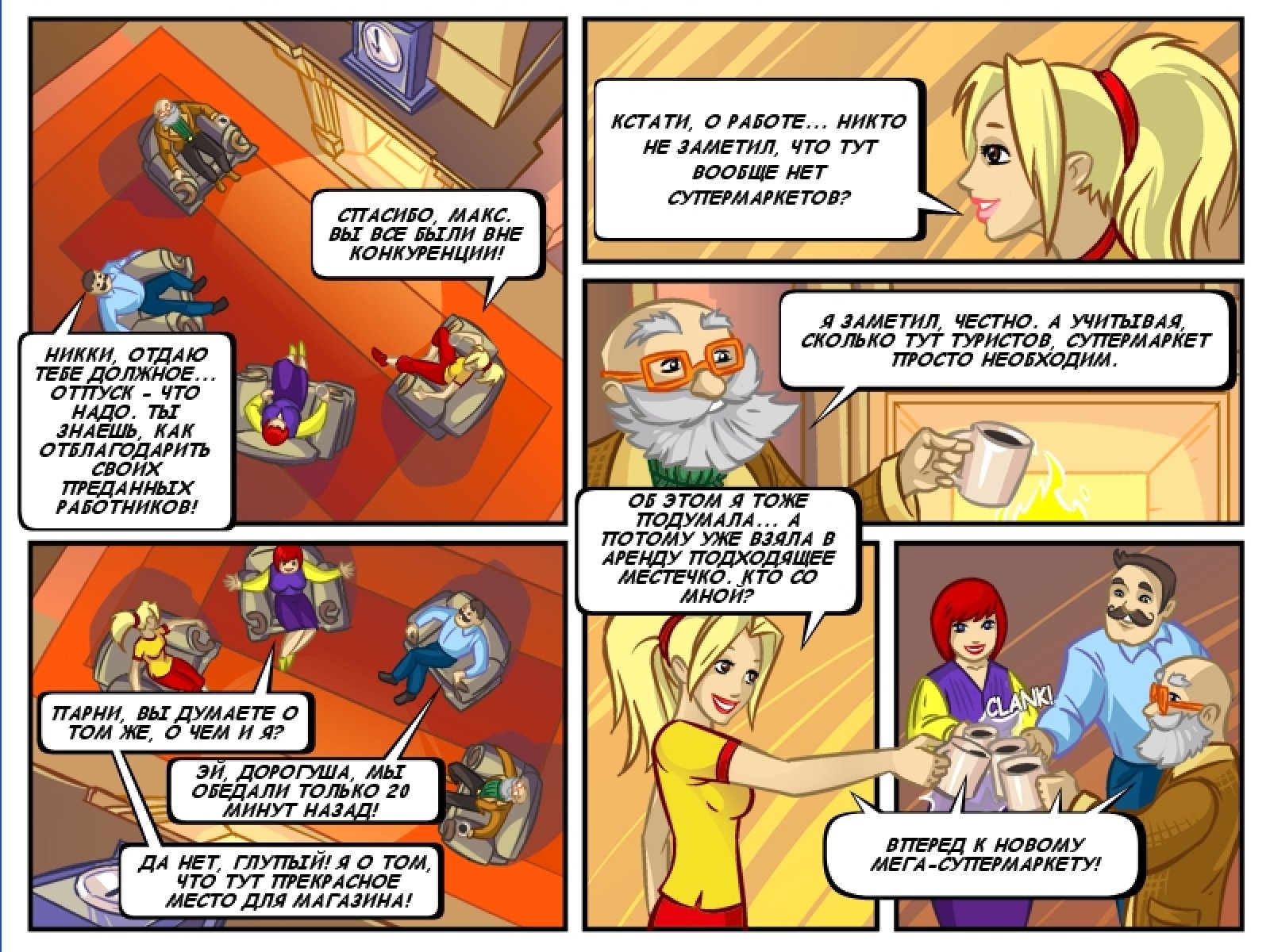 Никки и её друзья Кларенс, Венди и Макс готовы к новому приключению! Они едут в Голливуд, где дядюшке Россу необходима помощь в управлении сетью супермаркетов. Открывайте новые магазины в центре города, в тихом пригороде, на солнечном пляже, на лыжном курорте и даже в самом высоком здании города! Вам предстоит овладеть новыми игровыми механиками, в то время как вы будете заполнять полки, делать коктейли, варить кофе, печь круассаны, делать соки, подавать пиццу. Чтобы ваши покупатели были довольны, вы можете нанимать помощников, покупать апгрейды оборудования и декора, доставлять товары в окрестности, бороться с ворами и даже обслуживать нетерпеливых знаменитостей. Новая графика, новая музыка, новые покупатели, новое оборудование, новые игровые механики и новые спецуровни – вам так много предстоит сделать в игре "Супермаркет Мания 2"!