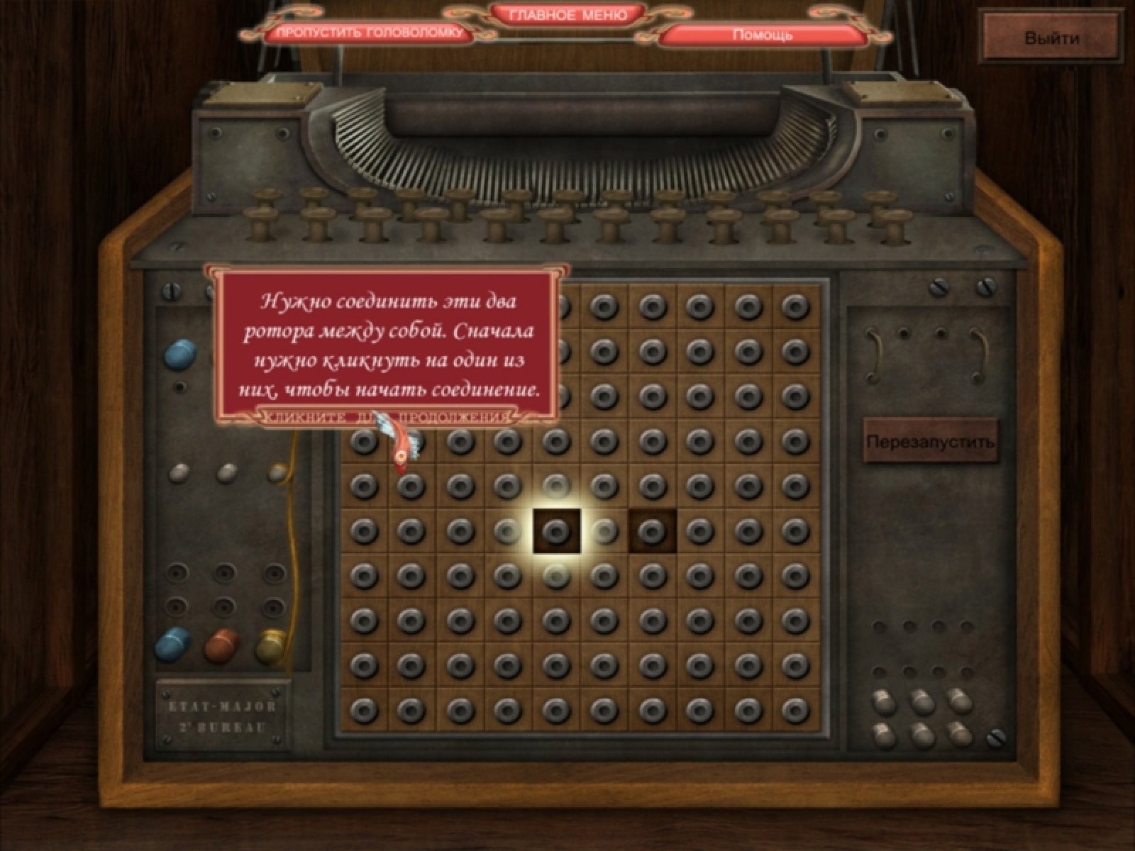Познакомьтесь с легендарной шпионкой времен Первой Мировой войны по прозвищу Мата Хари. Вместе с ней вам предстоит выполнять распоряжения командования, получаемые через шифровки, которые передаются через систему тайников. Решайте головоломки, помогайте Мате Хари входить в доверие и соблазнять офицеров Германской армии и армии союзников. Выведайте у них секретные планы и выявите предателей в обоих армиях. Вам помогут острый ум и очарование знаменитого двойного агента Маты Хари. Увлекательный квест по мотивам похождений легендарной Маты Хари перенесет вас в неспокойное время Первой Мировой войны. Предатели в рядах обоих армий, секретные донесения, шифровки, загадочные убийства, поиск улик - все это вы найдете в игре " Мата Хари и подводные лодки Кайзера".