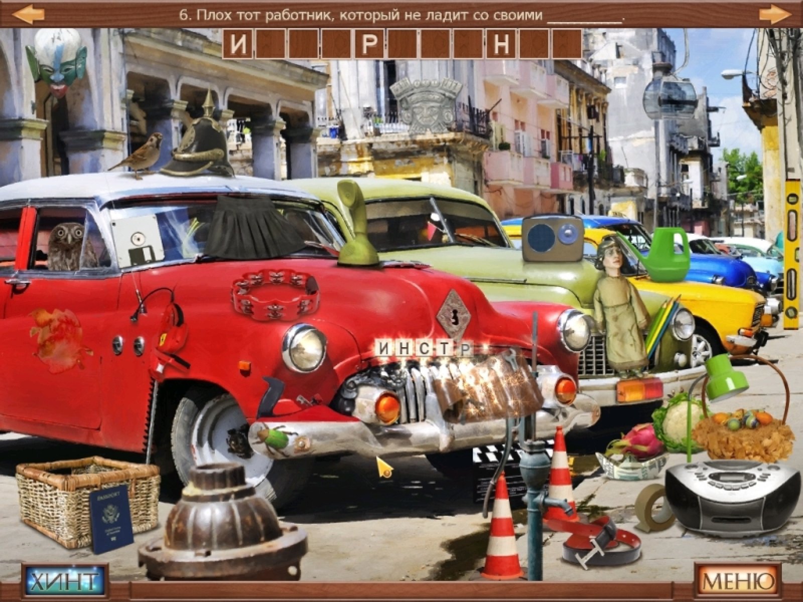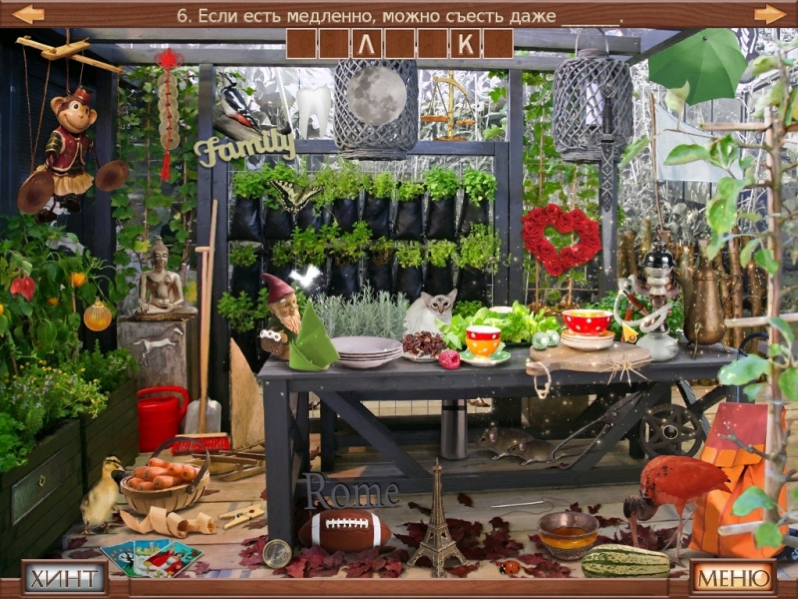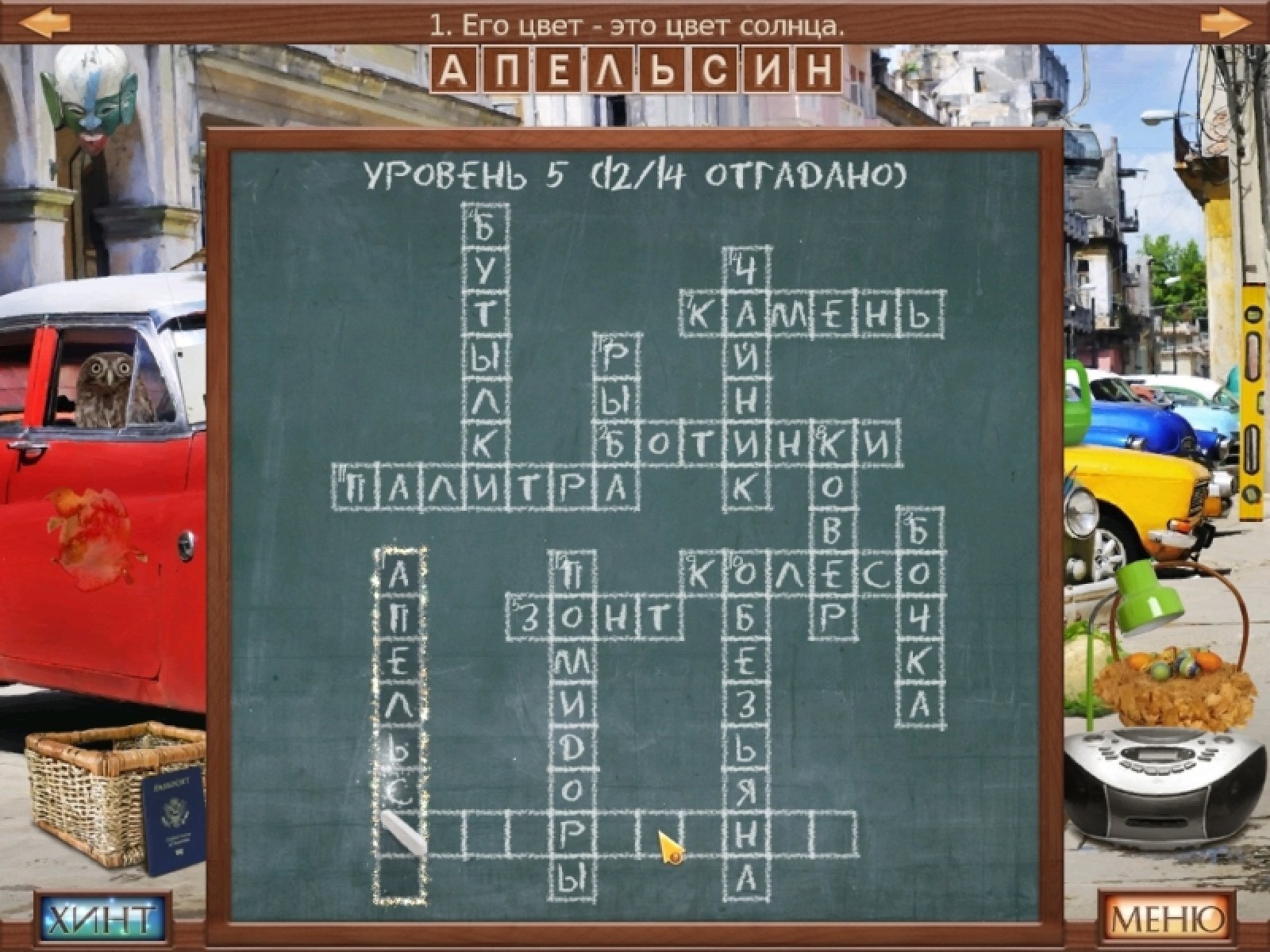 Попробуйте абсолютно новую концепцию игры из жанра "я ищу"! Теперь вам нужно не просто находить предметы из списка, а для начала отгадать, что это за предметы ! Все слова-отгадки собраны в занимательные кроссворды доступные на более чем пятидесяти уровнях этой игры. Тысячи загадок из разных областей не оставят вас равнодушными! Никак не можете отгадать загадку? Ловите мотылька, из которого выпадает очередная буква выбранного слова или воспользуйтесь подсказкой по области нахождения предмета. Вы можете отгадывать предметы в любом порядке, просто выбирая их в кроссворде или перелистывая загадки одна за другой. Никакого ограничения по времени! Тем не менее, вы увидите полную статистику после прохождения очередного уровня. Постарайтесь заработать все награды: за скорость, точность нахождения и обхождение без подсказок.