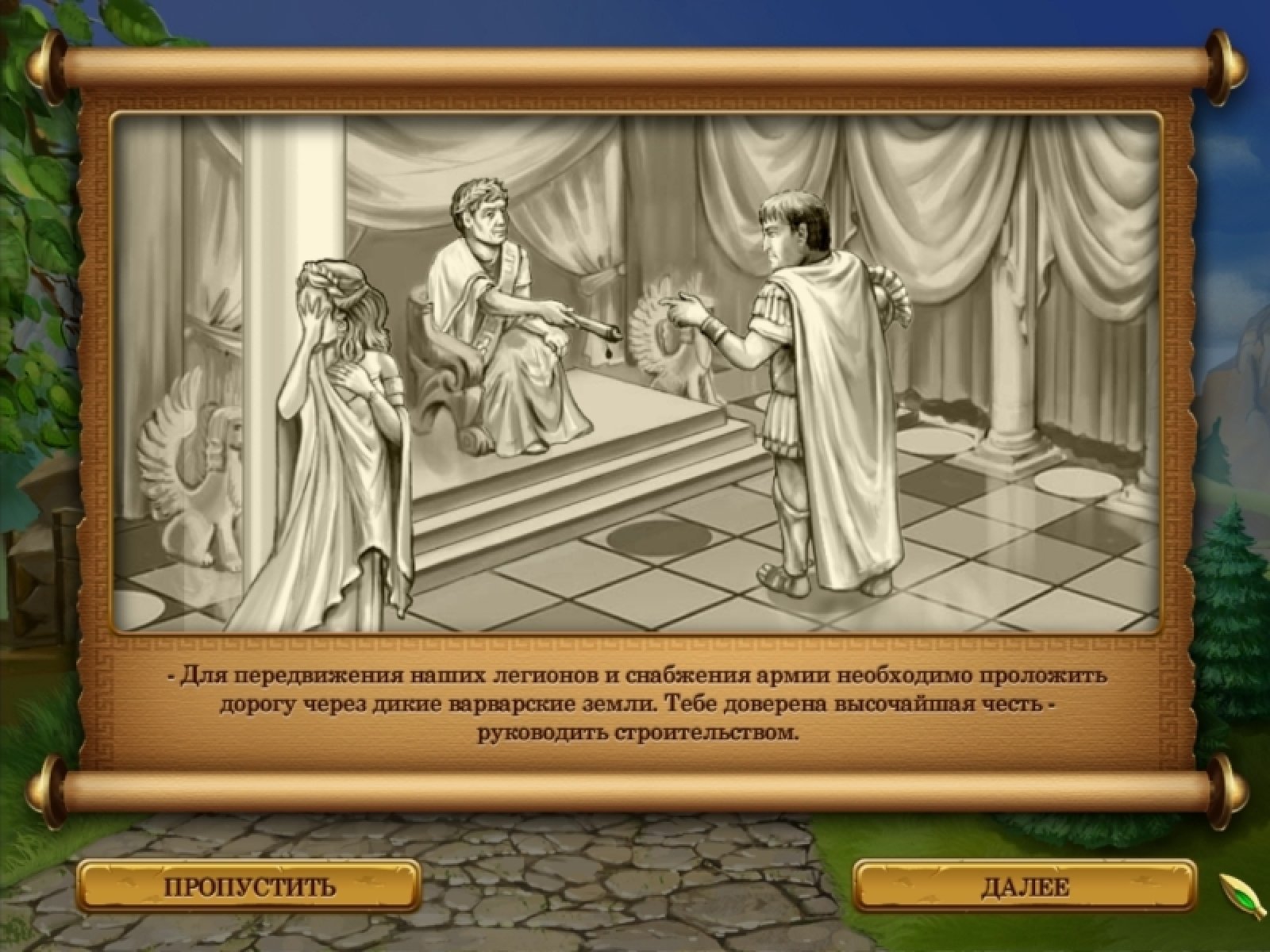 Случилось так, что Викториус, храбрый воин и удачливый полководец, полюбил дочь Цезаря, но не так-то просто получить в жены дочь самого императора! И вот, на пути к счастью Викториуса оказываются варварские земли, где нужно, по приказу Цезаря, проложить дороги! Викториус готов справиться с этой нелегкой задачей и завоевать доверие Цезаря, а награда не заставит себя долго ждать. В увлекательной игре "Дороги Рима" вас ждет захватывающий сюжет и потрясающий геймплей. Испытайте вкус победы и славы, покажите самому Цезарю, на что вы способны, что вас не испугать сложными задачами и хитрыми уловками. Вас ждут неизведанные земли, которые вы превратите в провинции Римской Империи, ведь именно вы должны принести Риму богатство и приумножить его мощь!