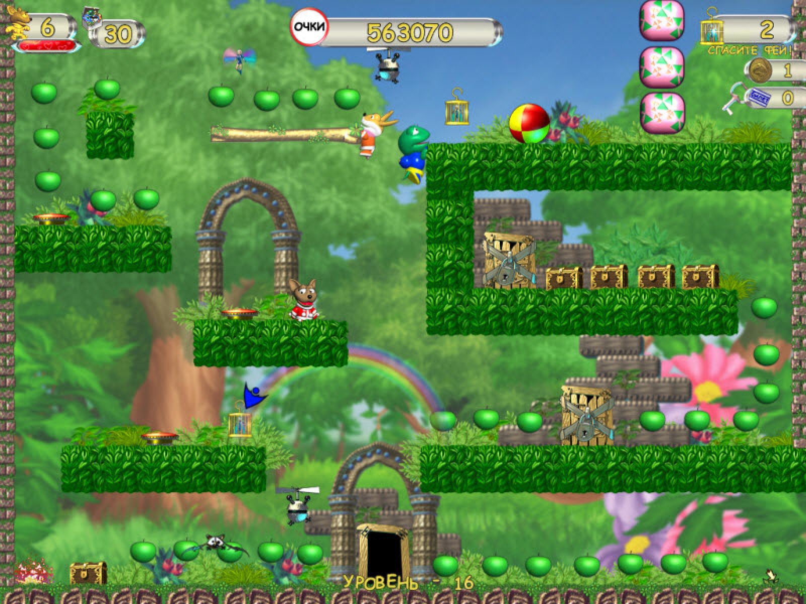 Далеко-далеко, в небе за облаками, есть страна чудес. Там, на летающих островах, живут милые зверьки, которые целыми днями играют и поют песенки. С ними никогда не случалось ничего плохого, но однажды в этот чудесный край прилетели инопланетяне, которые похитили всех фей! Вместе с храбрецом Митчем из агентства "Спаси всех" вы отправитесь на помощь несчастным малюткам. Путешествуя по волшебной стране, вы будете сражаться с инопланетянами и вызволять пленниц из прочных клеток. Не стоит медлить, феи уже заждались своего спасителя! Эта аркада обязательно понравится всем юным любителям приключений. Вас ждет множество уровней, разнообразные противники и хитроумные ловушки. Помогите Митчу спасти фей, станьте героем волшебной страны!