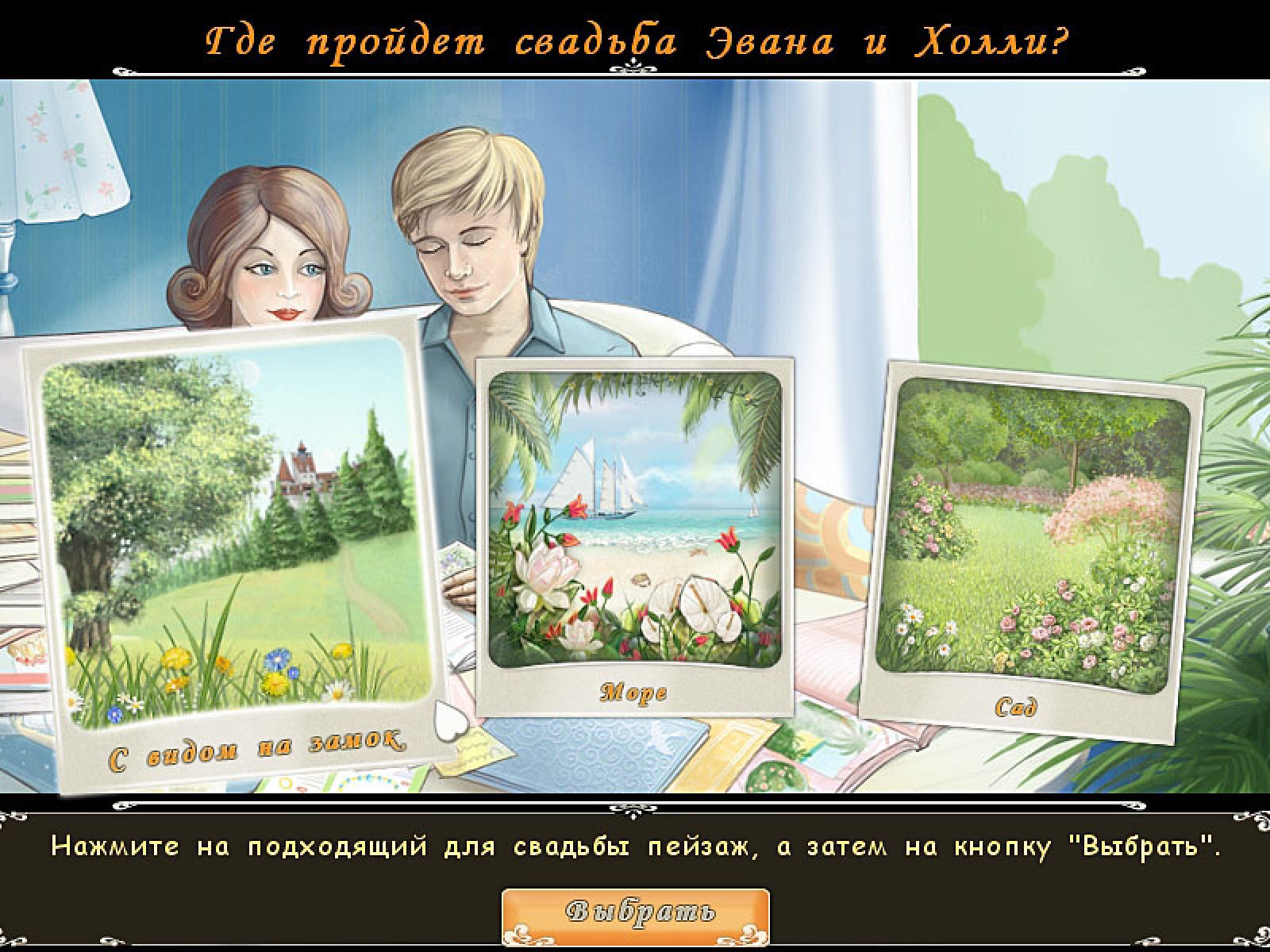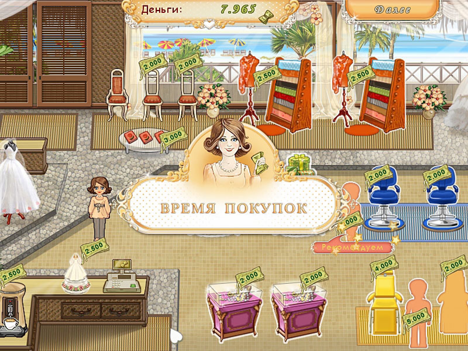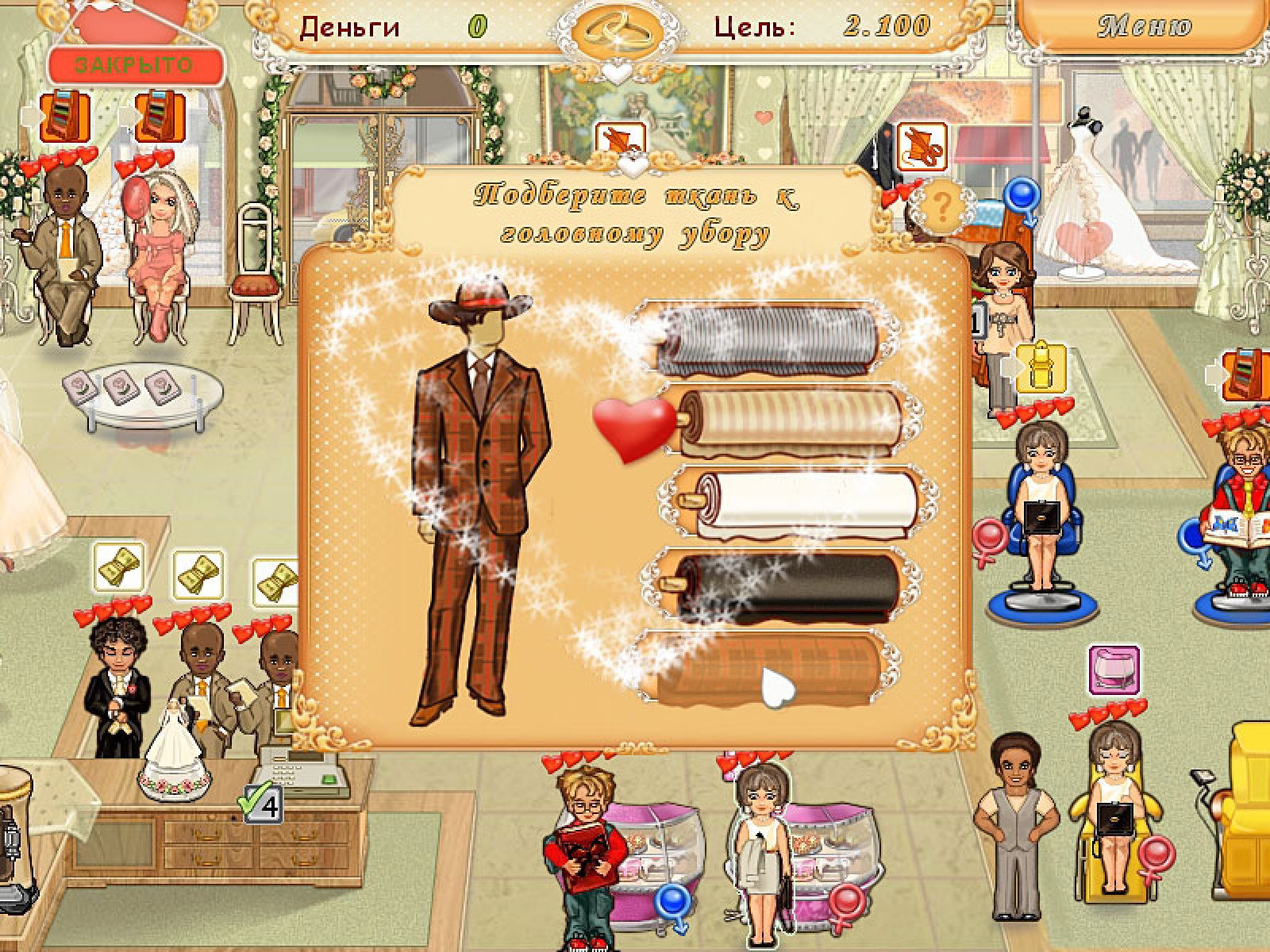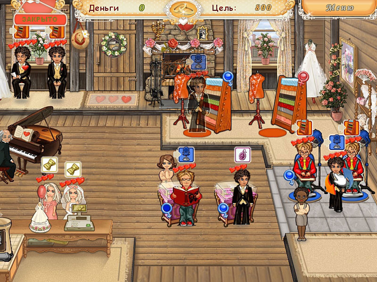 Обычно счастливые истории заканчиваются предложением руки и сердца, но в игре "Свадебный салон" со слов «Давай поженимся» самое интересное только начинается! В сеть свадебных салонов, которыми заведует Холли, заглядывают самые разные посетители: будущие молодожены, их многочисленные родственники и друзья. Накануне торжества у них тысяча дел: составить роскошный свадебный букет, подобрать элегантный наряд, найти оригинальные подарки для жениха и невесты, выбрать торт и закуски. А ведь в этот день хочется еще и сногсшибательно выглядеть – значит, нужно записаться на массаж, в солярий и к стилисту-парикмахеру! К счастью, бегать по всему городу не придется – все эти услуги есть в салоне у Холли. О салоне ходят легенды, поэтому у Холли нет отбоя от клиентов – и всех их нужно обслужить по высшему разряду! Будьте внимательны к посетителям, и они оставят щедрые чаевые. Кстати, опыт свадебного консультанта Холли пригодится – ведь она и сама скоро выходит замуж, и ее свадьба просто обязана стать идеальной!
