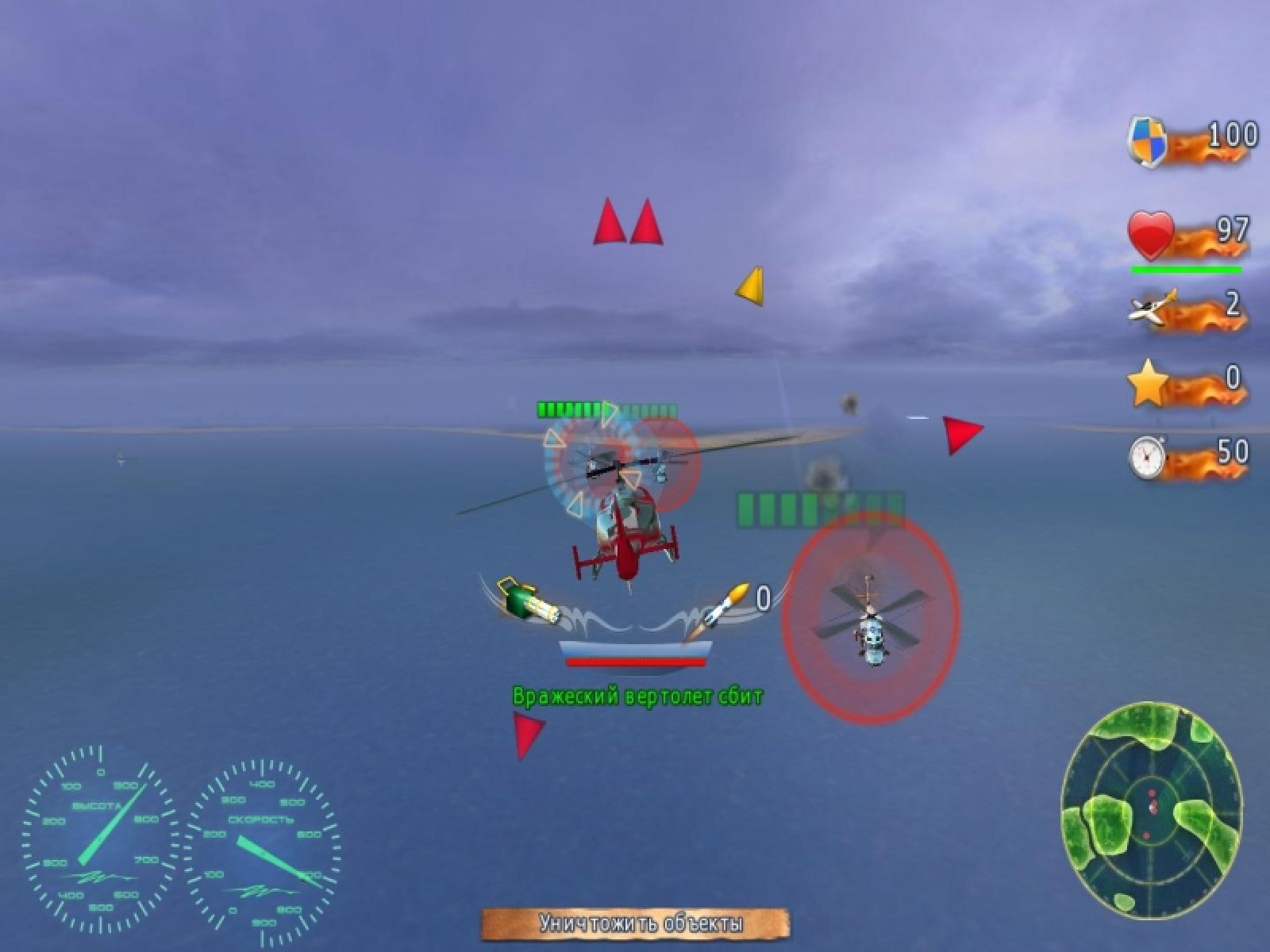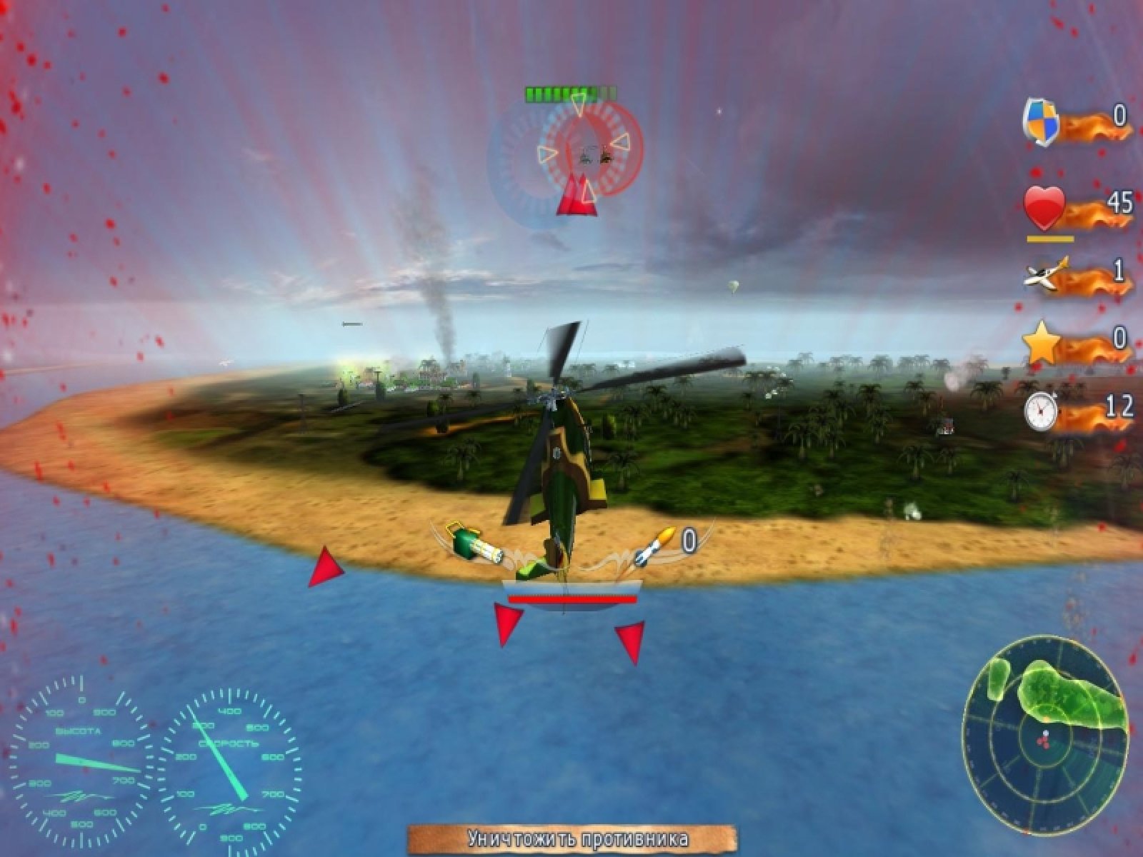 Увлекательный симулятор вертолетных боев "Хелик" подарит вам незабываемые ощущения воздушных баталий. Садитесь на место пилота боевого вертолета и летите выполнять задания командования. По началу это будет не очень сложно, но не советуем вам расслабляться! Задания с каждым разом будут все сложнее и сложнее. Новые типы воздушных машин противника, прогрессирующие способности врага в обороне своих стратегических объектов приятно удивят даже самых продвинутых игроков. Динамичный симулятор "Хелик" понравится всем любителям жанра. Курс молодого бойца обеспечит вам необходимые навыки в управлении боевой машиной. По мере прохождения игры вам будут предлагаться новые, более подвижные и мощные вертолеты. Так что смелее садитесь за управление грозной боевой машины. К вылету готовы? Тогда "от винта!"