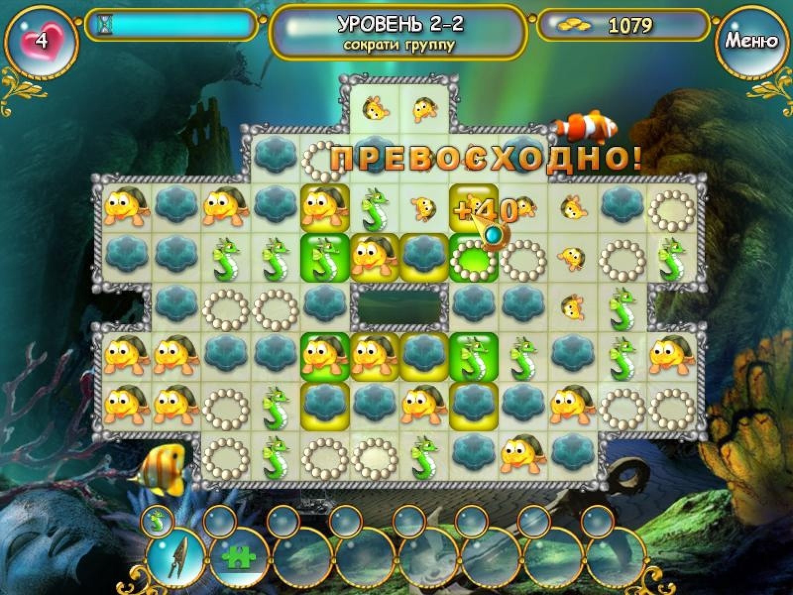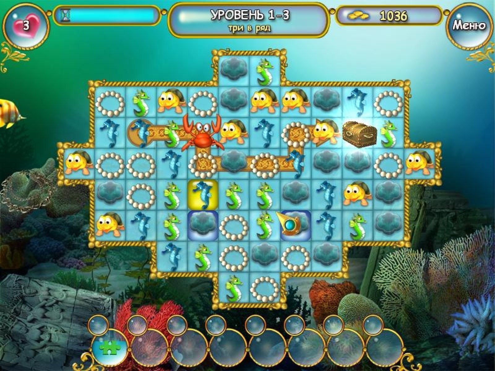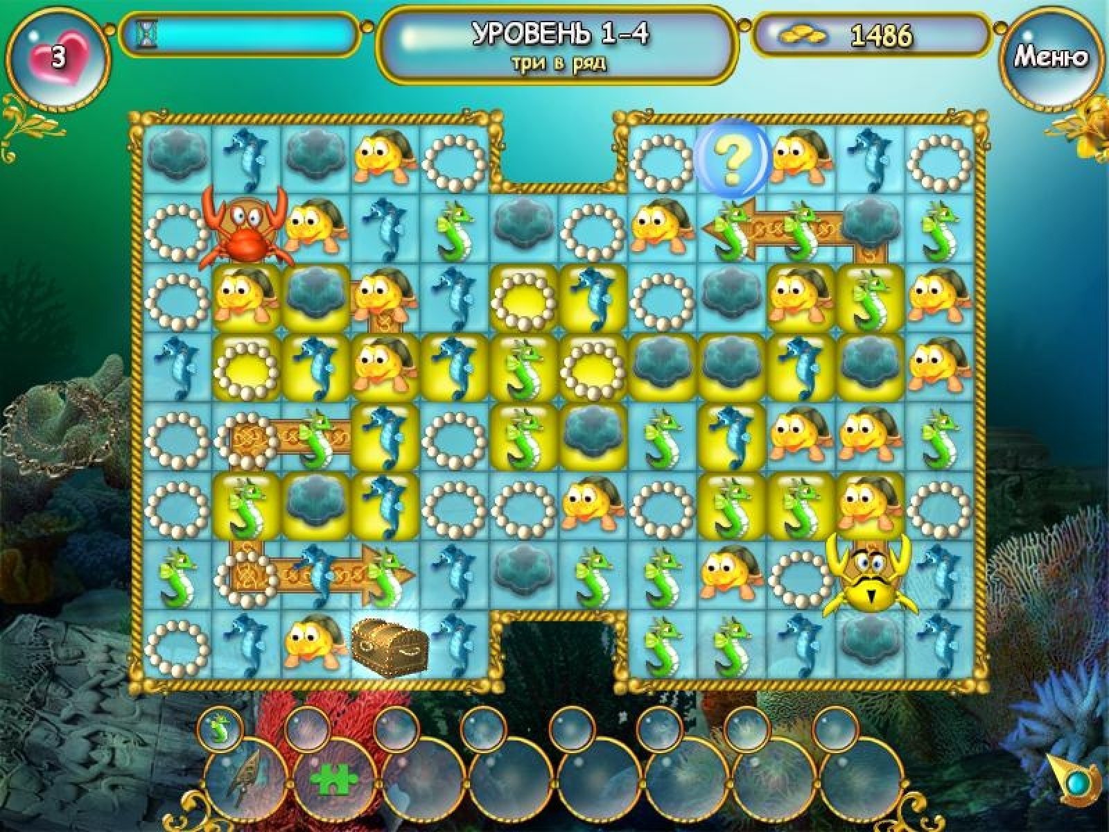 Представляем вам вторую часть полюбившейся всем игры "Скрытые чудеса глубин". На этот раз вам предстоит отправиться в подводное путешествие по всему свету. Разгадывайте головоломки, чтобы продвинуться дальше на этом нелегком пути. Помогайте крабу добраться до сундука с сокровищами, разбивайте плитки на игровом поле, восстанавливайте затонувший корабль. Множество красочных мини-игр и головоломок ждут вас в увлекательной игре "Скрытые чудеса глубин 2" В этой игре есть головоломки на любой вкус. Собирайте фишки в ряд по три штуки, кликайте по блокам из трех и более фишек, ищите на морском дне спрятанные сокровища. А также собирайте паззлы и на заработанные очки покупайте красивых рыбок для своего подводного заповедника.