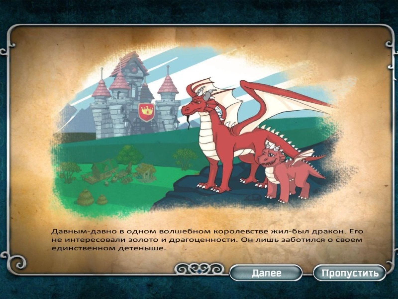 В одном сказочном королевстве жил-был дракон. Однажды один злодей похитил его сына. Дракон в ярости бросился по поиски детеныша и смел все королевство с лица земли. Несчастные жители очень нуждаются в вашей помощи: вам нужно прогнать разбойников и восстановить разрушенные деревни и села. Вы с радостью принимаетесь за дело, под вашим умелым руководством жизнь обитателей королевства начинает налаживаться, а в семью дракона приходит покой - вся его семья снова в сборе!