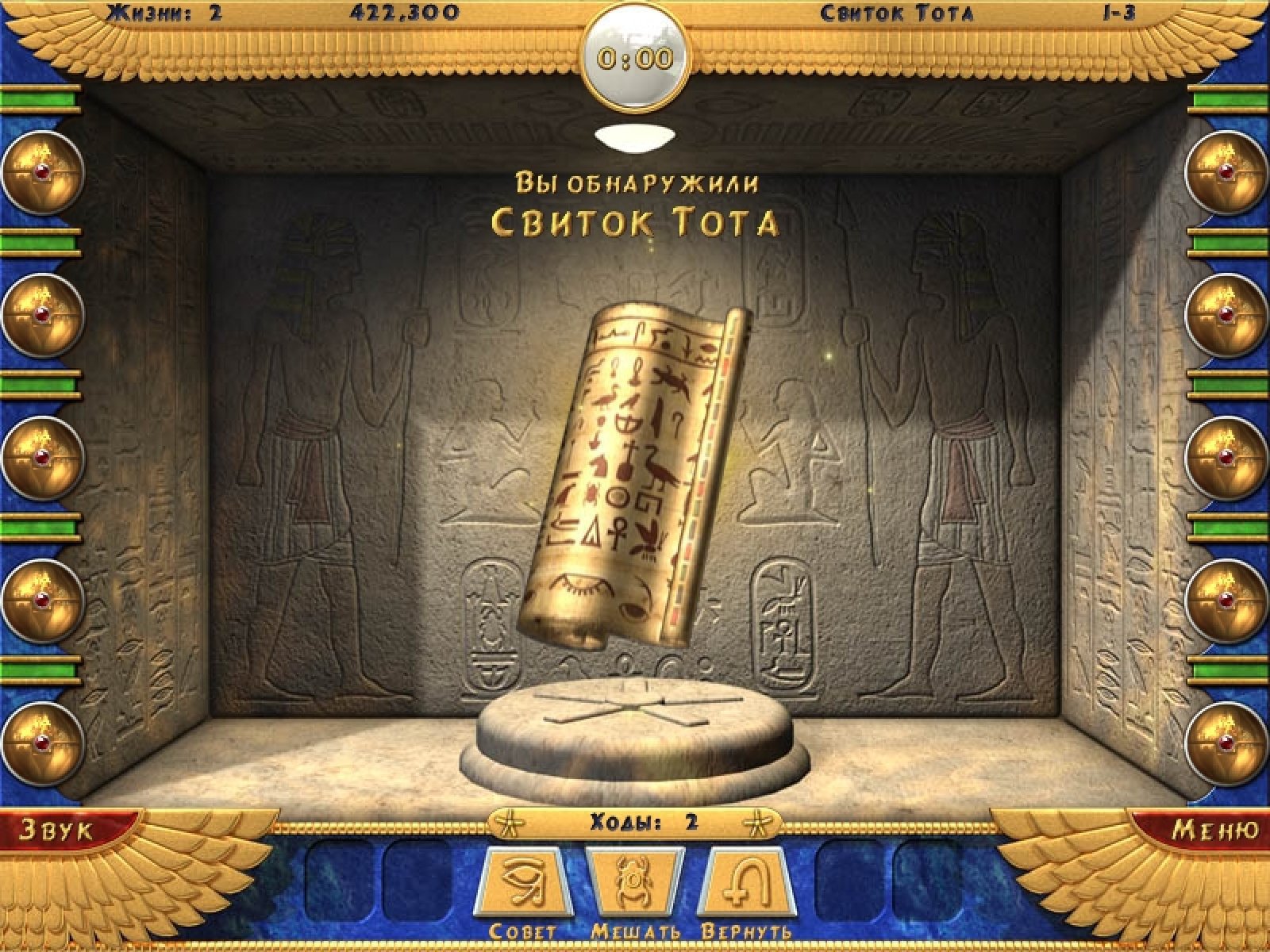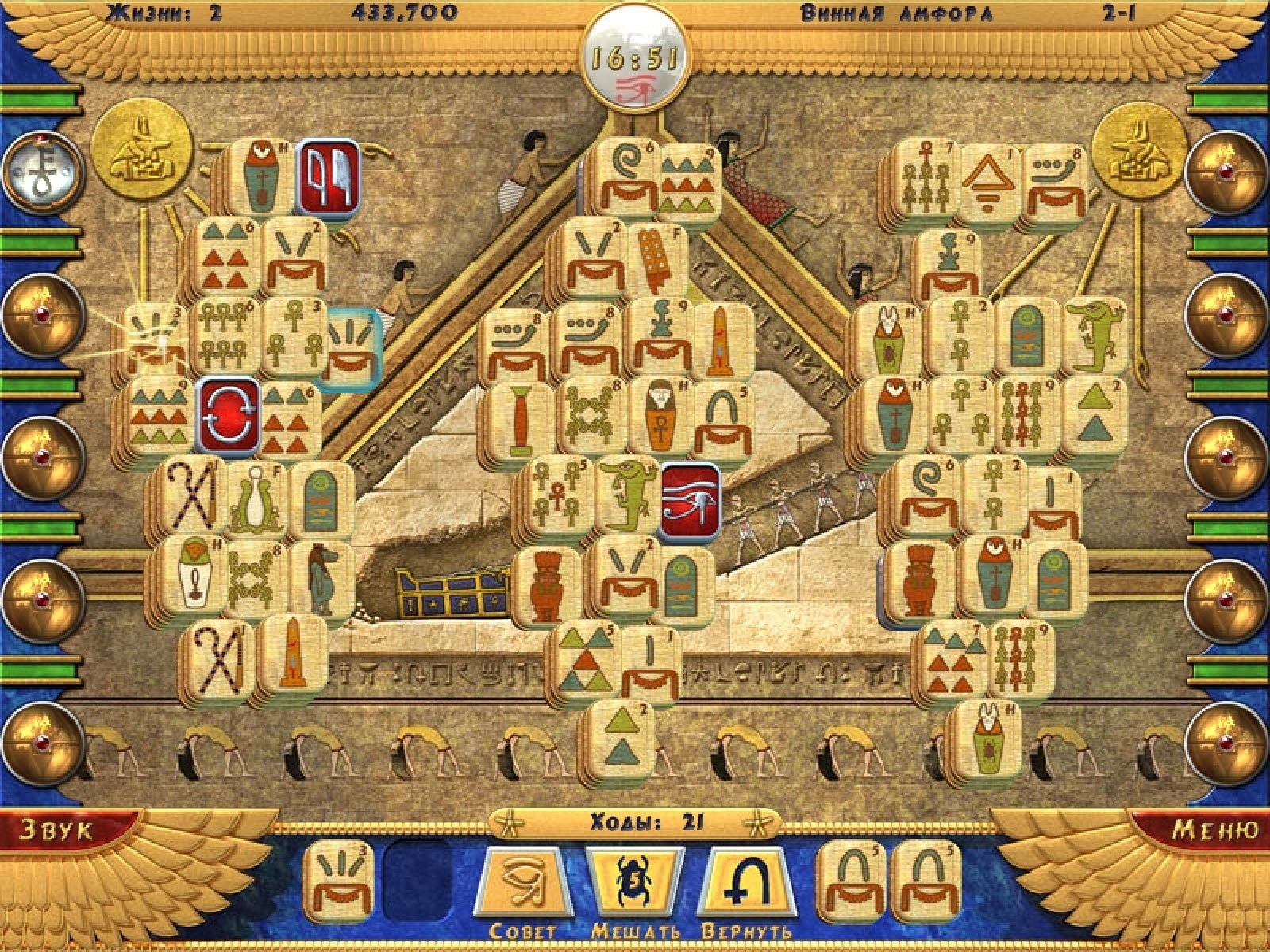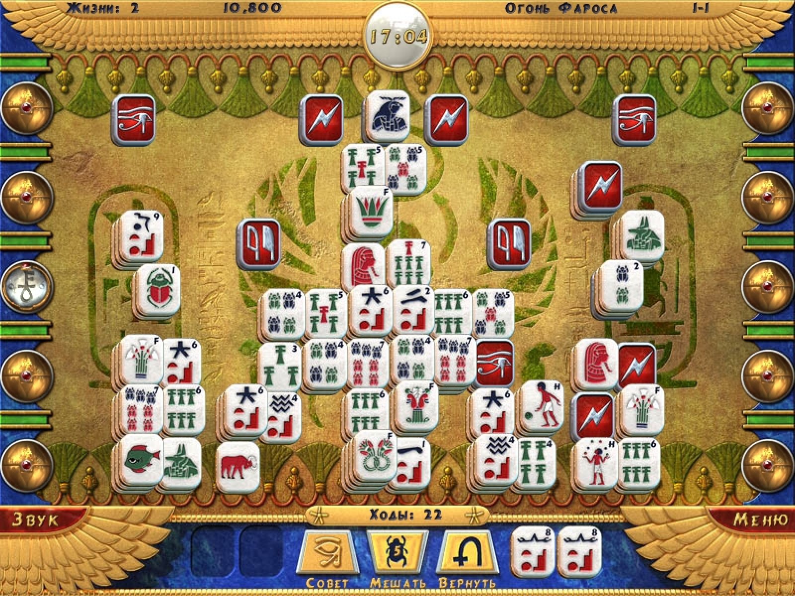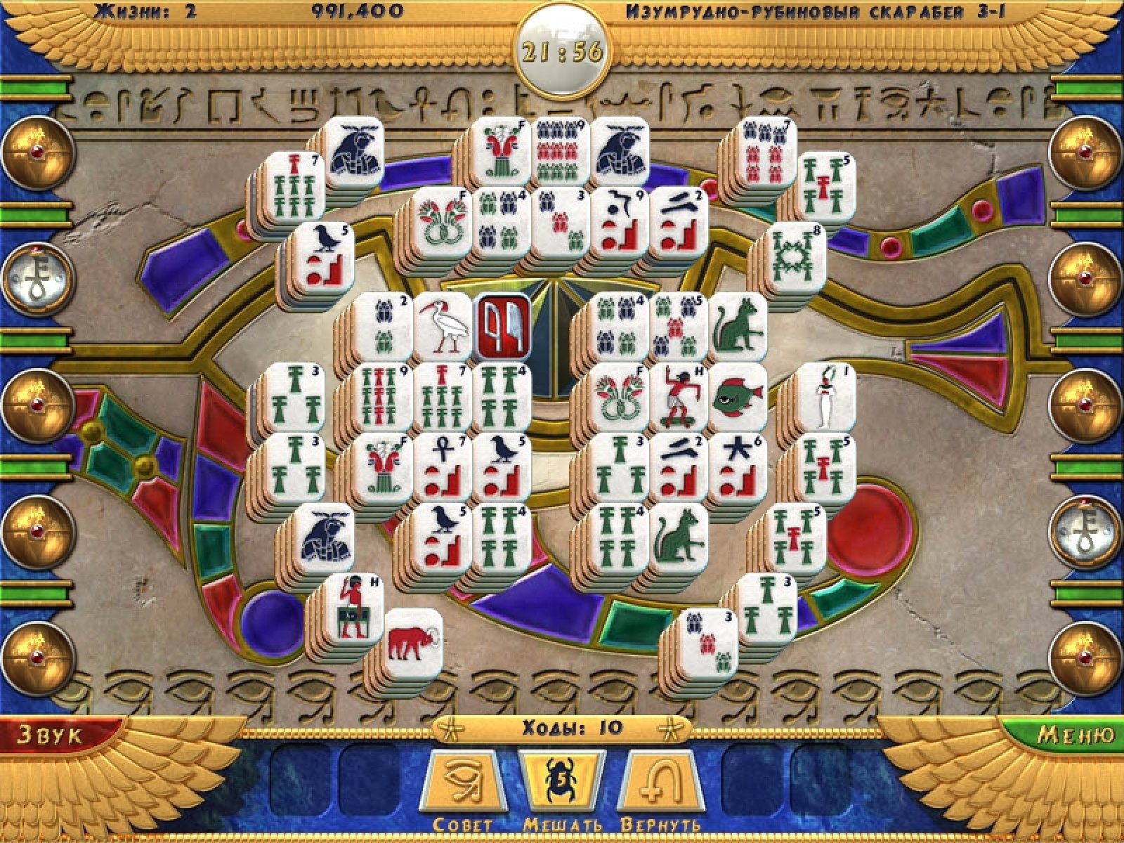 Возвращение знаменитой серии Луксор! На этот раз не будет стрельбы разноцветными шариками, собирания призов. Эта игра более медитативная, расслабляющая, помогающая познать суть мира. Правила игры, как в классическом маджонге, очень просты. Вам нужно убирать попарно свободные камешки с рисунками с игрового поля. Специальные магические камни призваны облегчить вам эту задачу. Для прохождения уровня совершенно не обязательно собрать все камни с игрового поля. Достаточно найти и совместить пару камней с изображением священного символа. Три режима игры и три уровня сложности в каждом из них позволят любому, даже начинающему, игроку подобрать для себя оптимальный ежим для расслабления и настраивания на позитивный лад.
