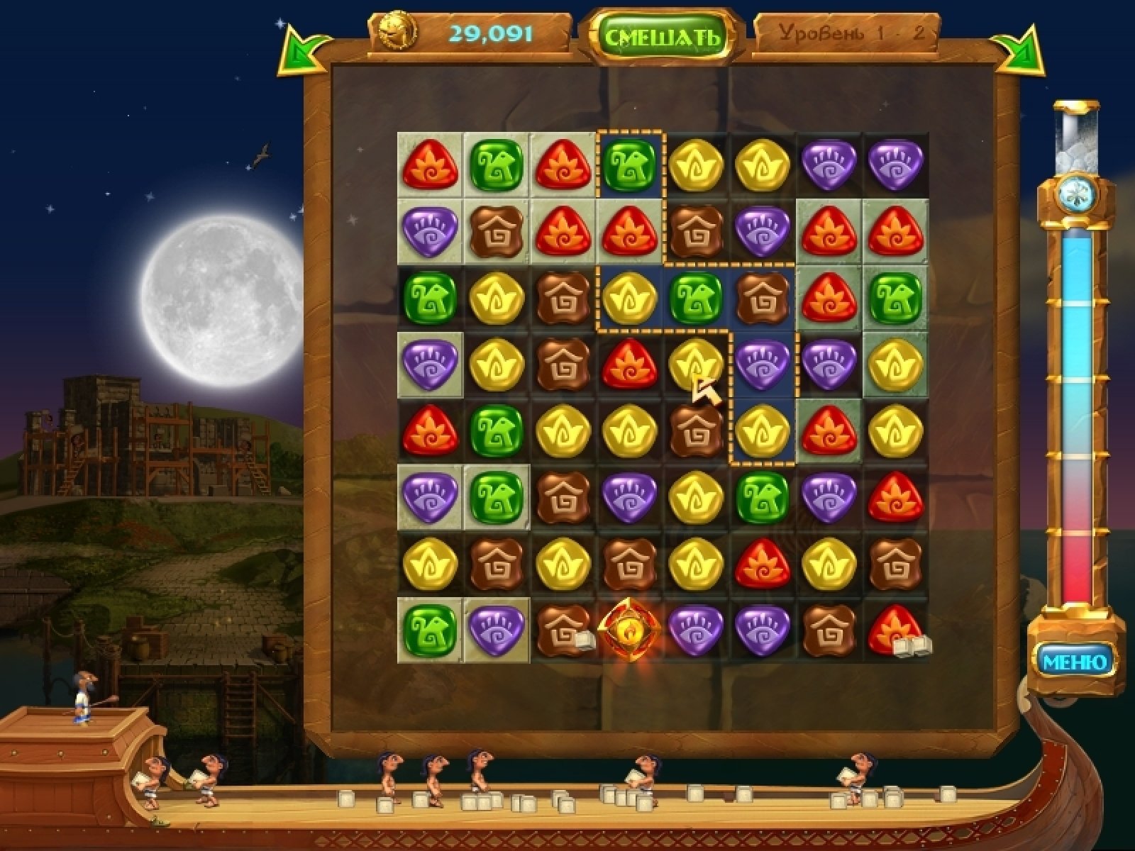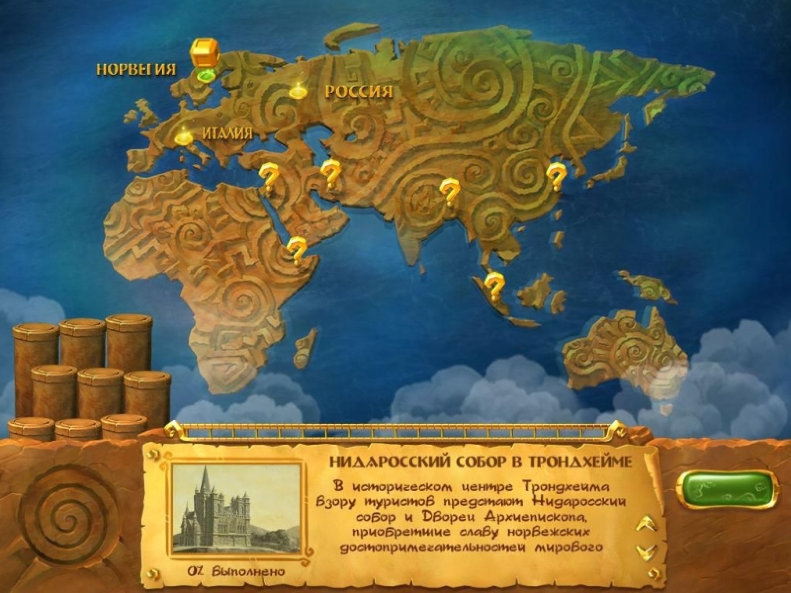 Продолжение увлекательной игры жанра "три в ряд". В ней вам предстоит восстанавливать памятники архитектуры. Разбивая каменные плитки на игровом поле, вы добываете строительные материалы для работников. И когда все плитки будут разбиты, на игровом поле появляется большой камень, который нужно провести по лабиринту до определенного места. Яркая и увлекательная игра "7 Чудес. Сокровища семи" - продолжение уже знакомой вам игры "7 Чудес". Но, как и у любого продолжения, у этой игры есть большое отличие. Теперь игровое поле можно вращать, что заметно упрощает прохождение уровней, а в отдельных случаях является единственно возможным вариантом.