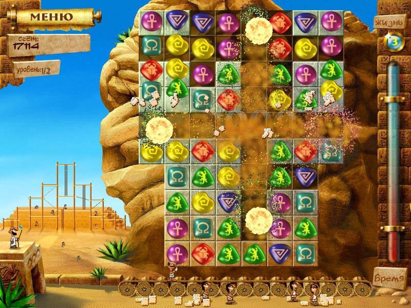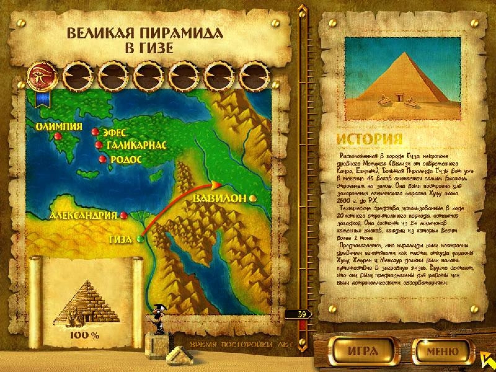 Увлекательная игра жанра "собери тройку" отправит вас в увлекательное путешествие по местам древних цивилизаций. Вам предстоит восстанавливать разрушенные древние постройки. Разбивайте каменные клетки, собирая на них по три одинаковые фишки. Из этих блоков забавные строители и будут восстанавливать Семь Чудес древнего мира. Веселая игра "7 Чудес" - отличное времяпрепровождение после тяжелого трудового дня. Простые правила, яркие рисунки, расслабляющая музыка помогут отвлечься от повседневных забот и погрузиться в мир увлекательной истории Древнего мира. Разбивайте плитки, используйте бонусы для более быстрого прохождения уровней. Если ваша цель ясна и воля тверда, ваши глаза увидят то, чего никто до сих пор не видел - все Семь Чудес Древнего мира.