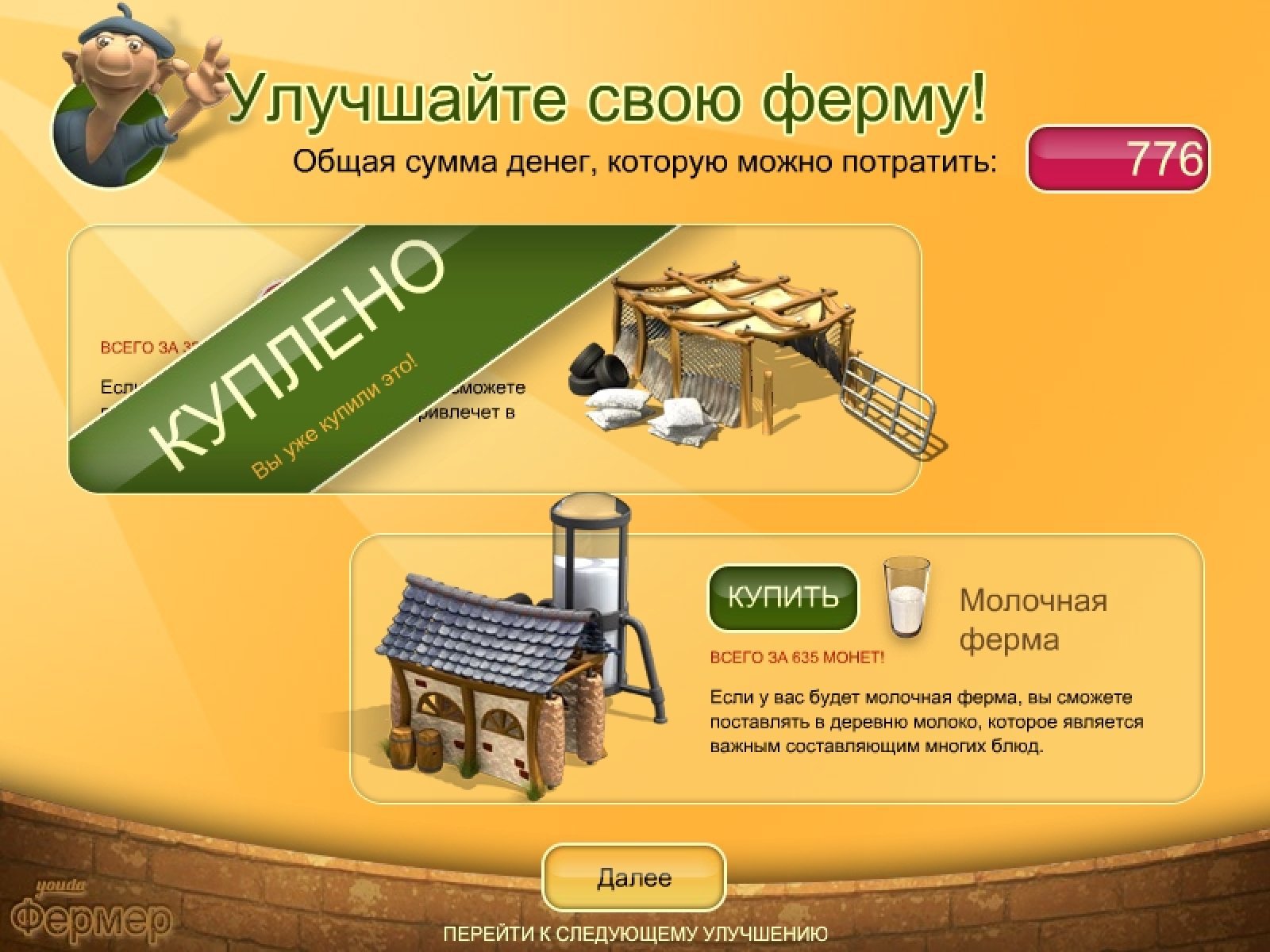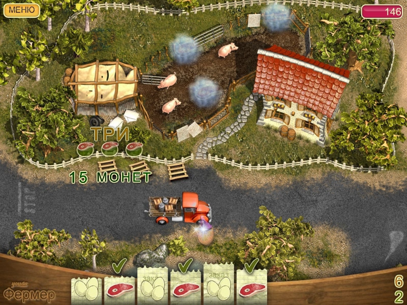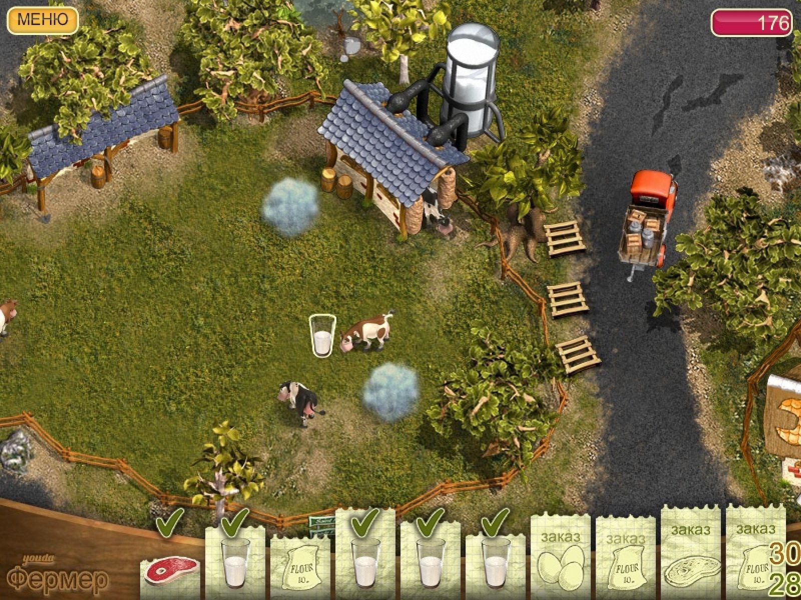 Попробуйте себя в увлекательном фермерском бизнесе. Ваша ферма производит различные продукты, которые очень востребованы в соседней деревне. Начните со сбора и доставки кукурузной муки. Из нее в деревне пекут отличные булочки. На вырученные от доставки деньги покупайте улучшения своей фермы - курятник, свинарник и многое другое. Одновременно с ростом вашей фермы потребности деревни в ваших продуктах тоже увеличатся, а ваша задача будет вовремя доставлять товар туда, где он необходим. Процесс игры в симуляторе фермы "Youda Фермер" делится на два этапа. Вначале вам нужно собрать товар с вашей фермы. Для этого придется много поездить от кукурузного поля до курятника, от грядок с помидорами до свинарника. Главное - успеть собрать все заказы. После этого собранные товары нужно будет отвезти в деревню, где уже ждут продукты, чтобы приготовить из них множество всяких вкусных блюд. За быстро привезенные продукты владельцы ресторанчиков заплатят вам хорошие деньги, на которые вы будете совершенствовать свою ферму. Увлекательный игровой процесс симулятора "Youda Фермер" на долгое время затянет не только почитателей этого популярного жанра, но и тех, кто только начинает осваивать этот жанр казуальных игр. Забавные персонажи, всевозможные задания и разнообразие действий подарят вам много часов приятного времяпрепровождения.