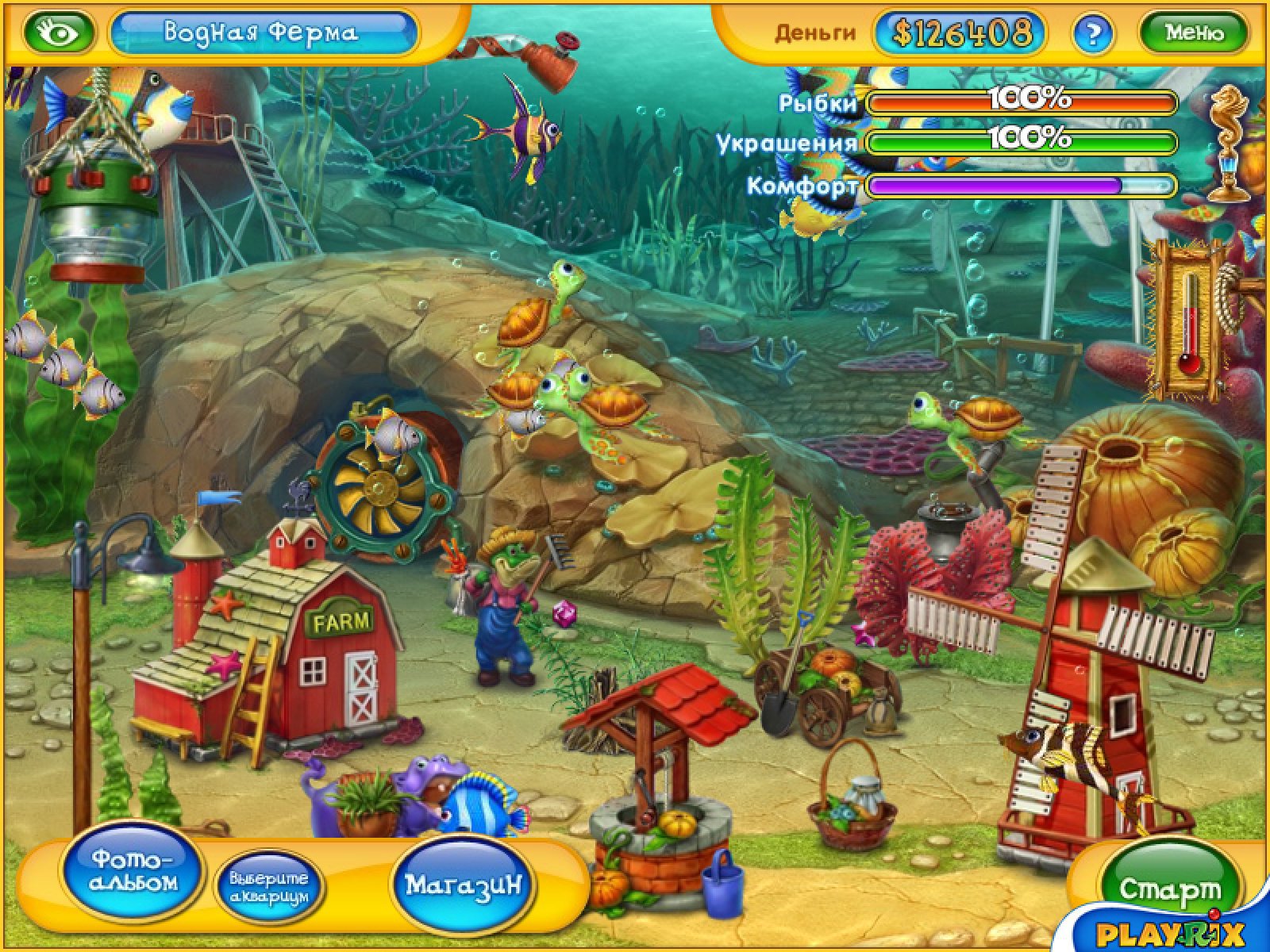Вниманию поклонников игр серии Фишдом. Вас ждет увлекательное продолжение оригинальной игры в жанре "три в ряд" "Фишдом 2". Собирайте комбинации по три и более фишек и зарабатывайте деньги для создания аквариума вашей мечты. Используйте все свое воображение, чтобы создать и украсить четыре тематических аквариума. Почувствуйте себя создателем фермы, путешественником во времени, посетившим Древний Египет, или властелином подводного царства. Вы можете приобрести дополнительные аквариумы, чтобы усовершенствовать дизайнерские способности и получить еще больше удовольствия от общения с виртуальными любимцами. Исследуйте прекрасный и таинственный морской мир и узнайте интересные факты о его обитателях в подробной Фишипедии. Установите красочные обои Фишдом и расслабьтесь, любуясь на удивительный скринсейвер под звуки оригинальных саундтреков Фишдом. Фотографируйте свои морские владения и отправляйте открытки друзьям. Будьте готовы — вас ждет захватывающее путешествие в подводный мир. Отличное развлечение, предложенное в игре "Фишдом 2", понравится всем поклонникам этой серии иг
