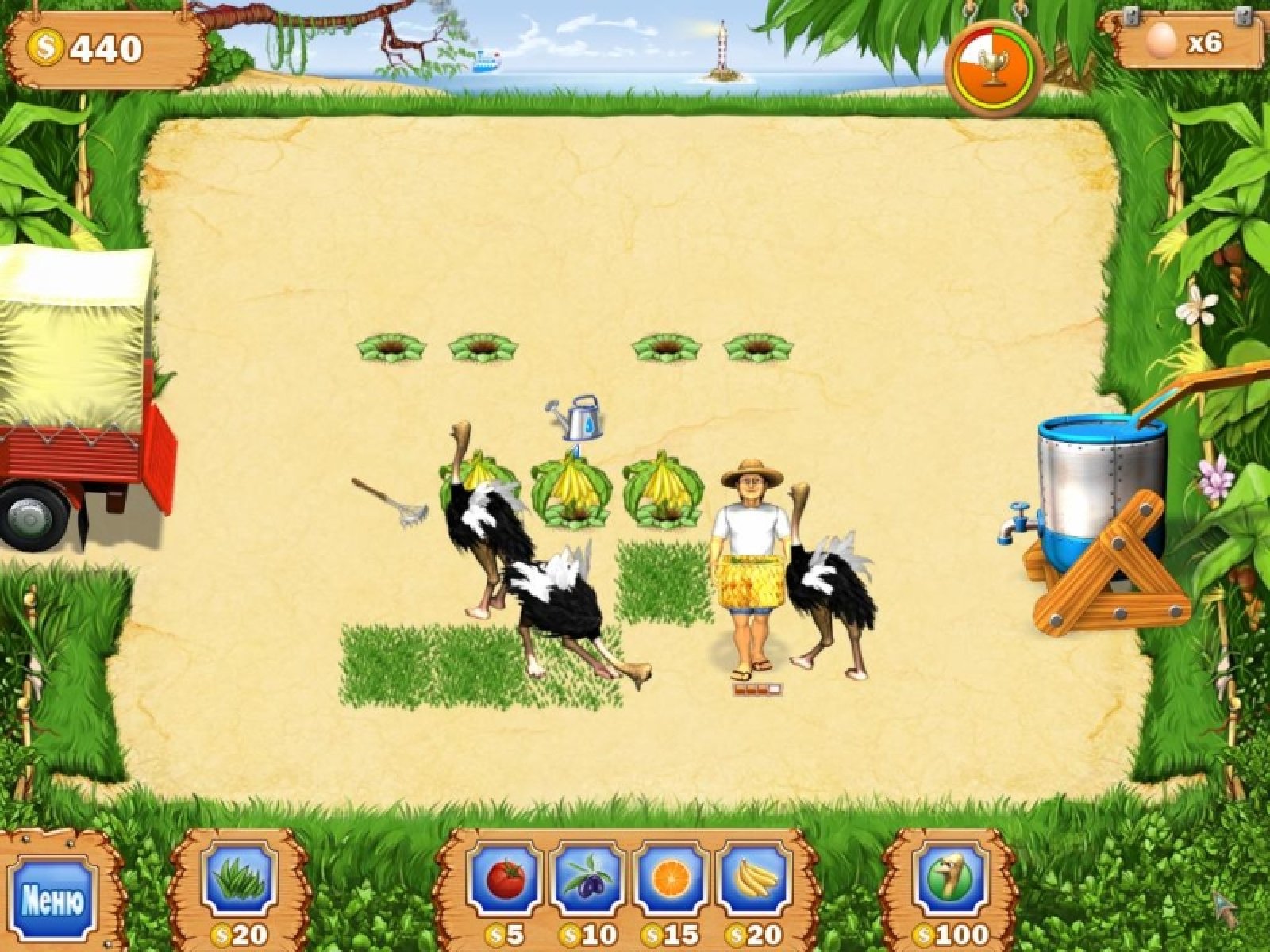 Тропический архипелаг Гринфилд попал под удар стихии. Ураган уничтожил все посевы пшеницы и кукурузы, и теперь аборигенам грозит голод. Вам, как талантливому ученому, предстоит спасти несчастных островитян. Ведь вы только что открыли секрет быстрого роста всевозможных растений. В фермерском симуляторе "Тропическая ферма", помимо огородничества и садоводства, вы займетесь разведением домашнего скота и птицы, будете производить муку, апельсиновый сок и газировку, строить новые дома, школы, фабрики, супермаркеты и зоомагазины. Тот, кто быстрее справится с поставленным заданием, получит серебряные и золотые кубки, дополнительные средства для развития хозяйства. Также в награду вы получите очки опыта, которые можно обменять на новые умения и навыки. Увлекательная игра "Тропическая ферма" понравится всем поклонникам игр, связанных с фермами, и других симуляторов деревенского хозяйства. Пройдите все уровни и отстройте тропический рай заново!