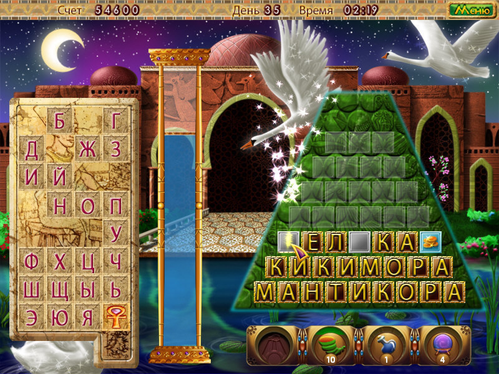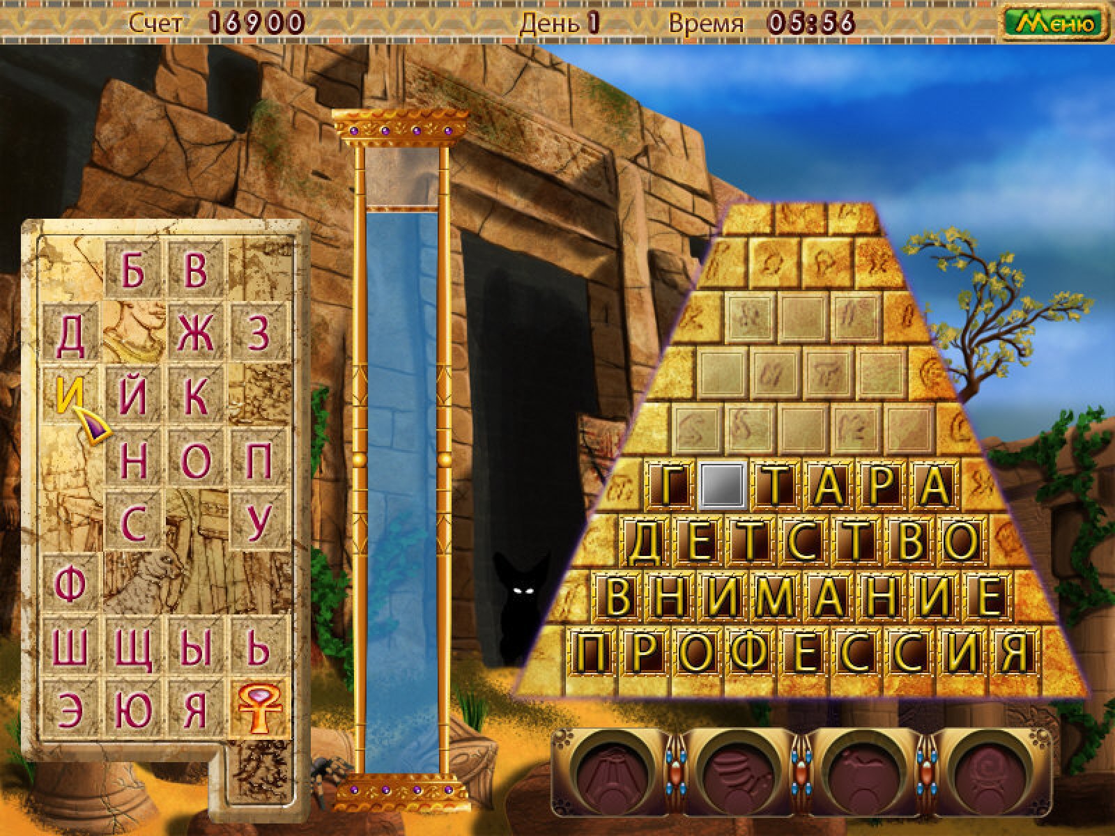 Группа исследователей старины после долгих скитаний в недрах пустыни наткнулась на древний город, полный загадок и тайн... Чтобы открыть секреты древнего города, помогите отважным исследователям разгадать интригующие загадки со словами. Игра "Удивительные пирамиды" - это словесная головоломка, которая откроет вам мир фантастических приключений. Артефакты, пирамиды, древние города, папирусы, загадки, потрясающие находки, несметные сокровища. И, конечно же, опасности, скрывающиеся за каждым поворотом истории. Ваша задача - отгадывать слова, выбирая буквы с помощью мышки. Поглядывайте на сосуд, в котором помещена жизненная энергия, без нее ваше путешествие закончится. Старайтесь играть безупречно, получая бонусы в награду. А если рискнете и угадаете слово, сэкономите энергию и получите дополнительные очки. В игре "Удивительные пирамиды" два игровых режима. В режиме "Приключение" вы возглавите группу ученых на пути к открытию секретов древнего города. А в режиме "Быстрый" ваша задача открыть одну пирамиду, используя минимальное количество ходов. Приключения в египетских пирамидах начинаются!