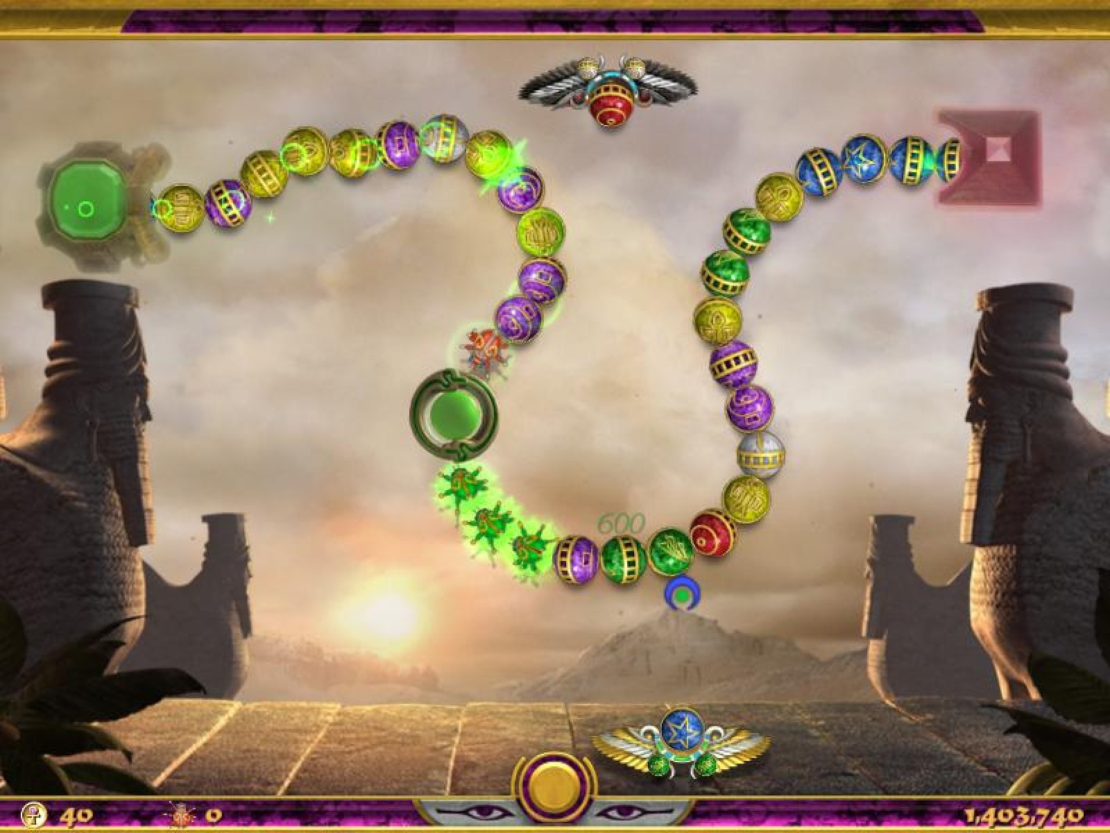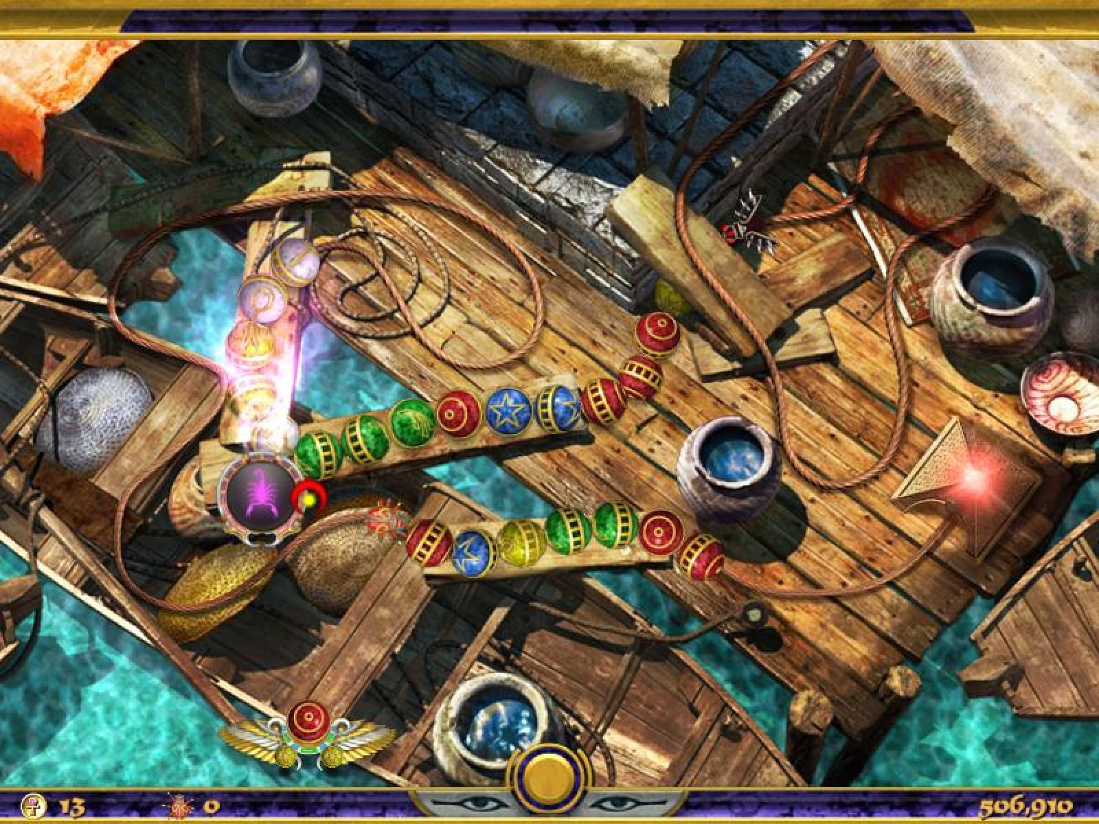 Великолепная игра "Луксор 4. Тайна загробной жизни" продолжает победное шествие мирового хита. На этот раз вам предстоит настоящее приключение. Цель ваших действий - найти украденные реликвии великой египетской царицы. Окунитесь в таинственное путешествие по Египту и за его пределами. Вновь, управляя крылатой катапультой и составляя звенья из трёх и более цветных камней, вы превращаете их в магическую пыль. При наиболее удачных ходах кроме магической пыли из одноцветных цепочек будут выпадать волшебные бонусы. Собирайте как можно больше таких бонусов - они помогут вам в поисках сокровищ. Найдите бесценные артефакты и узнайте тайну великой египетской царицы. Отличная игра "Луксор 4. Тайна загробной жизни" порадует всех любителей этой всемирно известной игры новыми, великолепно прорисованными, уровнями, отличным звуковым сопровождением и уникальной атмосферой Древнего Египта. Окунитесь с головой в приключения и вы не останетесь разочарованными.