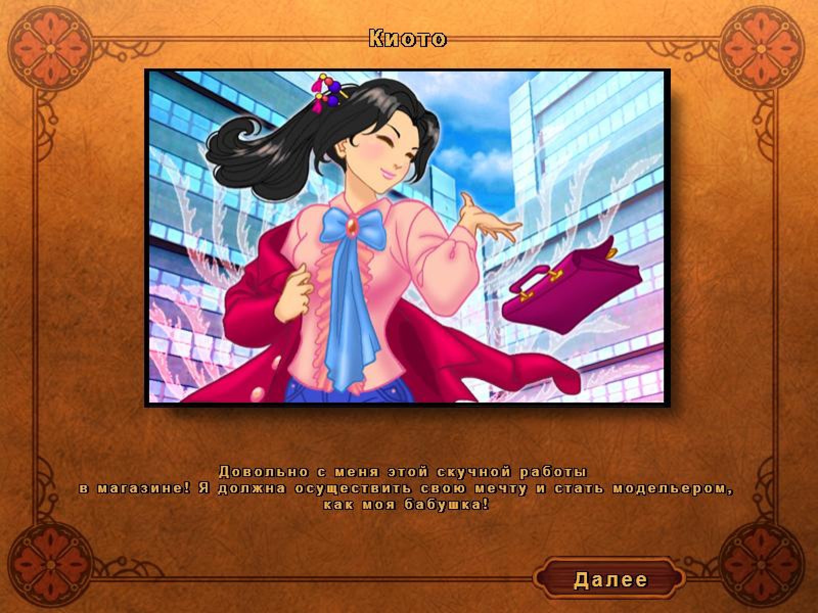 Как стать знаменитым? Достаточно иметь три вещи: мечту, цель и упорство. У юной девушки из Японии была мечта стать великим модельером, поэтому она поставила себе цель – узнать все о традициях азиатской моды, чтобы создать что-то уникальное. А вот хватит ли ей упорства, чтобы достичь желаемого, – решать уже исключительно от вам! «Невософт» с удовольствием представляет игру «Мода в стиле Дзен»! От мечты до реальности – долгий путь, который пролегает через всю Азию. Не вставая со стула, вместе с главной героиней, вы побываете во всех восточных столицах моды, чтобы усвоить уроки предков и роскошь культурного наследия. Вас ждут 12 разных городов Китая, Кореи, Японии и Таиланда - вы увидите традиционные наряды и современные стили одежды этих мест. Восток, как известно, – дело тонкое, поэтому одной логикой его не возьмешь. Чтобы выиграть, придется развивать свою внутреннюю дзен-силу, которая будет увеличиваться по мере увеличения вашей коллекции дизайнерской одежды. Зарабатывать деньги на это вы будете, собирая цепочки из цветов на фоне потрясающе красивых анимированных пейзажей. Вы сможете самостоятельно комбинировать разные модели одежды, чтобы создать собственный неповторимый стиль и получить дополнительные возможности. За достижения на игровом поле вы также будете получать трофеи - талисманы фен-шуя, которые не только помогут добиться лучших результатов, но и окажут благотворное воздействие на тот дом, где будет находиться компьютер с игрой «Мода в стиле Дзен». Вас ожидает 96 уровней, каждый из которых можно играть в двух различных режимах – на время и просто для удовольствия, медитативно отключаясь от любых проблем. Предупреждаем: возможно наступление озарения! Игровой процесс затягивает и расслабляет всех без исключения, но истинное удовольствие смогут получить почитатели моды и ценители красоты, ведь в игре доступно 108 разных моделей одежды для создания более тысячи комбинаций! Впервые в России загадочная и красивая, таящая в себе множество тайн и загадок – Азия и ее «Мода в стиле Дзен»! P.S. Представительницы прекрасного пола, которые в детстве любили вырезать из бумаги одежду и одевать в нее бумажных барышень, отдельно оценят процесс подборки туалетов для главной героини.
