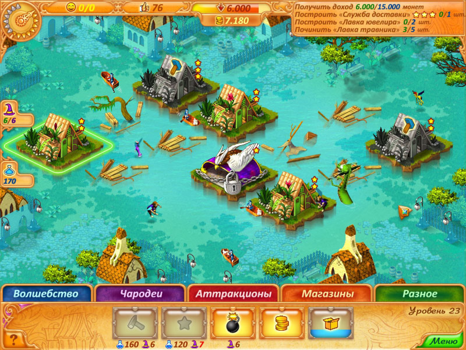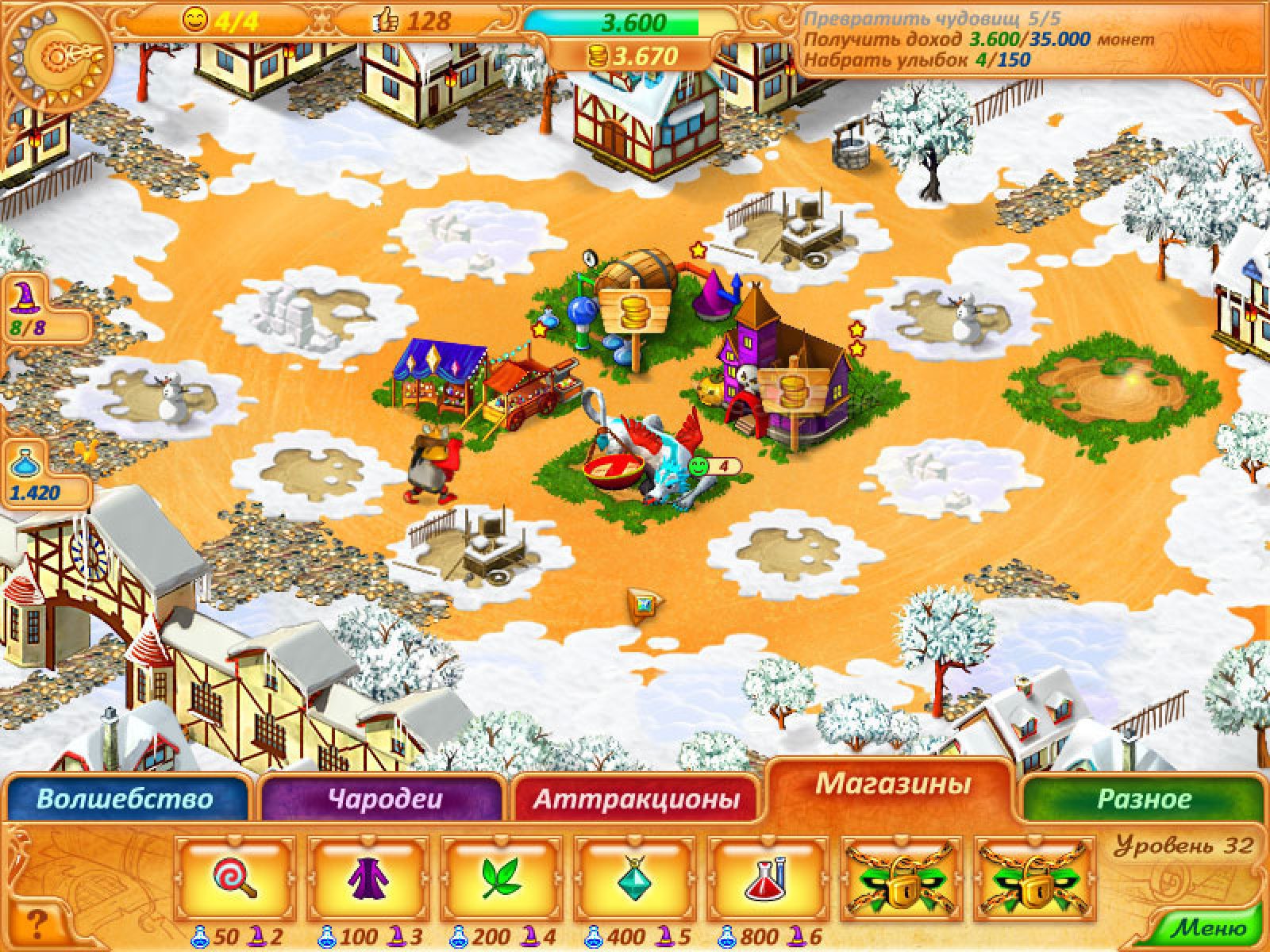 Кто из нас не мечтал стать героем какой-нибудь волшебной страны? Но одной мечты недостаточно - сначала надо найти эту волшебную страну, а потом мечту сделать явью! Девушке с загадочным именем Эбигайл повезло: ей в руки случайно попала красивая старинная книга, которая незаметно перенесла ее в другой мир. Но тут выяснилось – чтобы вернуться домой, надо зарядить медальон, причем сделать это можно, только восстановив разрушенное королевство. Ничего себе задачка для девушки, которую прекрасный молодой человек обещал угостить кофе, если ей просто понравится книга? Совсем без денег, с единственным другом, которым становится говорящая летучая мышь, отважная Эбигайл отправляется в путь… Ее главная задача - восстановить ярмарки, разрушенные во время нашествия чудовищ, и вернуть миру волшебную защиту. О том, куда она исчезла, а заодно, почему именно в ее руках оказалась судьба волшебной страны, Эбигайл сможет узнать только в самом конце. «Моя бабушка учила меня никогда не сдаваться!» - девиз главной героини придется усвоить для себя всем игрокам «Эбигайл и Королевство ярмарок». Студия «Невософт-Бриз» представляет игру в жанре тайм-менеджмента с элементами экономической стратегии. В игре "Эбигайл и Королевство ярмарок" Вам придется не только строить, но и планировать, рассчитывать, рисковать – в общем, трудиться, не покладая рук, как настоящим бизнесменам. Универсальной рабочей силой будут маги (все-таки это волшебная страна!) – именно с их помощью вы сможете возводить аттракционы, магазины и особые постройки, облегчающие игровой процесс. Помимо денег придется зарабатывать улыбки и рейтинг, без которых победа будет невозможна. Ну и главное, вы сможете сделать людей счастливыми, спасти целый мир и найти настоящую любовь - а это под силу только настоящим героям! Из особенностей игры «Эбигайл и Королевство ярмарок» можно отметить превосходную графику и настоящий мультфильм, связывающий все части воедино, а так же голоса профессиональных актеров и оригинальное музыкальное сопровождение. Вы сможете в этом убедиться на протяжении пятидесяти игровых уровней и десяти бонус-уровней. Так же в игре есть два дополнительных игровых режима, огромное количество уникальных построек, которые вам придется возводить на протяжении всей игры. Мы считаем, что вера в волшебство делает наш мир чуточку лучше. Знайте, что чудеса всегда рядом! Ближе, чем может показаться…