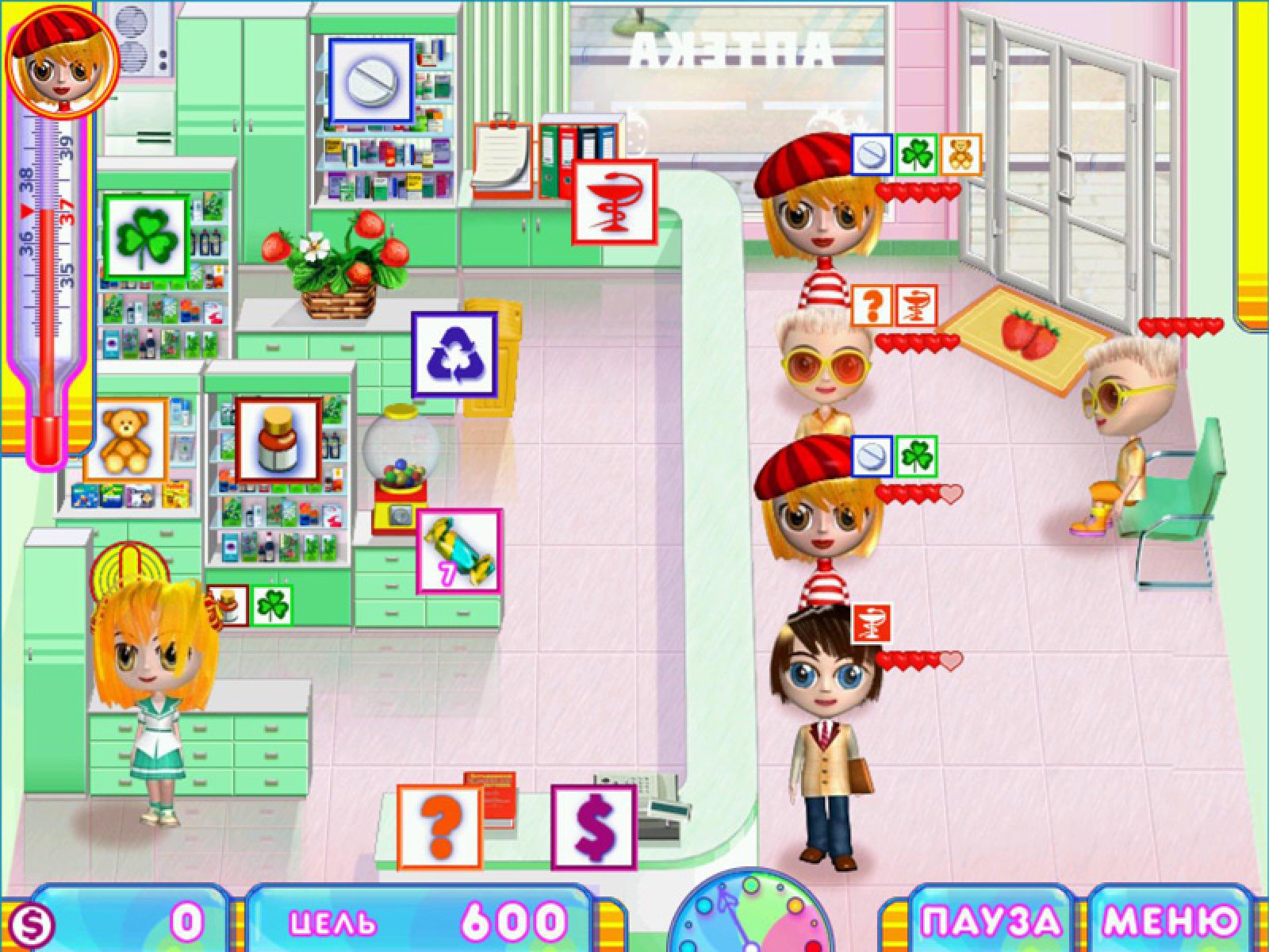 Познакомьтесь с нашей героиней Лизой. Она только что получила диплом фармацевта и жаждет начать работать по специальности. И вот, первое предложение. Небольшой аптеке, в которой дела идут не самым лучшим образом, срочно нужен талантливый работник. И Лиза, не долго думая, смело берется за дело. А вам предстоит помочь ей. Увлекательный симулятор для детей «Аптечный переполох» понравится нашим маленьким игрокам. Вам предстоит четко и быстро обслуживать посетителей: выполнять заказы, консультировать, готовить лекарства по рецептам. Модернизируйте помещение и повышайте лояльность посетителей. И в результате у вас будет своя сеть аптек. Более пятидесяти красочных уровней игры «Аптечный переполох» не дадут вам соскучиться. Стильное оформление игры, забавные персонажи с разными характерами, красочные эффекты – все это создает неповторимую атмосферу для отдыха дома или во время перерывов на работе.