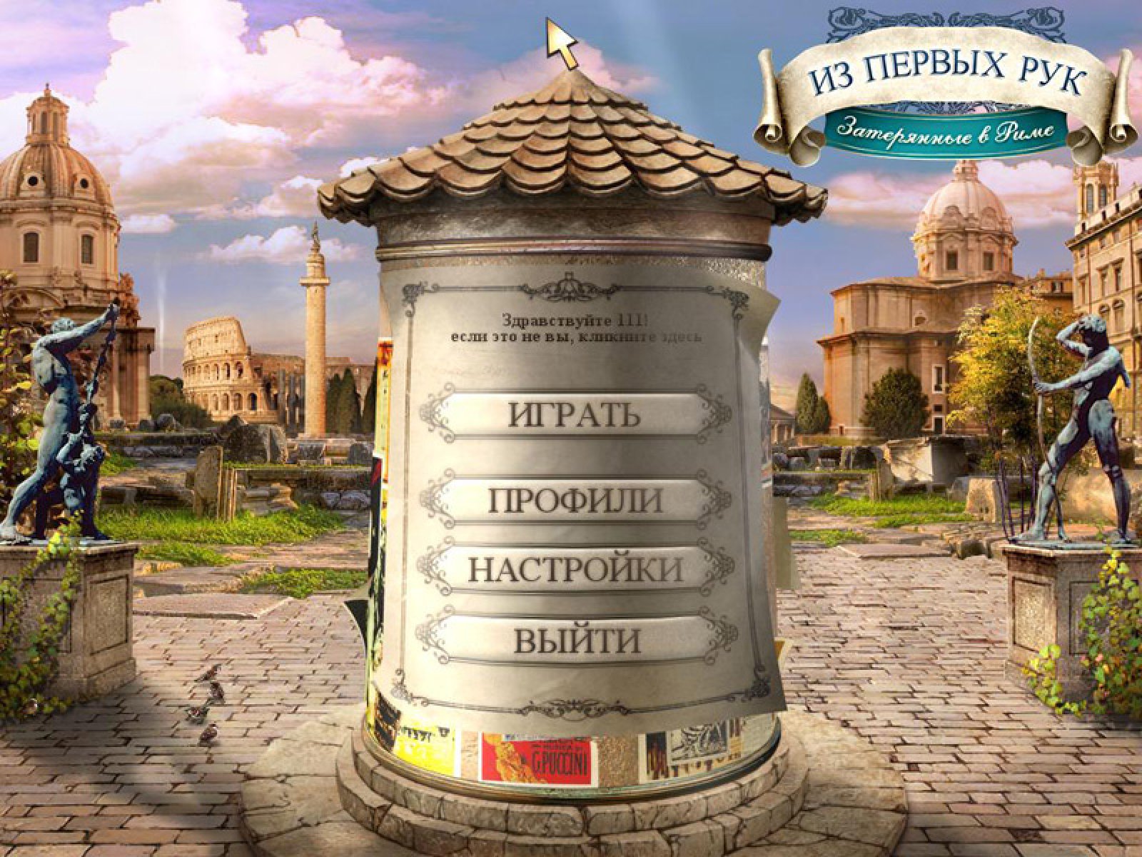 Италию захватывает лотерейная лихорадка: все пытаются выиграть самый большой приз в истории Италии. Итальянская женатая пара покупает всего один лотерейный билет, который оказывается выигрышным. Но проходят дни, а они так и не появляются, чтобы забрать свои деньги. У всех на устах вопрос: кто же эти счастливчики и когда они придут за своим выигрышем? Инспектор Франческа ди Порта, настоящий профессионал в своем деле, возвращается в античный город и расследует это дело. Ее ожидает загадочное приключение, которое по узким римским улочкам приведет ее в Колизей. Улики указывают на Леонардо да Винчи – но какое отношение гений Ренессанса мог иметь к исчезновению семейной пары из нашего времени? Вам предстоит выяснить это в игре “Из первых рук. Затерянные в Риме” Отличный квест с элементами жанра «я ищу» продолжает серию детективных приключений отважного инспектора ди Порта. Разгадайте тайну розыгрыша огромного приза, выясните, как к этому причастны знаменитые персонажи далеких времен. Используйте весь свой опыт и смекалку, и только тогда разгадка откроется вам.