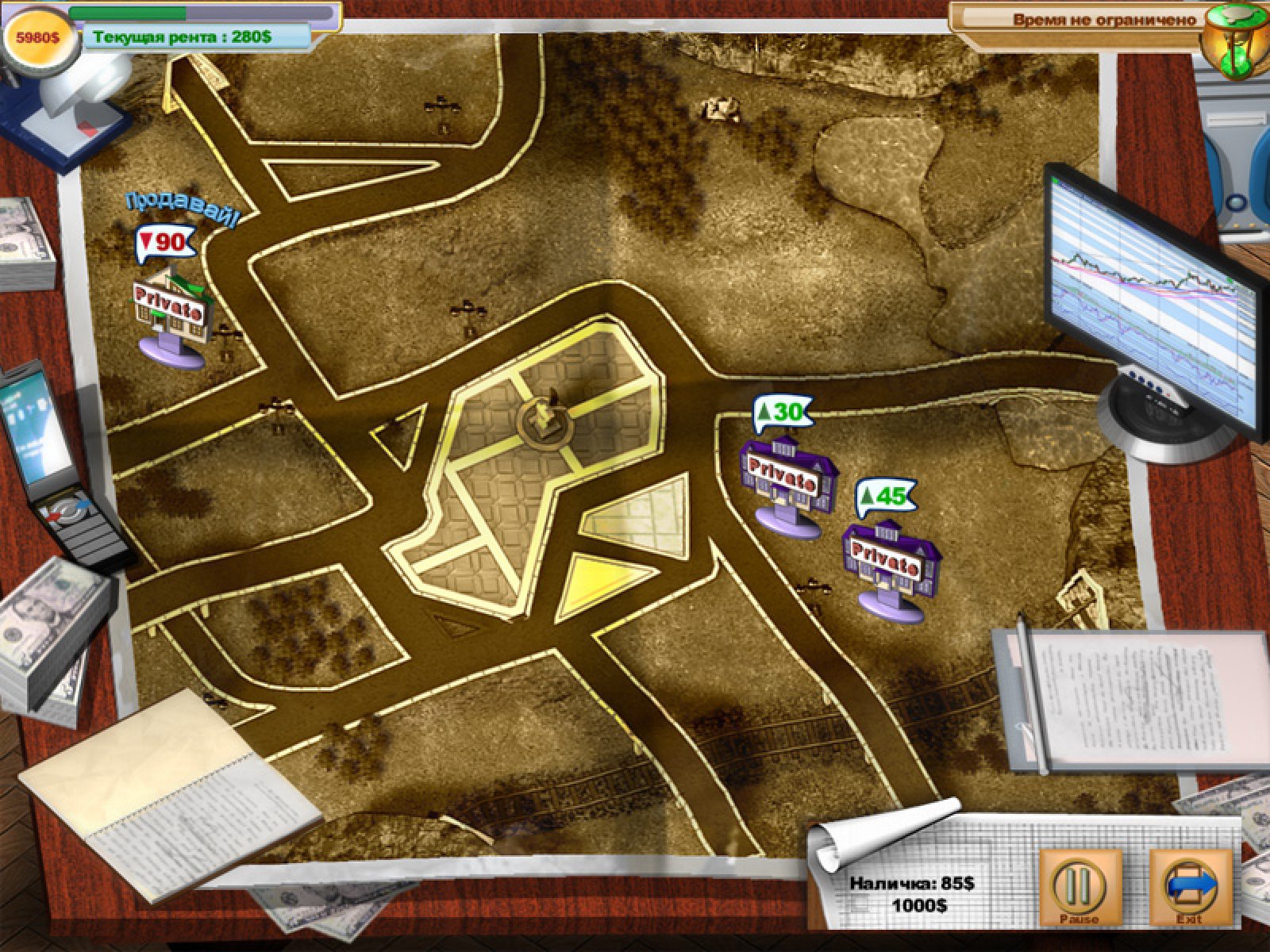 Испытайте свои силы на рынке недвижимости. Входя в этот бизнес не считайте, будто вам все принесут на тарелочке с голубой каёмочкой. Конкуренция в этой сфере очень серьезна. Вам предстоит освоить азы строительного бизнеса, а затем с головой окунуться в суровую борьбу за место под солнцем. Но вы просто обязаны стать первым и доказать, что этот город ваш. Отличный симулятор строительного бизнеса "Рейдеры" даст вам возможность ощутить себя главой строительной компании. Вы узнаете, что вскоре маленький городок станет крупным торговым и развлекательным городом. Вы только что стали главой компании и у вас еще не достаточно опыта в таких делах. Поэтому вам предстоит потренироваться на окраинах города. А когда вы пройдете подготовительный этап, и начнете завоевывать все новые и новые строительные площадки города, сражаясь с конкурентами, вы поймете, как трудно быть главой большой строительной корпорации. Прекрасный симулятор «Рейдеры» - это отличный способ расслабиться после трудового дня. Стройте отели, магазины, парковки, приобретайте новые площадки под строительство зданий. Зарабатывайте деньги на строительной бирже, покупая здания по минимальной цене и продавая по максимальной. С помощью этой игры вы станете настоящей акулой строительного бизнеса.