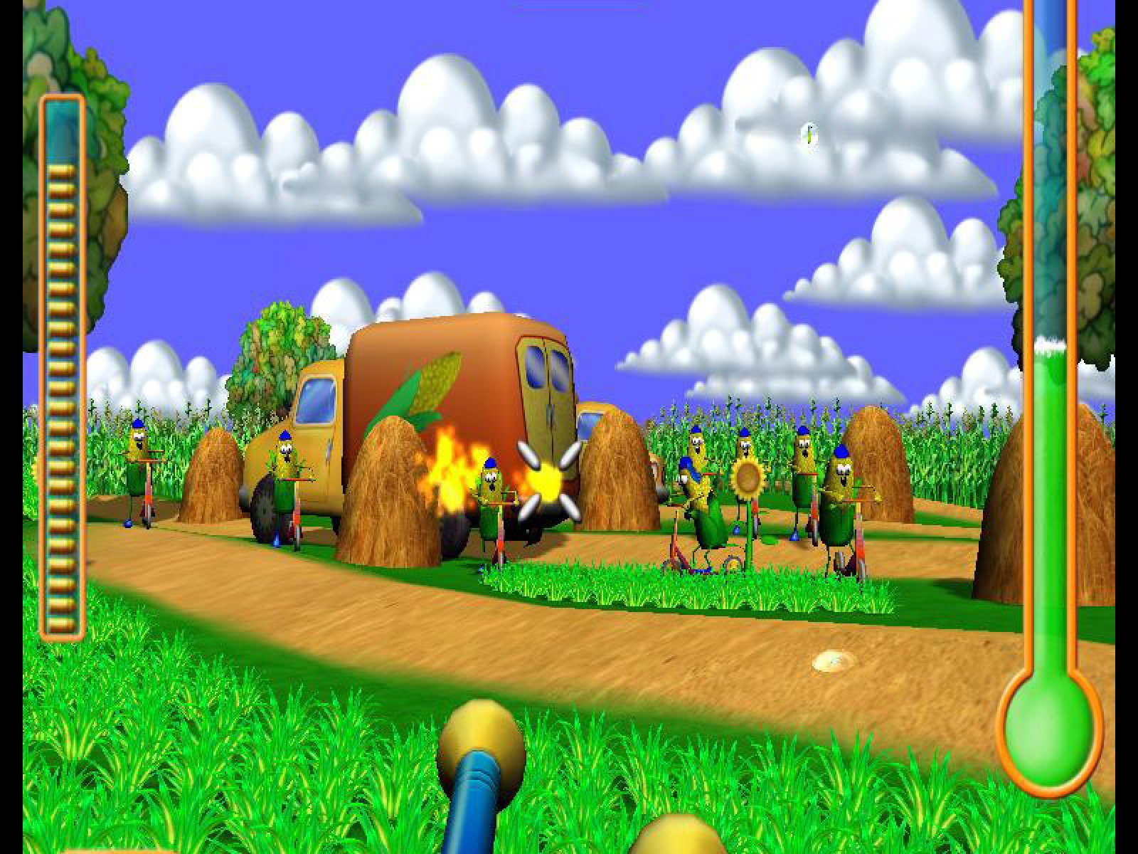 Действия этой игры разворачиваются в недалеком будущем на территории вымышленной страны. Проведя очередной эксперимент с генетической модификацией, ученые получили суперформулу для значительного увеличения размеров и ускорения роста овощей и фруктов. Однако полученные плоды начали неожиданно мутировать, научились самостоятельно передвигаться и мыслить. И в какой-то момент они решили отомстить человечеству… Веселая и увлекательная игра «Джусер» представляет собой виртуальный 3D-тир с видом от первого лица. С помощью пушки вам предстоит отражать атаки полчищ взбесившихся фруктов, овощей, кукурузы и прочей съедобной братии. Чтобы упростить прохождение уровней, собирайте бонусы, которые влетают их поверженных врагов. Простой, интуитивно понятный, веселый геймплей игры «Джусер» порадует всех любителей развлекательных игр. Мультяшные персонажи порадуют даже самых маленьких игроков. Остановите нашествие груш-боксеров, сумасшедших кукурузин на самокатах и других мутировавших огородных культур.