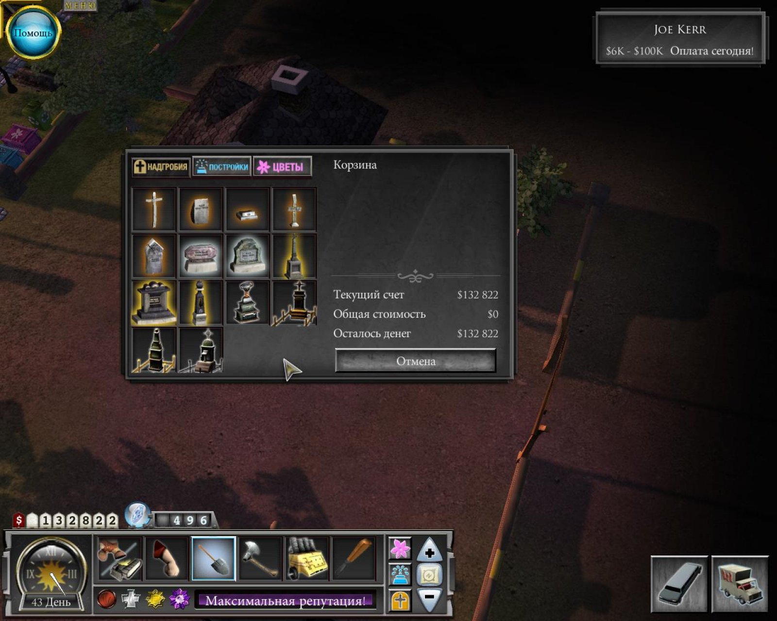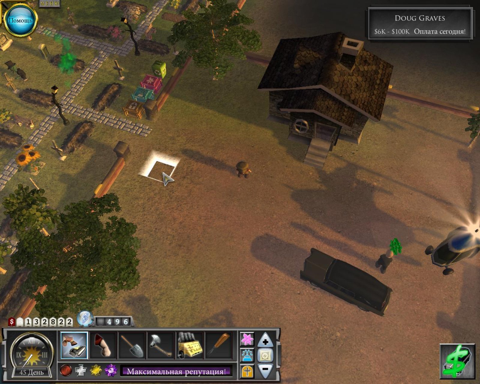 Представляем вам очень оригинальную игру в жанре тайм-менеджер. В ней вам предстоит помогать главному герою ухаживать за… своим кладбищем! Да-да, не удивляйтесь. Это тоже очень прибыльный бизнес. Тем более, если к вам обращаются родственники не только обычных граждан, но и богачей и знаменитостей. От того, как вы обустроите место последнего пристанища, зависит ваша прибыль. Оригинальная игра «Веселый могильщик» - это трехмерный тайм-менеджер, симулятор кладбища, как прибыльного дела. К вам, как к хозяину, обращаются родственники усопшего с просьбой похоронить его как можно пышнее и красивее. Вы должны подготовить место так, чтобы оно было максимально приближено к идеалу. Но тут главное не перестараться, ведь если место захоронения будет слишком шикарно, родственники просто не смогут заплатить нужную сумму. А это значит, что заказ будет для вас невыгоден. Немного мрачноватая, но все же очень интересная и красивая игра «Веселый могильщик» выполнена в жанрах тайм-менеджер и симулятор бизнеса. Трехмерная графика придает игре непередаваемый шарм. Она обязательно понравится всем любителям этих жанров, а так же тем, кто еще не играл в подобные игры.