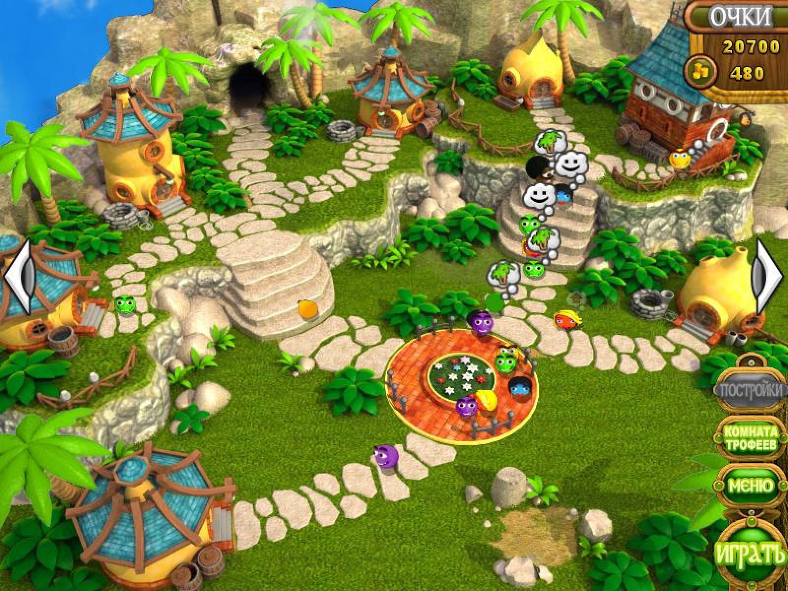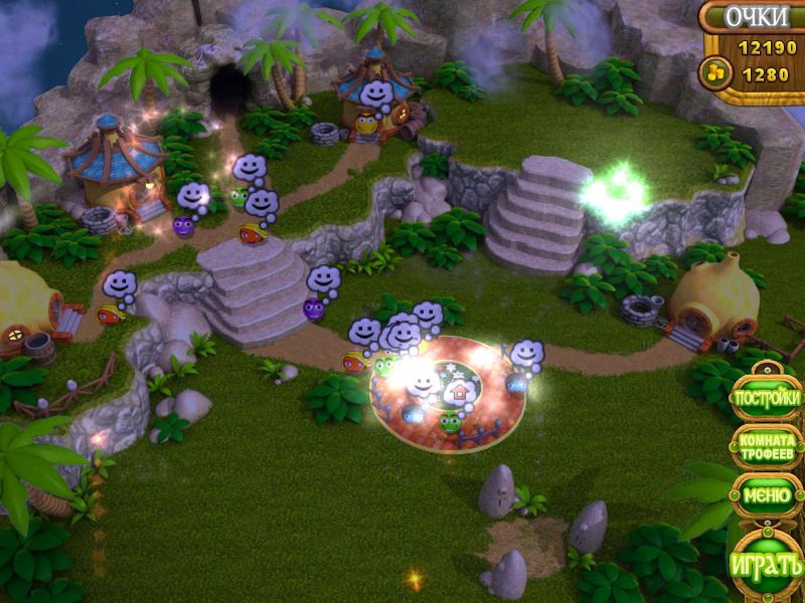 На одной сказочной планете давным-давно жили милые и беззаботные существа. Они были абсолютно круглыми и называли себя Орбики, а свою планету – Орб. Целыми днями они веселились в своих городках и поселках. Но они не были слабыми и беззащитными. Три орбика одного цвета, объединившись, могли поистине творить чудеса. Но так было давно. Теперь все орбики глубоко под землей, разделенные и заточенные в клетки злой волей, ждут того, кто придет и спасет их. По преданию, которое помнят только очень старые орбики, существо из внешнего мира придет и освободит веселый народ. И этим существом должны стать вы. Отличная игра «Трио. Великое поселение» выполнена в жанре «три в ряд», но она не похожа на классические игры этого жанра. Вместе с двумя орбиками, которые были освобождены первыми, вы должны спускаться в темную и мрачную пещеру, в которой находятся остальные жители поселения. С помощью древнего механизма вы будете сбрасывать разноцветных орбиков так, что бы они образовывали группы по три и больше. При этом орбики в группе должны быть одного цвета. Иногда вы будите находить в пещерах сундуки с сокровищами, на которые вы сможете заново отстроить разрушенную деревню для освобожденных орбиков. Забавная игра «Трио. Великое поселение» порадует всех любителей ярких красок, чарующей музыки и хорошего настроения. Забавные персонажи, диалоги с ними, увлекательный и оригинальный геймплей, придутся по душе даже самым мрачным игрокам. А два режима игры и постепенно нарастающая ложность прохождения и новые препятствия с головой погрузят вас в мир забавных орбиков.