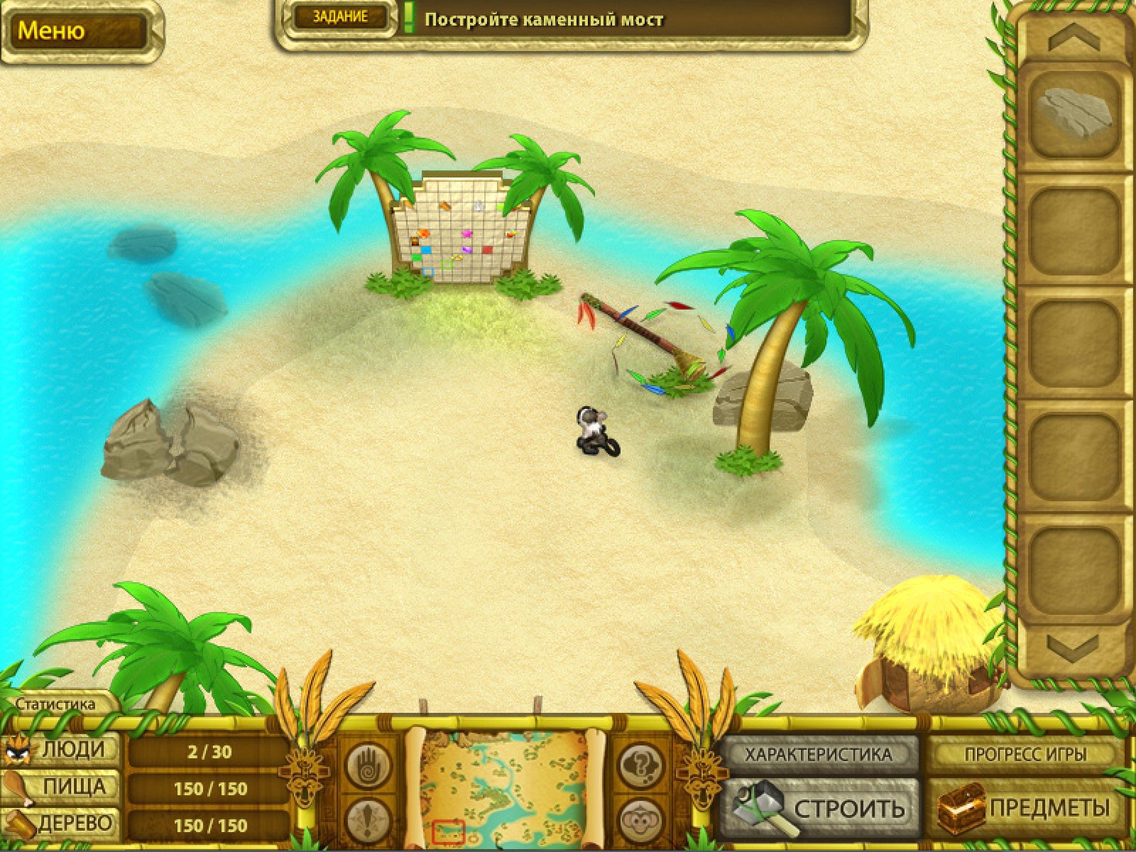Все, конечно, помнят замечательную игру Побег из Рая. Мы с радостью представляем вам долгожданное продолжение этого нашумевшего хита. После событий первой игры главный герой, то есть вы, все-таки остаетесь на острове. Но правитель острова относится к вам с подозрением и видит в вас конкурента. Поэтому он высылает вас на самые задворки своих владений. Но неожиданно к вам на помощь приходит дочь правителя острова… В увлекательной игре «Побег из Рая 2» вы опять окунетесь в атмосферу тропических островов, туземцев и борьбы за выживание. Для того чтобы завоевать уважение короля островов, вам нужно собрать вокруг себя жителей этих островов и сделать из них дружное туземное племя, которое будет почитать вас, как вождя. Для этого вам нужно развивать поселение, переходить с острова на остров в поисках местных жителей, следить, что бы они были довольны жизнью. Вам в помощники дается смышленая обезьянка, которая поможет в исследовании острова и отыщет для вас множество необходимых предметов. Отличная графика, увлекательный сюжет и приятная музыка игры «Побег из Рая 2» подарят вам много часов, а может и дней, веселого времяпровождения. Пройдите эту игру до конца, и в награду вы найдете свою любовь и станете королем этих райских островов.