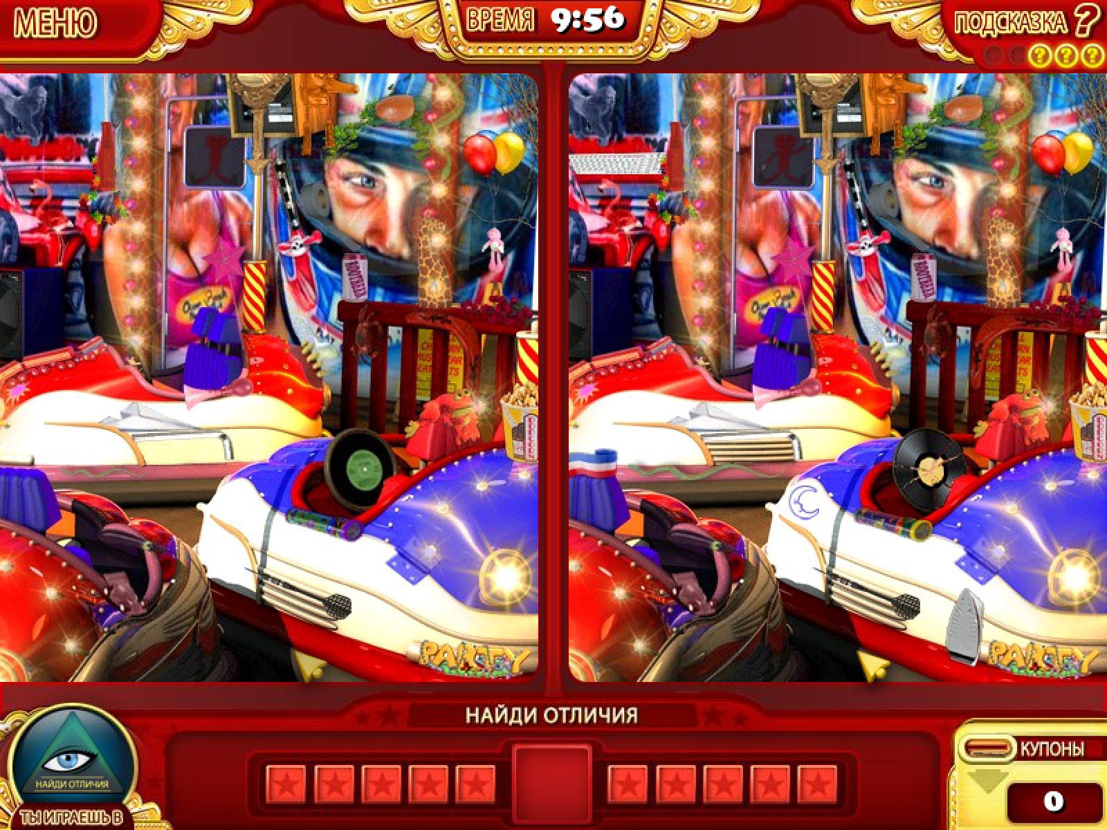 Представьте себе, что вы оказались в парке аттракционов. Перед вами множество разных развлечений, игр, шарад и головоломок. Каждое пройденное испытание дает вам возможность заработать призовые купоны, которые можно обменять в магазине на призы. Поиск предметов, поиск отличий на двух практически одинаковых картинках, тир – вот далеко неполный список головоломок, которые вас поджидают в этом парке аттракционов. Вся игра разбита на этапы по четыре игры в каждом. Каждая игра начинается с того, что предсказатель выбирает вам очередное испытание. По мере прохождения для вас открываются новые варианты головоломок. Так же вы можете в любой момент сыграть в одну из представленных мини-игр, которые дают возможность заработать дополнительные призовые купоны. Занимательная игра «Шоу спрятанных предметов» отличается огромным набором всевозможных логических игр и головоломок. А непредсказуемость сюжета, который зависит исключительно от предсказателя, определяющего каждую следующую игру, привносит элемент неожиданности в процесс путешествия по гигантскому парку аттракционов.