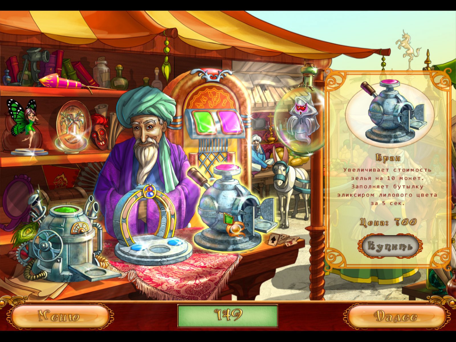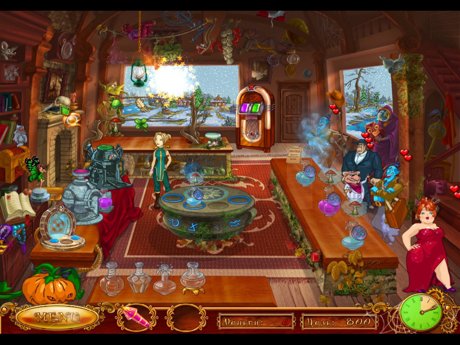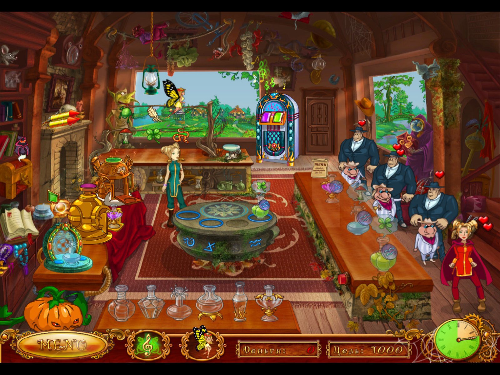 В одной волшебной стране жила очаровательная девочка по имени Катя. Она недавно закончила свое обучение в Магической Академии по специальности «зельеварение». В свободное от учебы время она помогала известному волшебнику Тукку в его лавке. Этот волшебник часто уезжал на поиски новых ингредиентов для своих зелий. Однажды Тукк вернулся очень озабоченным, заперся у себя в комнате и три дня не выходил оттуда. На третий день он объявил, что нашел самый главный компонент для приготовления уникального зелья и обещал поделиться с Катей секретом на следующий день. Однако, когда Катя пришла в лавку, Тукка в ней не оказалось. На поиски времени не было, так как в дверях стоял первый покупатель. Игра «Зачарованная Катя и тайна пропавшего мага» выполнена в жанре «тайм-менеджмент». Но, в отличие от популярных идей с магазином, рестораном и кафе, в этой игре вам придется столкнуться с приготовлением волшебных зелий. Процесс приготовления уникален и необычен: наполнить сосуд эликсиром, вскипятить эго на магической руне и добавить приправу из лягушки, мухомора или пера мадагаскарского тукана. И все это нужно делать быстро, пока у посетителей не иссякло терпение, и они не ушли. Веселая и динамичная игра «Зачарованная Катя и тайна пропавшего мага» понравиться всем без исключения игрокам, а особенно поклонникам всего мистического и волшебного. Приготовление зелий, посетители, среди которых есть эльфы, джинны и прочие колдуны, создают неповторимую атмосферу волшебной страны, где вам предстоит провести немало приятных минут.