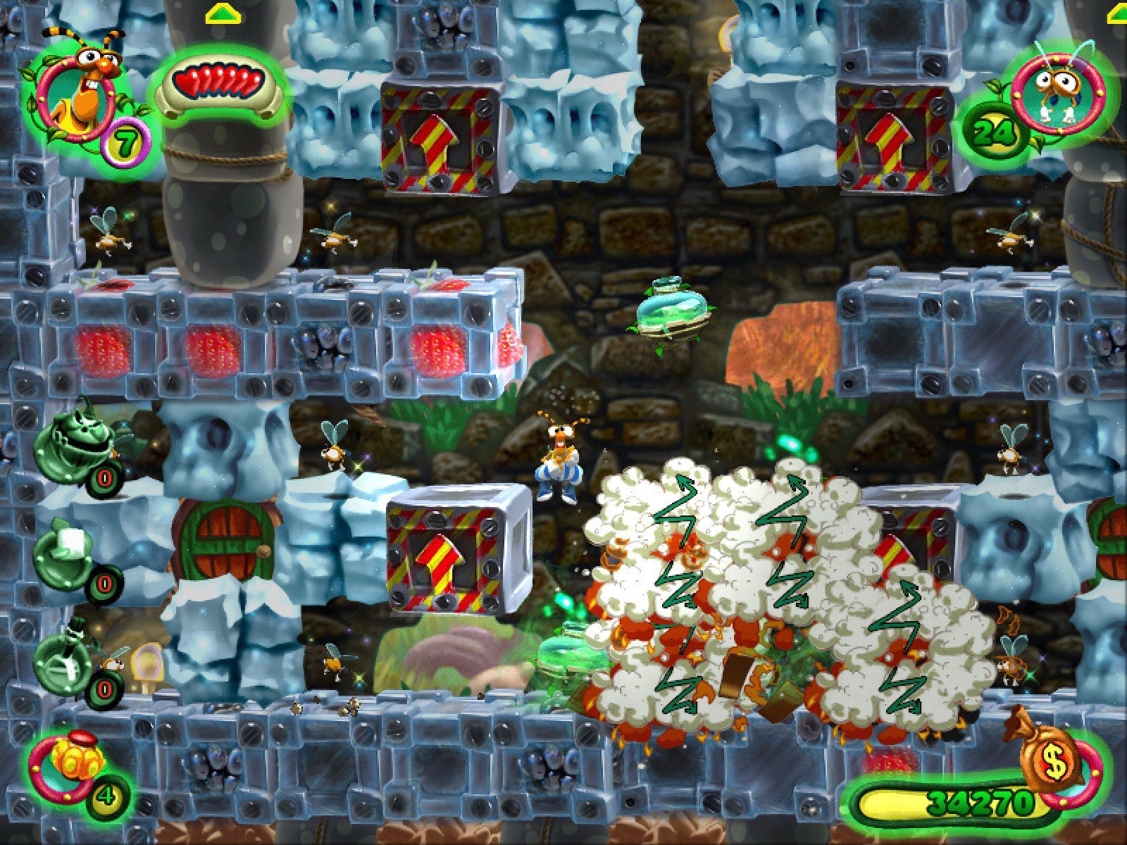 Представляем вам третью часть приключений симпатичного жука по имени Жу. На этот раз все началось с того, что Жу отправился в магазин, прихватив с собой двоих своих детей. И пока они выбирали там продукты, позвонила жена Жу и сообщила страшную новость: всех их детей кто-то похитил. И отважный жук тут же кинулся на помощь своему потомству. Третья часть приключений веселого жука, «Операция Жук 3», вобрала в себя все самое лучшее из первых двух частей. Главный герой бегает по лабиринтам, прогрызая себе путь до выхода. Попадающиеся на пути тяжелые камни могут соскользнуть вниз и больно ударить жука по голове. Цель каждого уровня заключается в том, чтобы найти маленьких жучков по закоулкам лабиринта и довести до выхода из лабиринта. На пути вам могут попадаться различные монстры, которые стоят за похищением детей Жу, например взбесившаяся Мухобойка. Их вы должны будете нейтрализовать с помощью подручных средств, а так же с помощью оружия, которое вы можете найти в лабиринте. Итак, третья часть приключений Жу получилась очень веселой, яркой и живой. Отлично прорисованные персонажи, качественное звуковое оформление выполнены на самом высоком уровне. Возможность управления и мышкой, и с клавиатуры, не переключая режим, позволят выбрать наиболее удобный вариант каждому игроку. Все это складывается в очень позитивную игру «Операция Жук 3», в которую будет интересно играть как детям, так и их родителям. Не пропустите!