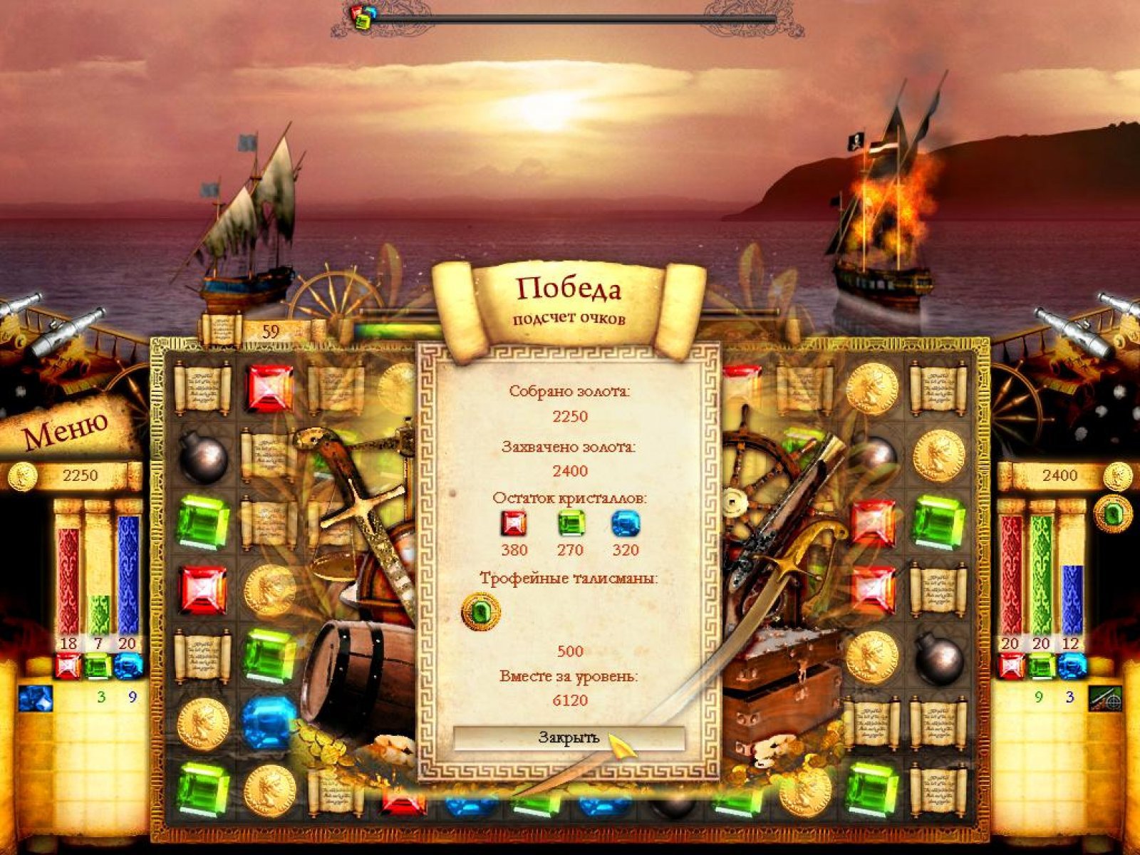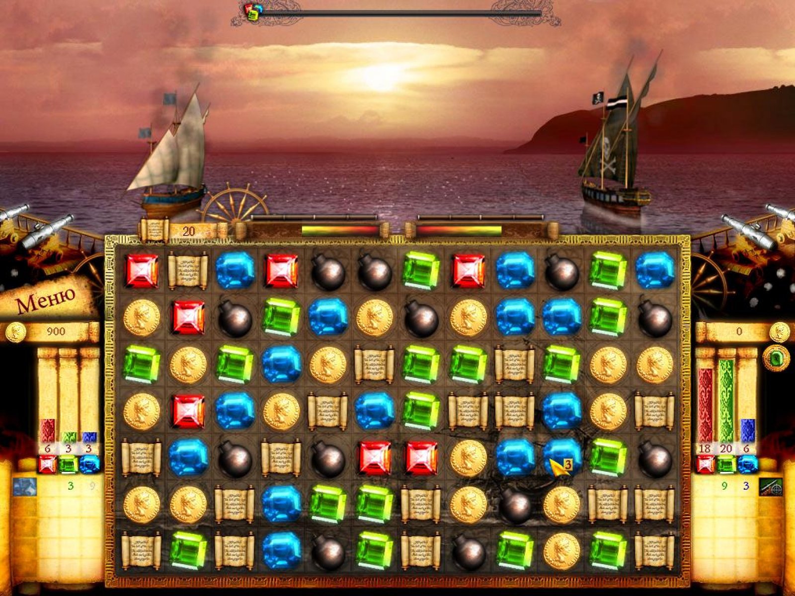 Эта история об одном молодом человеке, жившем во времена, когда на морях бесчинствовали пираты. Отец и дед юноши тоже в свое время были пиратами, а он стал обычным торговцем, причем не очень удачливым. Но душа молодого торговца не желала мириться с такой жизнью и жаждала приключений и опасностей. И вот однажды, когда юноша отправился в очередное плавание, а трюм его корабля были набиты всевозможными товарами, на горизонте показался пиратский корабль. Он шел на сближение с явным намерением вступить в схватку и завладеть грузом. Храброму торговцу ничего не оставалось, как вступить в бой. Игра «Морское Путешествие» выполнена в виде смеси жанров «собери тройку + боевая стратегия». Каждый раунд игры – это морское сражение между вашим кораблем и кораблями пиратов или военными судами. Собирая определенные фишки в ряд по три, вы можете дать залп из пушек по кораблям противника, заработать деньги или очки опыта, а так же собрать кристаллы для активации различных бонусов. Но, как и в любом сражении, противник тоже не сидит, сложа руки. У вас есть три хода, после чего ход переходит к противнику. Он тоже будет стрелять из своих орудий, собирать кристаллы и маневрировать. Если вы одержите победу, потопив вражеские корабли, вам достанется все, что было на поверженном судне. Отличная игра «Морское Путешествие» не оставит равнодушными даже самых взыскательных игроков. Превосходная графика и музыкальное сопровождение, сюжет, достойный пера Стивенсона, а так же уникальное сочетание жанров по праву заслуживают самых высших похвал. Вперед, на встречу приключениям. На абордаж!