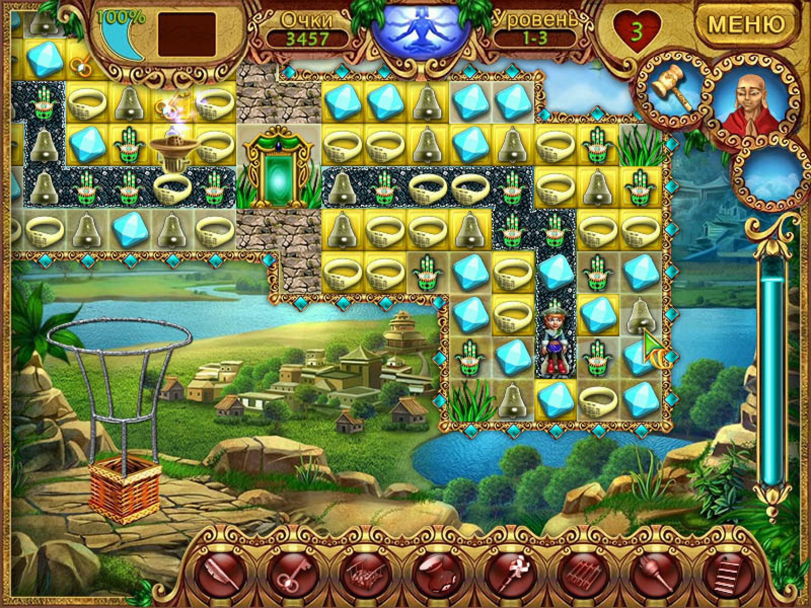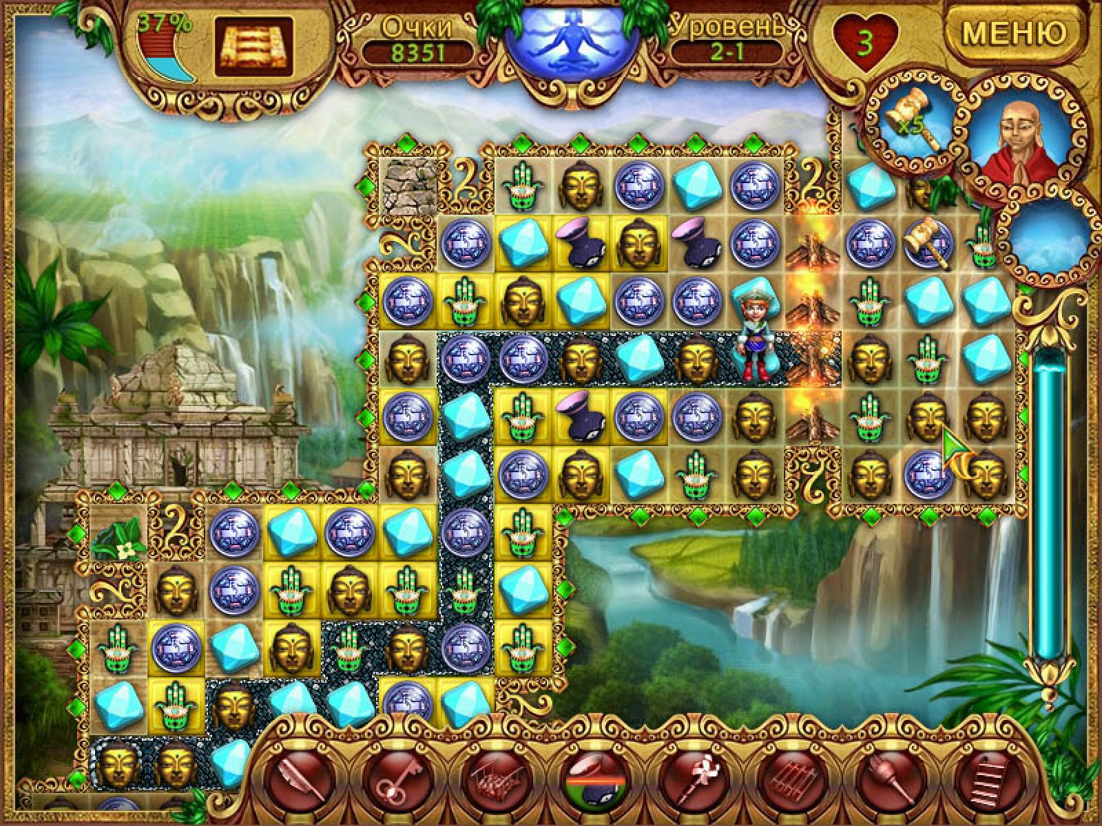 Все, конечно, помнят игру про Дика и Джейн – охотников за сокровищами? В этой игре вы увидите, как Джейн выбрала именно эту профессию. Дело в том, что ее отец был известным путешественником и археологом. Он искал таинственную страну Шангри Ла в горах Тибета. Когда Джейн была маленькой, ее отец отправился в свое очередное путешествие. Больше о нем никто не слышал. Перед отъездом он оставил Джейн амулет, не сказав, что же он означает. И только когда Джейн выросла, она поняла, что амулет – это ключ, а открывает он странный сундук, хранящийся на чердаке. Открыв его, Джейн нашла дневник своего отца. И она решила сама отправиться на поиски своего отца и легендарной страны. Игра «Тибет Квест» создана в жанре «собери тройку». Вам нужно расчищать путь для Джейн, собирая одинаковые фишки в ряды из не менее трех штук. На каждом этапе Джейн должна выполнить определенное задание. Оно состоит, например, в том, чтобы из частей собрать воздушный шар, статую, или починить храм. По мере продвижения по лабиринту, Джейн будет собирать нужные детали. На ее пути будут встречаться различные препятствия: заросли бамбука, реки, горы, горящие леса. В этом случае вам нужно собирать в тройки определенные фишки, чтобы вам дали приспособление для преодоления препятствия. Динамичная игра «Тибет Квест» с прекрасной графикой и великолепным звуковым оформлением понравится всем любителям логических игр. Она развивает внимательность, логику, быстроту реакции, но, в то же время, проста в освоении. Так что берите в руки мышь и вперед, на поиски таинственной страны Шангри Ла.